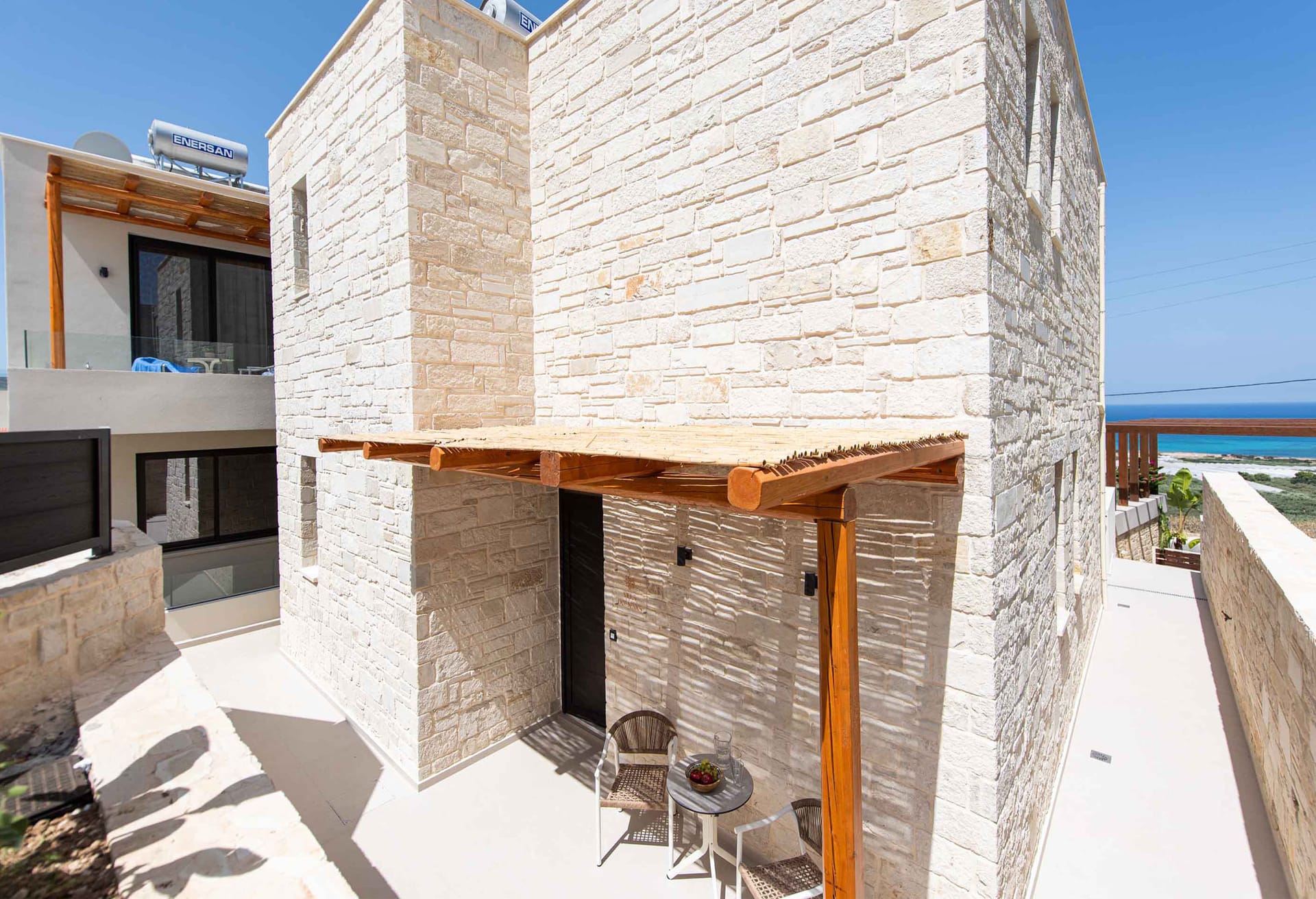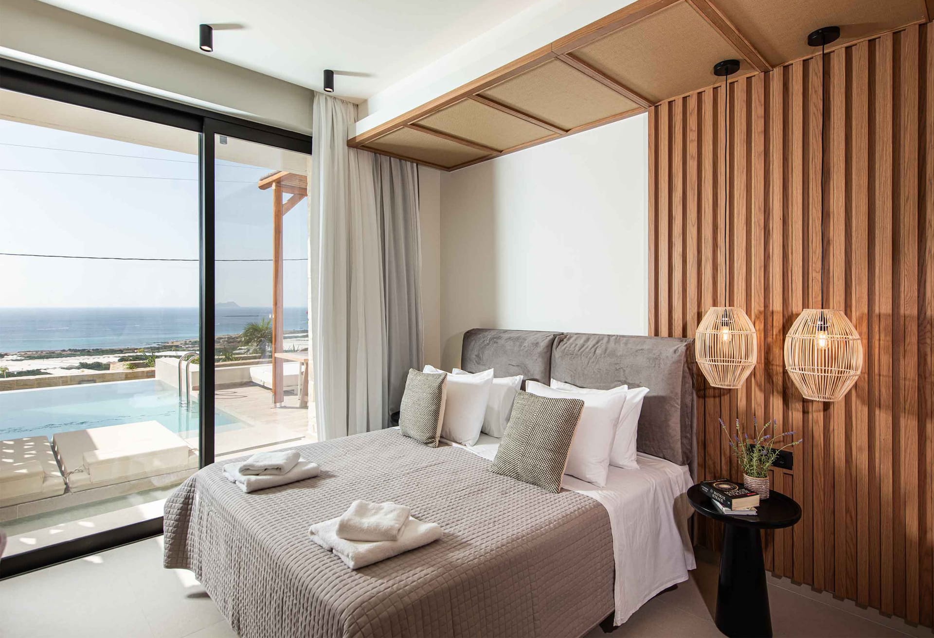 Villa Verano is an exclusive member of All Greek Villas! Located in the area of Falassarna, the most famous area in height of the summer season. It blends harmoniously with the natural landscape, the earthy colours, the wooden surfaces, and the excellent quality of construction.