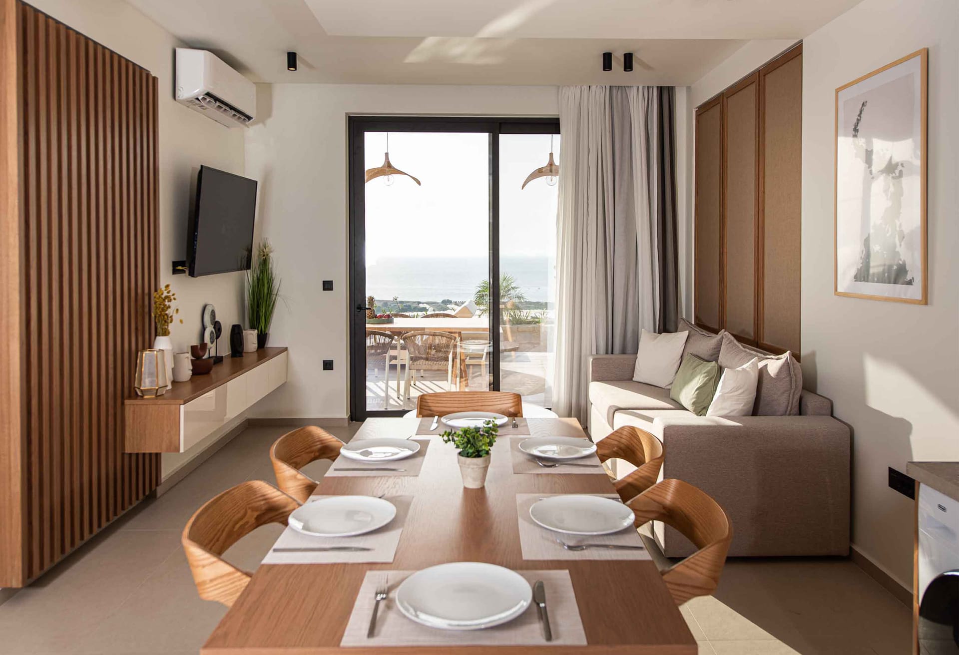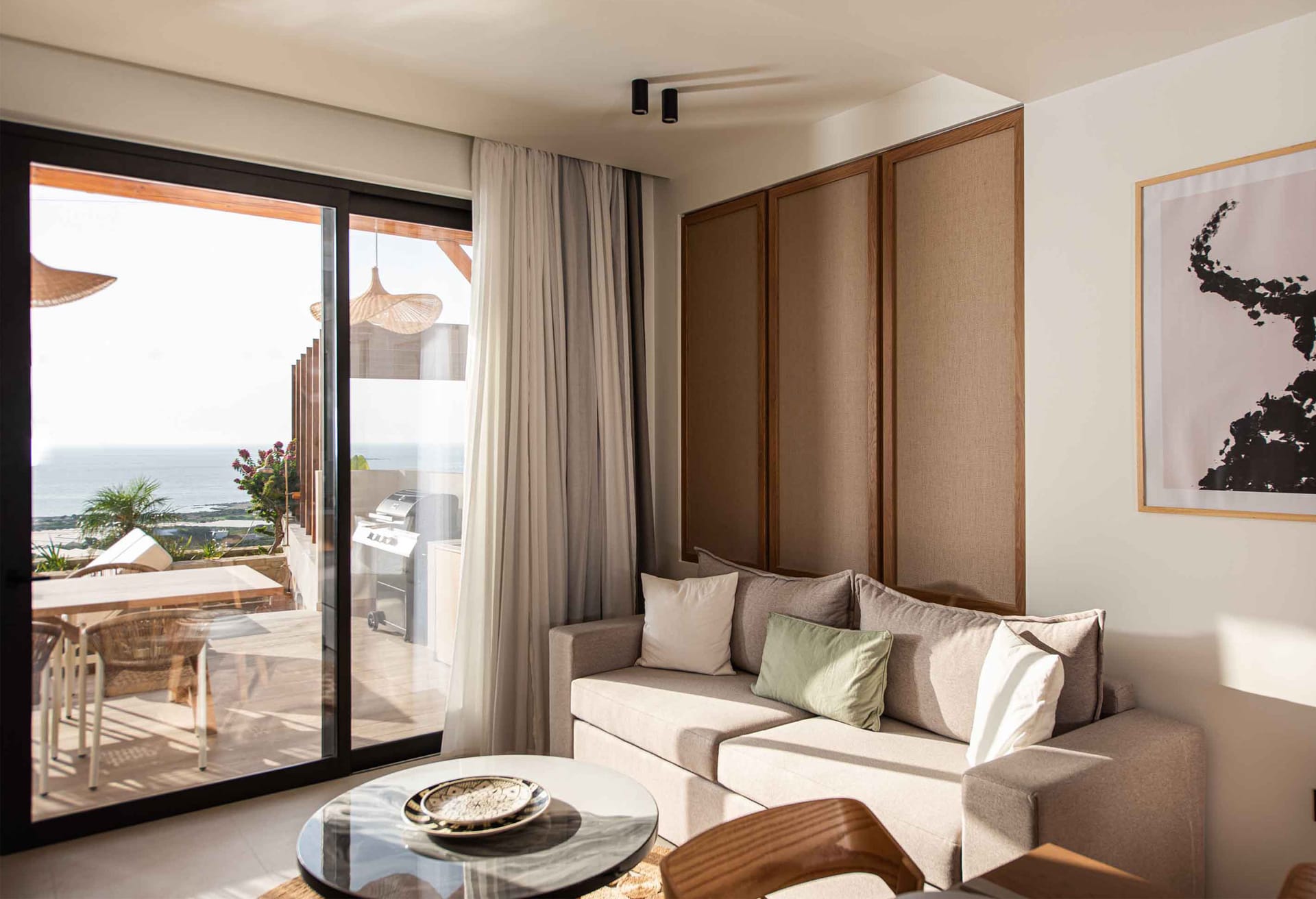 Living area with sofas, 55’’ Smart Satellite Smart, pool access, Sea view