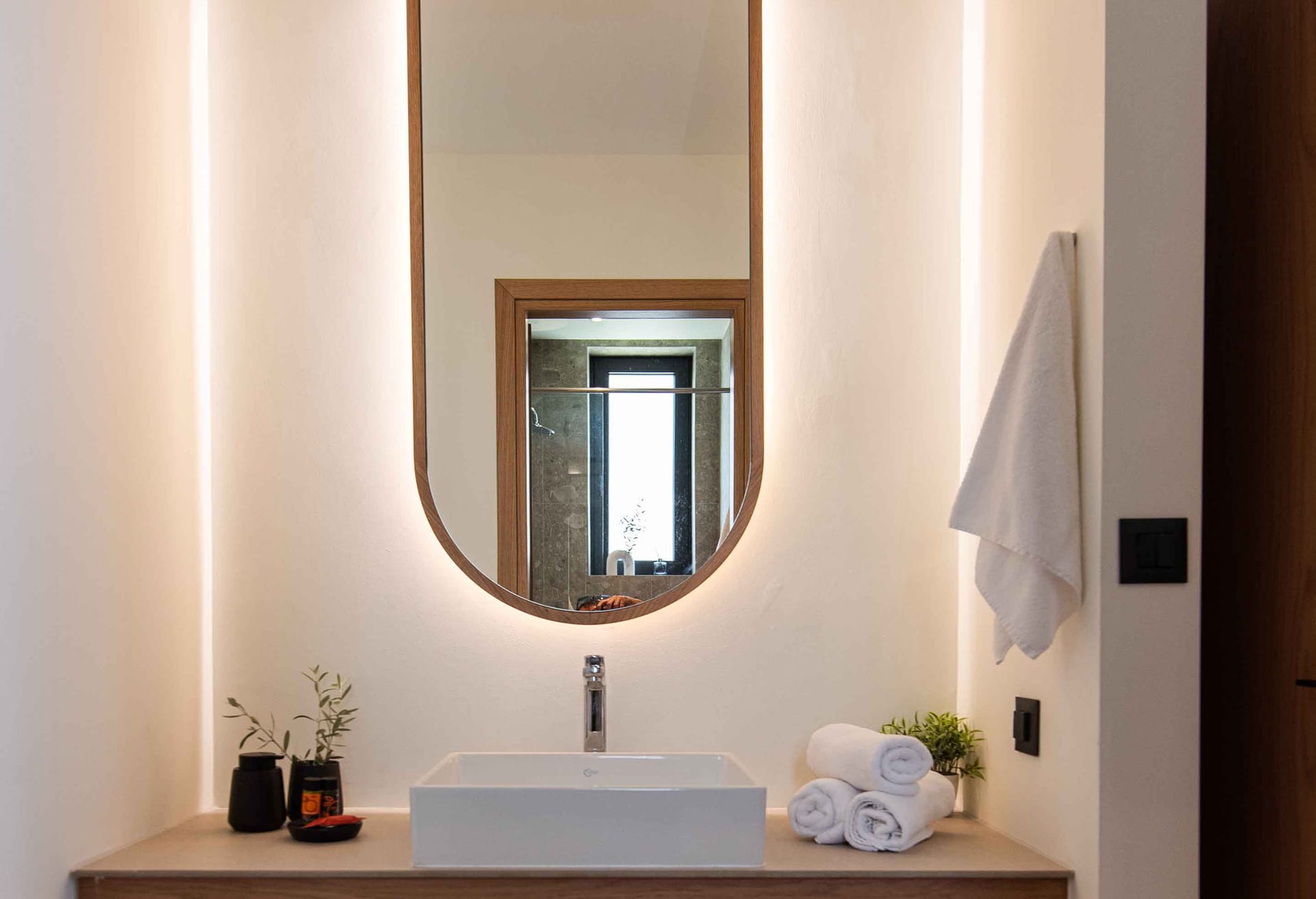 From the moment you step your foot outside of the villa, you will see an amazingly designed swimming pool, and pretty close to it there is a lounge area with a dining table for 6 under a protected pergola and an outdoor fireplace. The garden suits for sunset drinks and a swimming pool and a lounge area with sofas make the ideal spot to relax. Fire up the grill and gather together for an alfresco meal under the pergola as the stars come out one by one sunbed to enjoy the Cretan sun and the little things that will impress you.