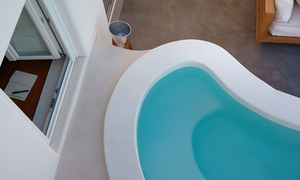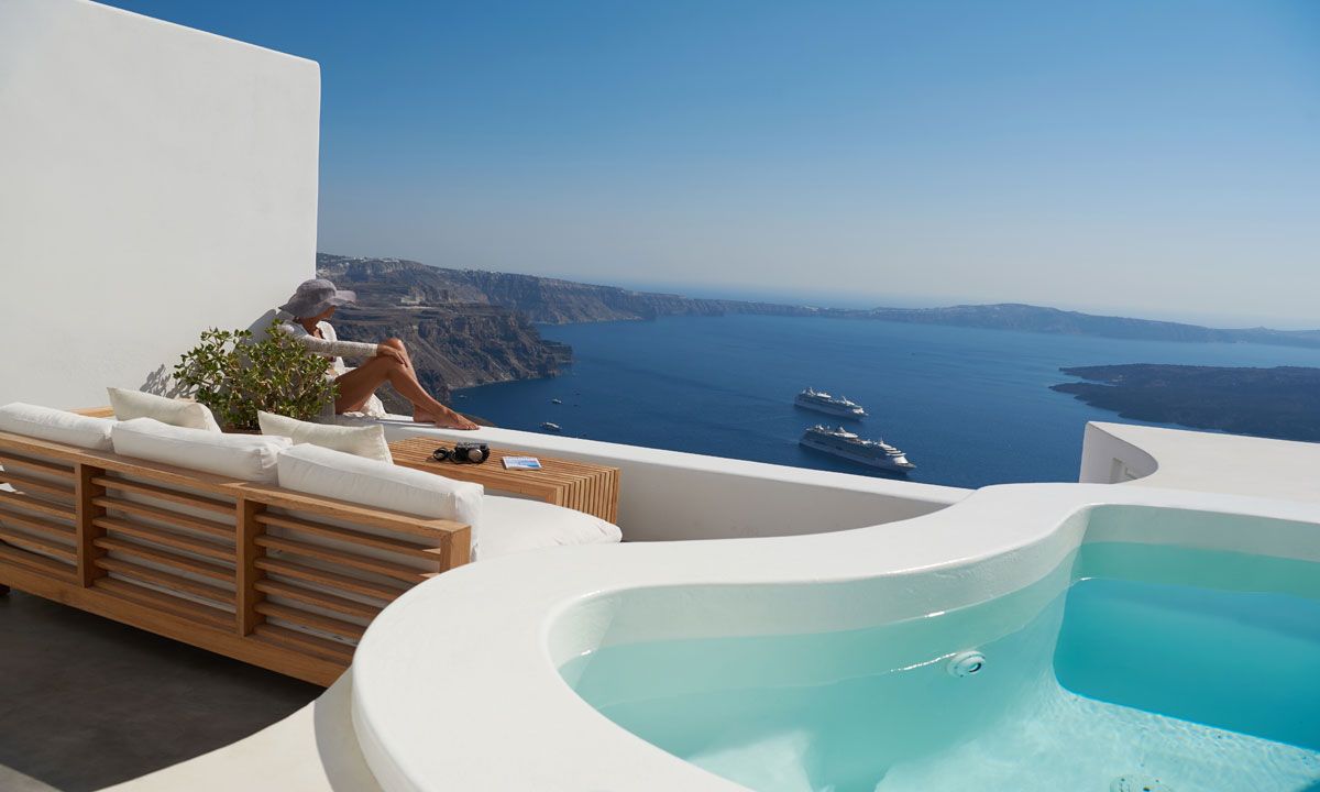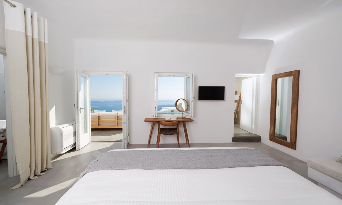 A unique villa with real panoramic views of the Aegean, volcano and caldera.