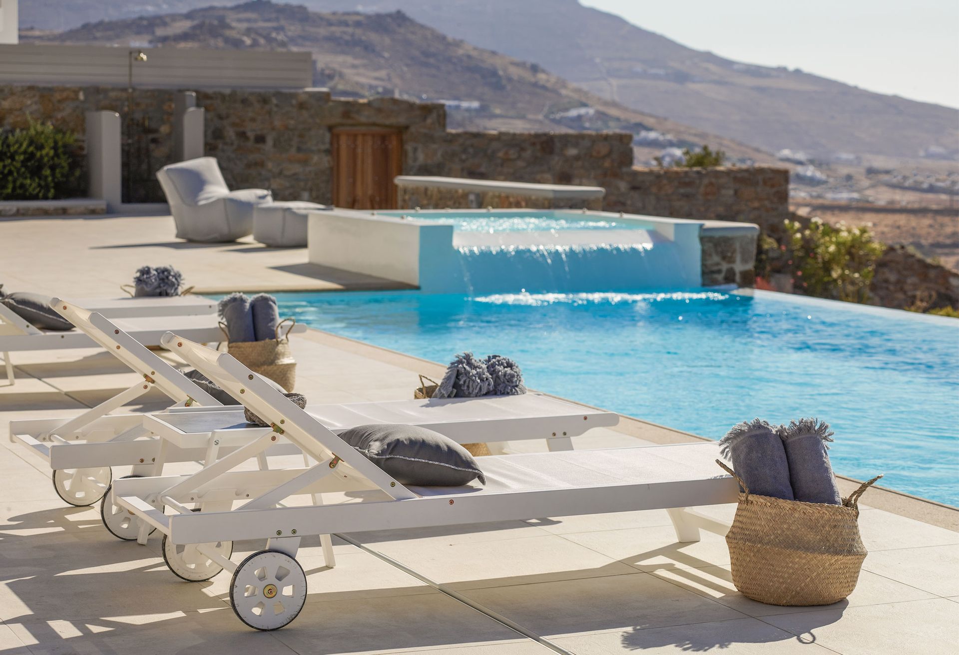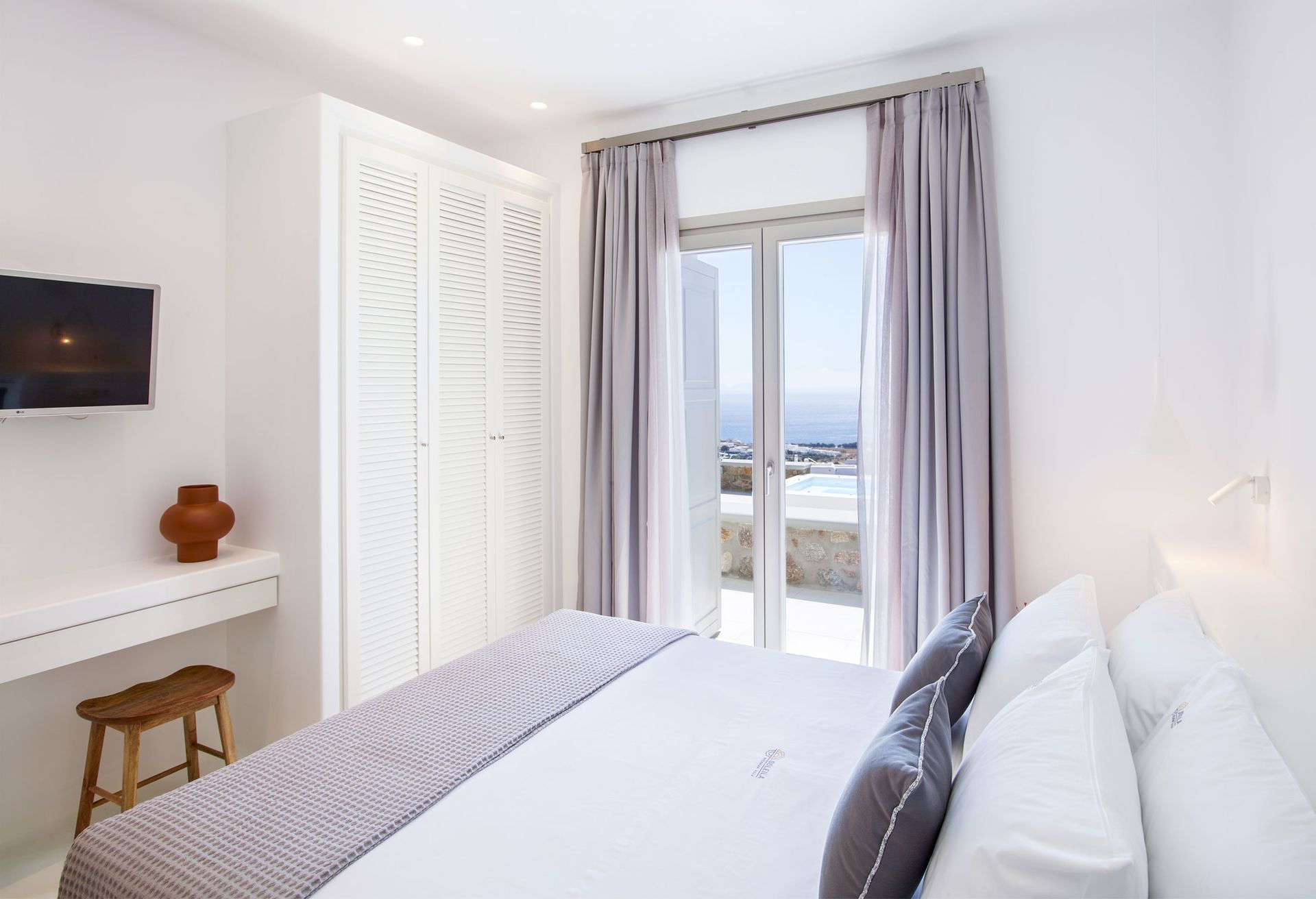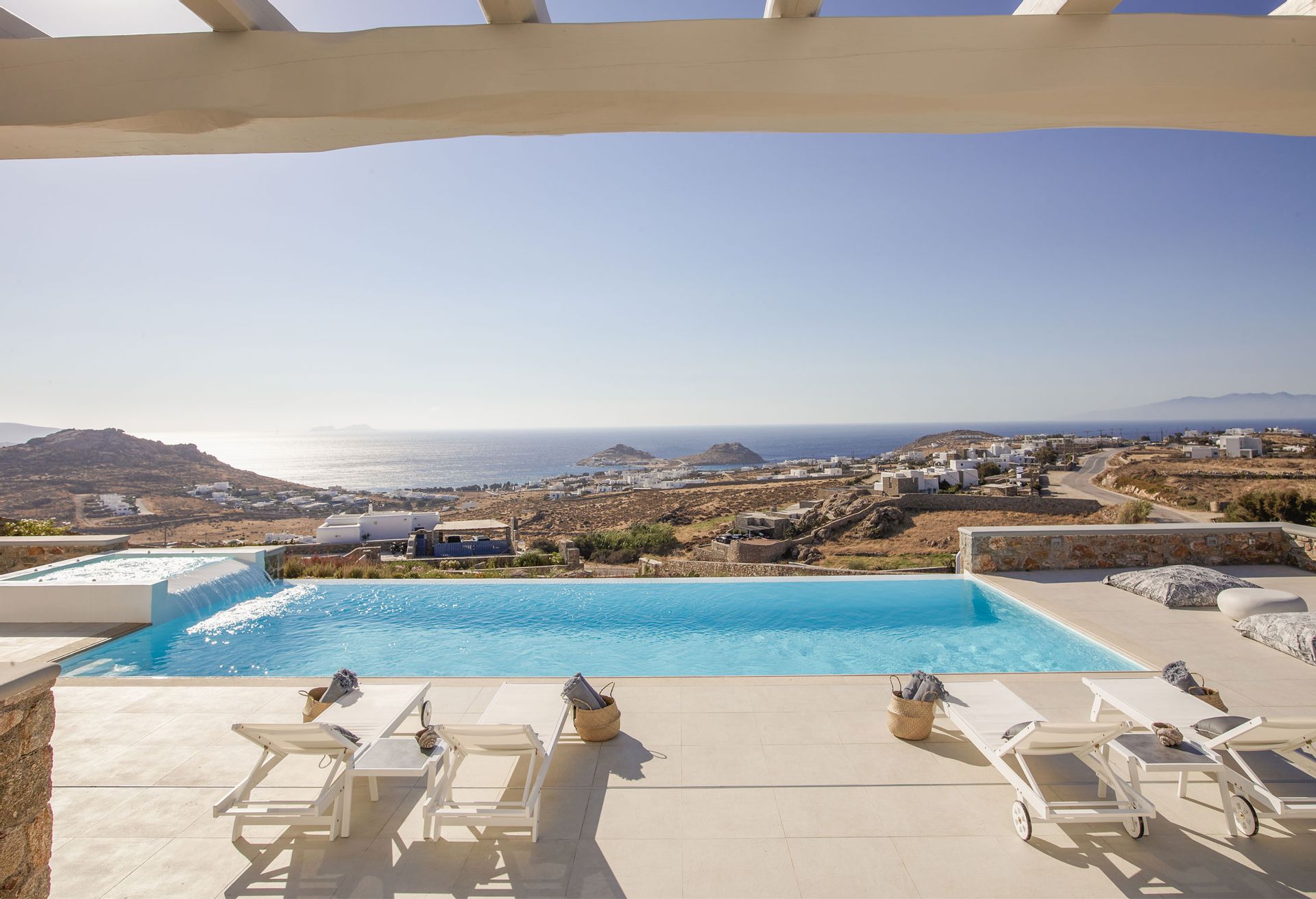 Away from any modern’s life destructions, close to nature’s gratitude, Mykonos Villa Aspen has been created for those who cherish the contact with the environment, love to unwind in their Sea view Balcony reading their favourite book, enjoy a drink on the private pool; love to watch the night sky’s stars after a day of relaxation.