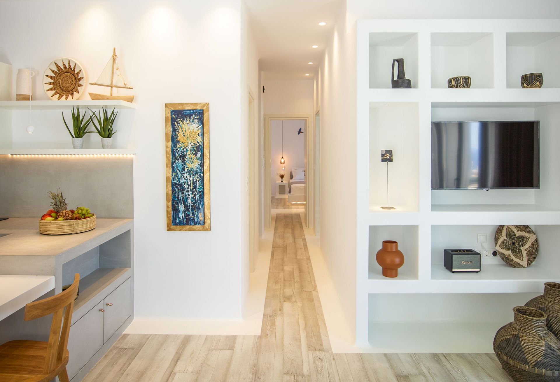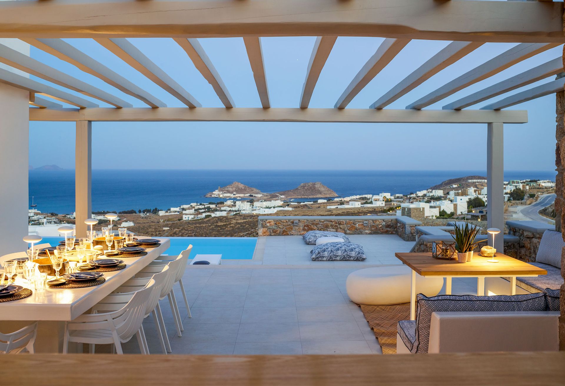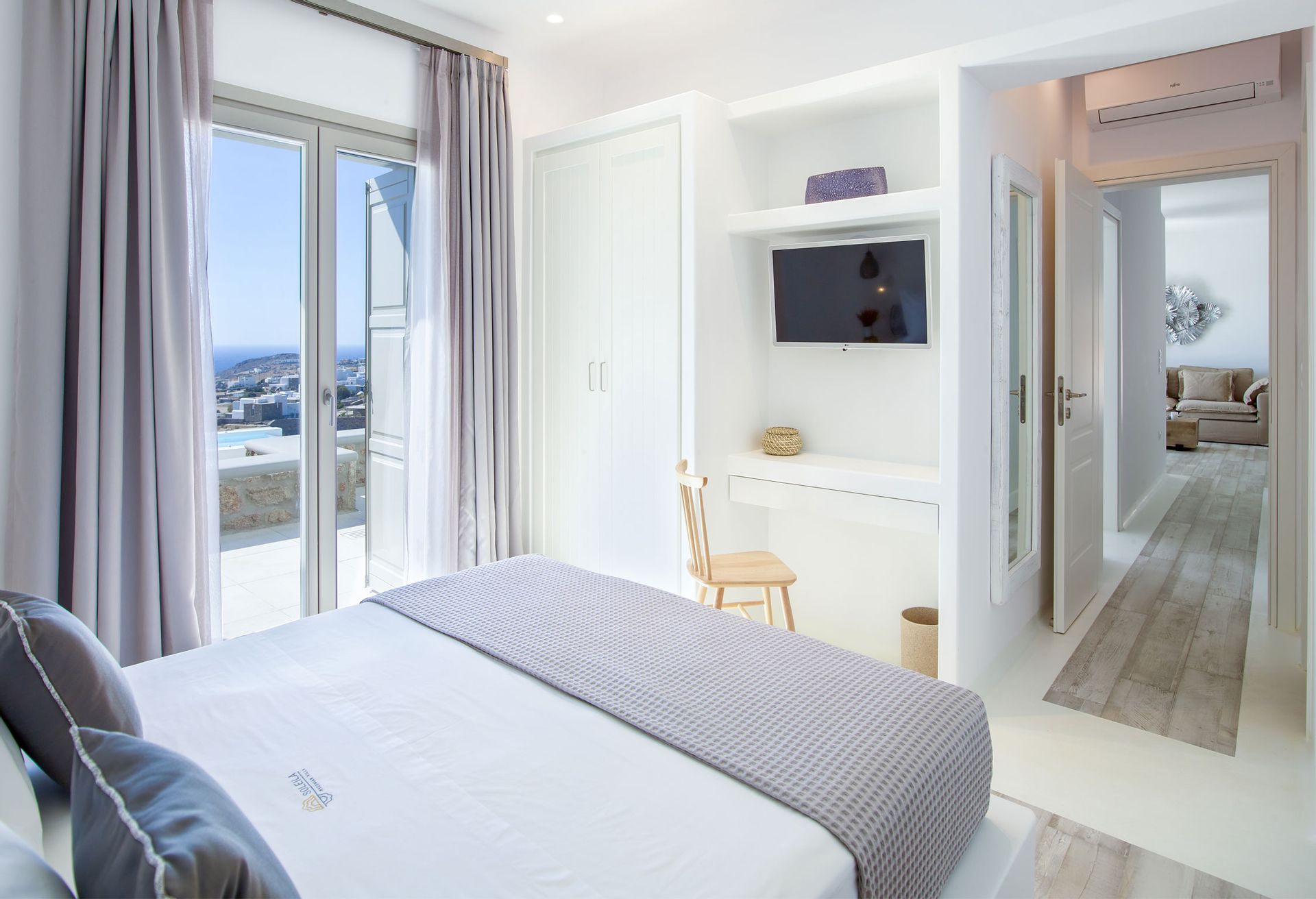 Away from any modern’s life destructions, close to nature’s gratitude, Mykonos Villa Aspen has been created for those who cherish the contact with the environment, love to unwind in their Sea view Balcony reading their favourite book, enjoy a drink on the private pool; love to watch the night sky’s stars after a day of relaxation.