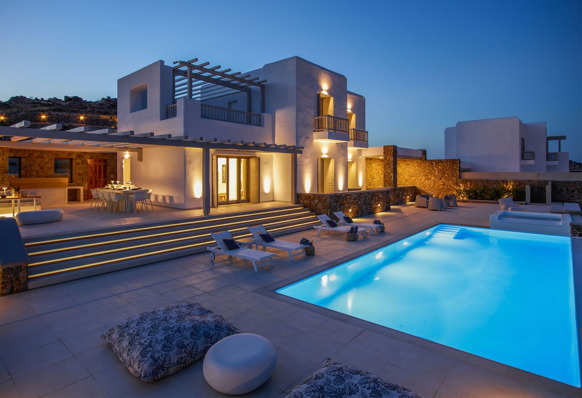 Here you can effortlessly spend the whole day watching the colours change from morning to noon to sundown and, when the day turns to night, entranced by the soft glow of the pool lights, make a wish upon a falling star.