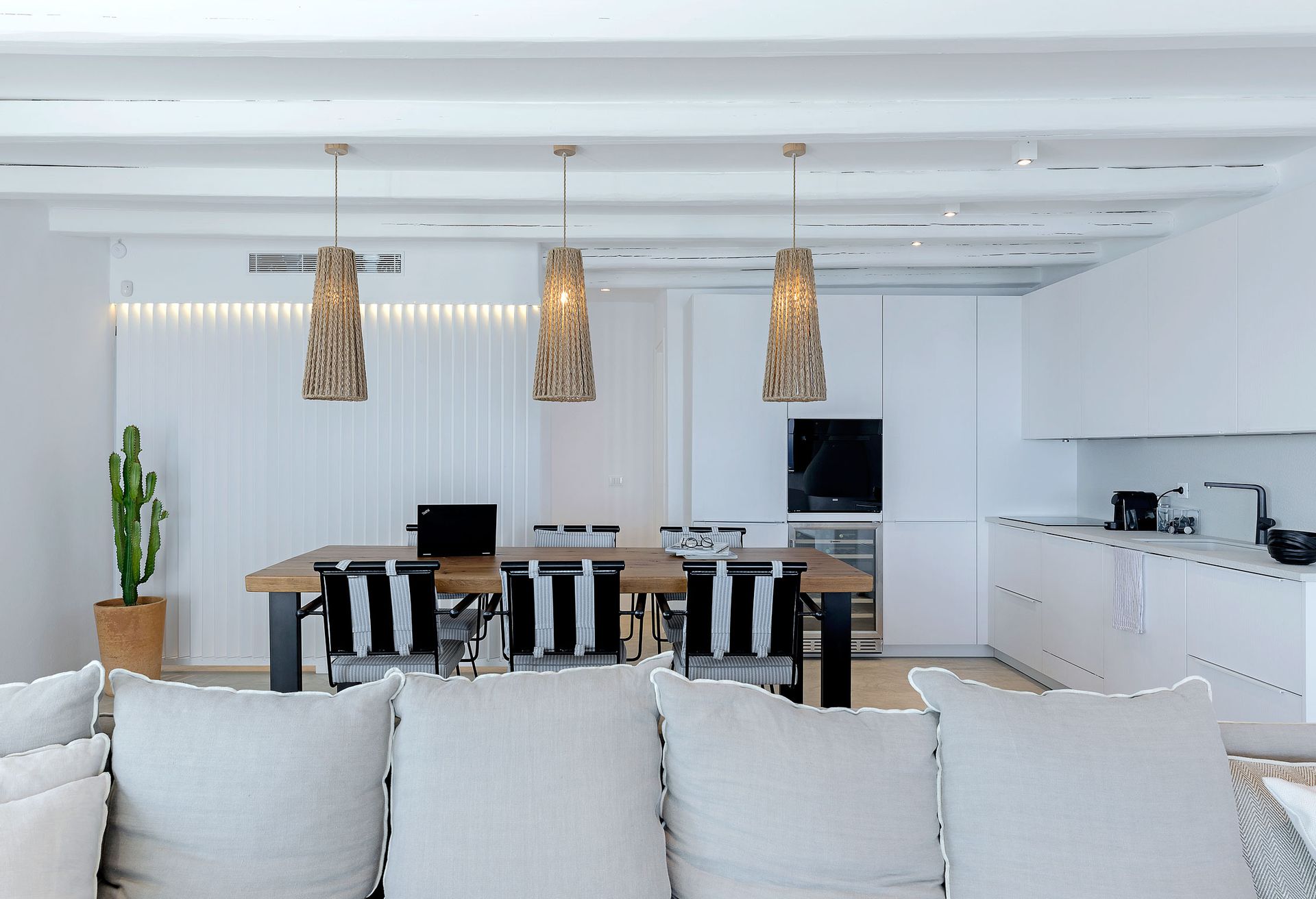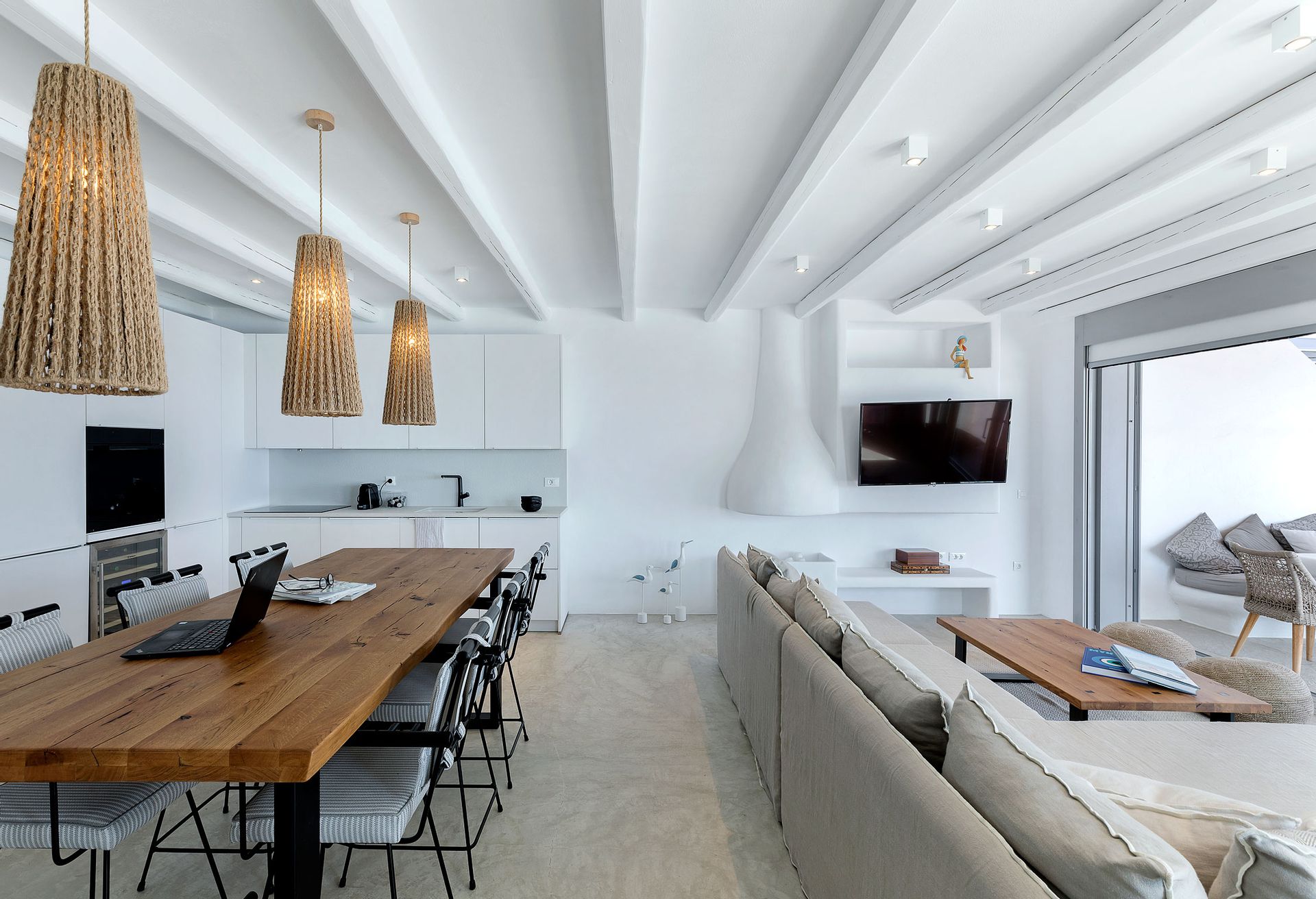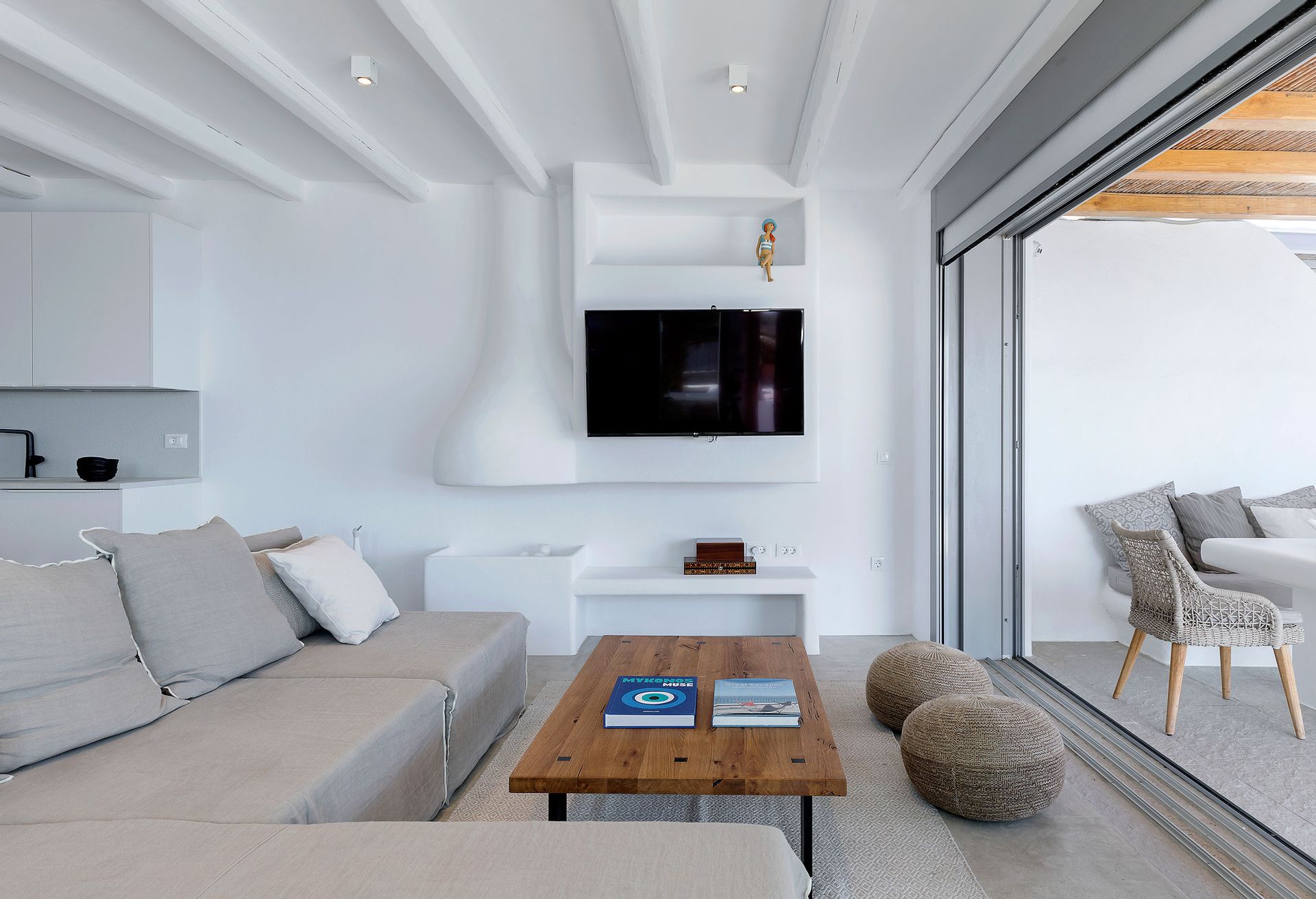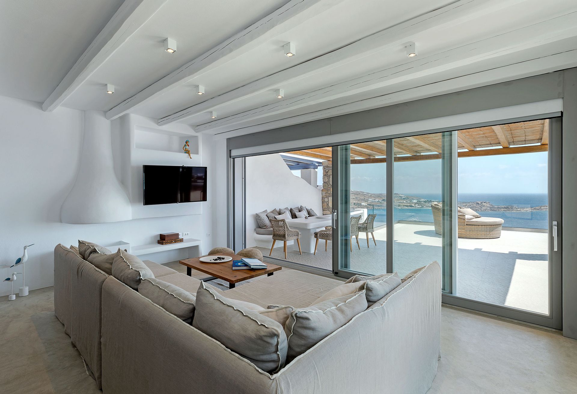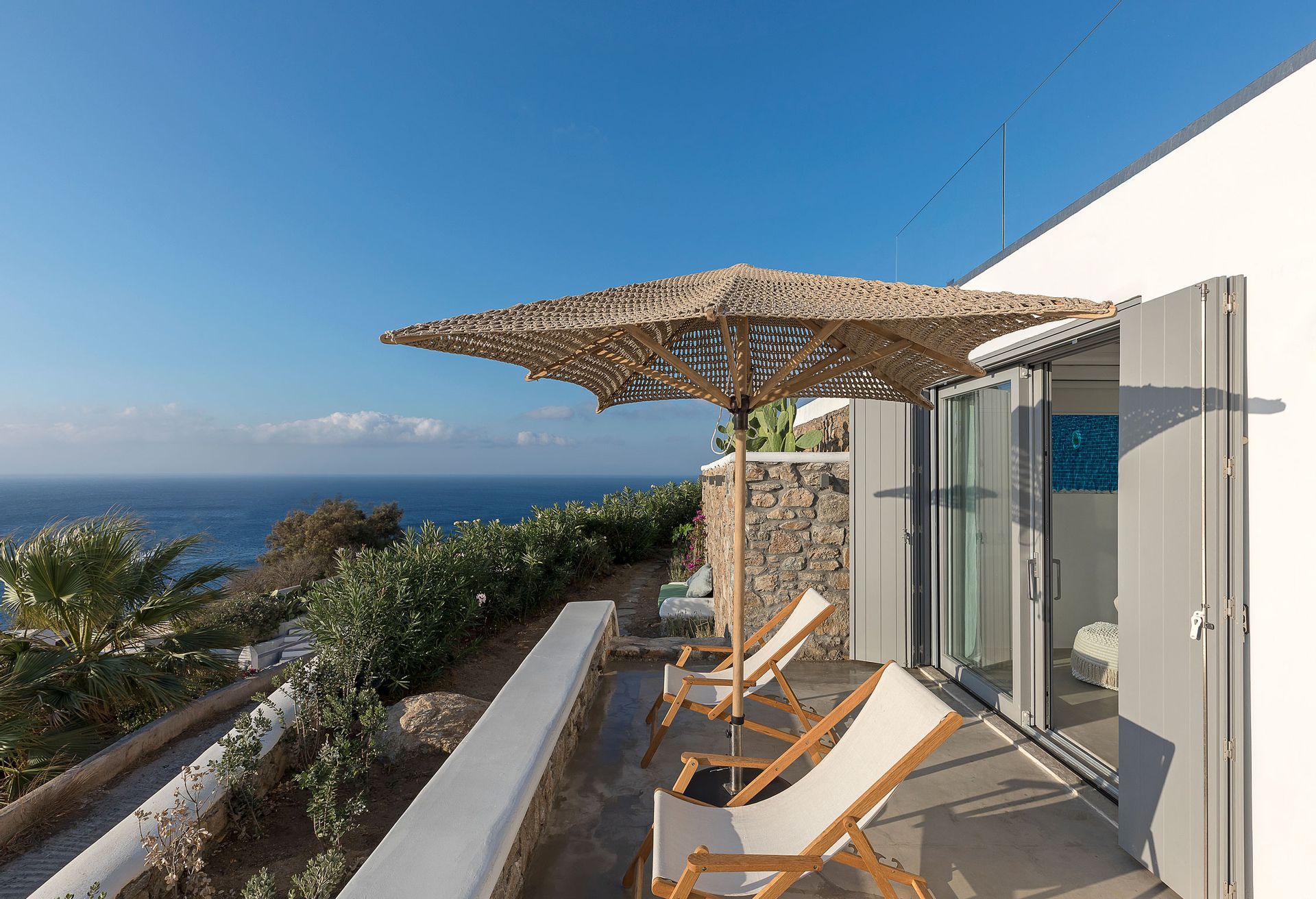 This minimal, modern Villa Delfine, which consisted of three houses, is the epitome of chic, contemporary Myconian living, offering breathtaking views in a top of the hill setting.