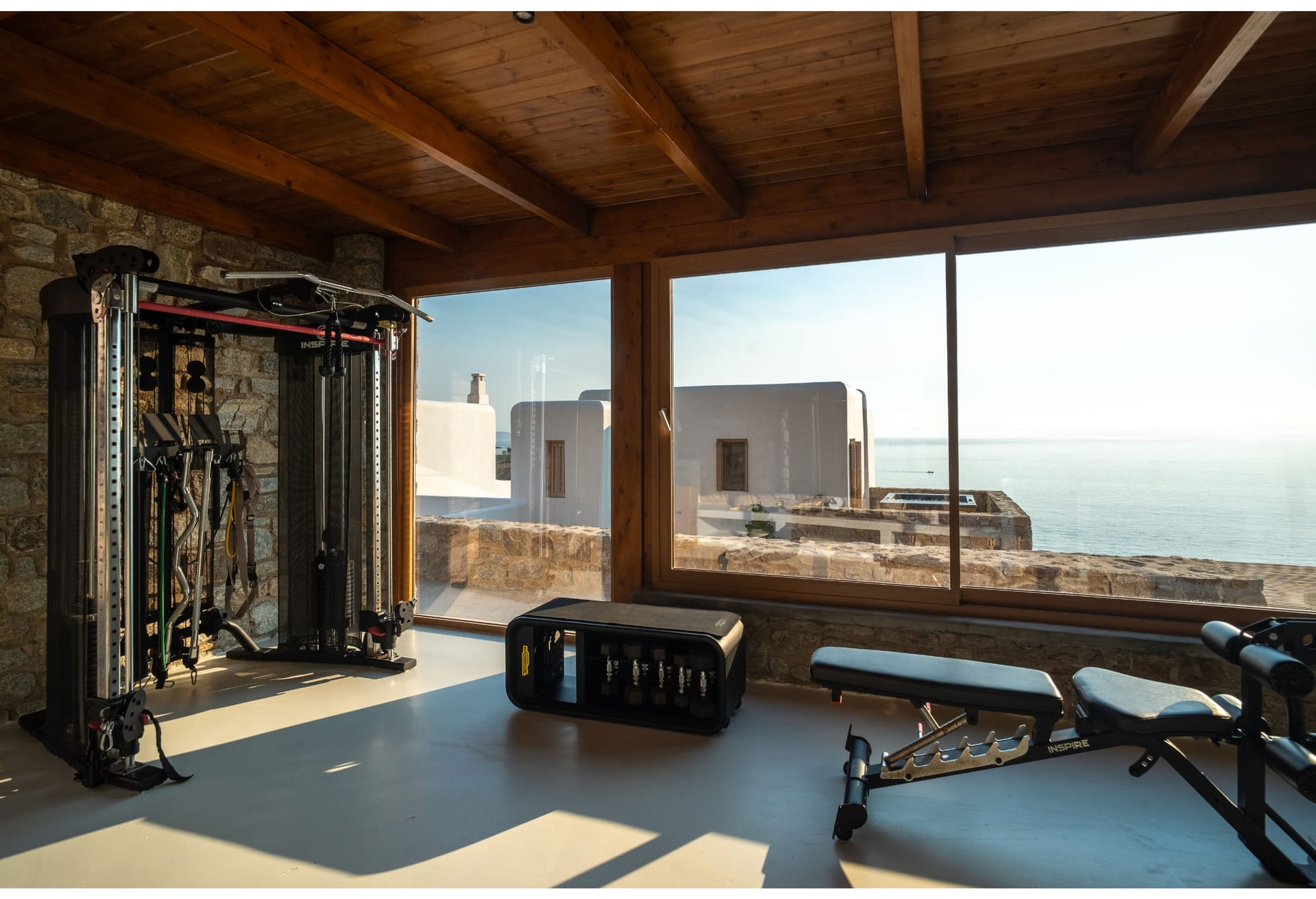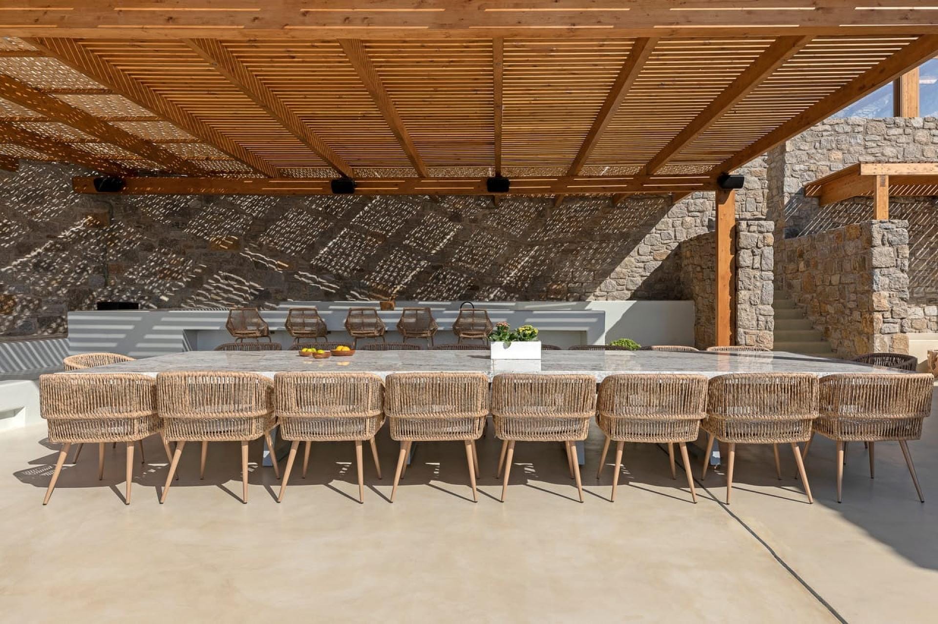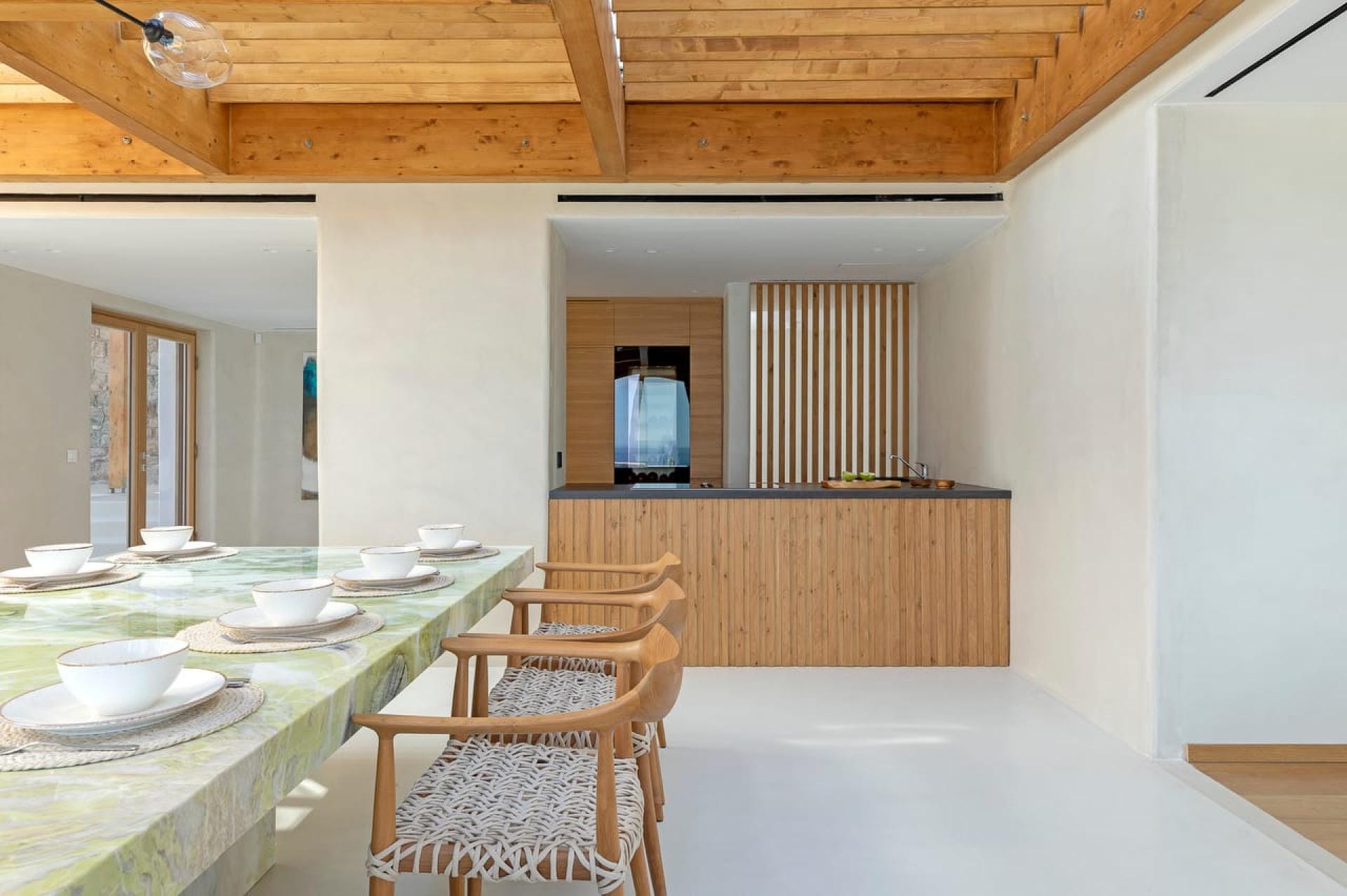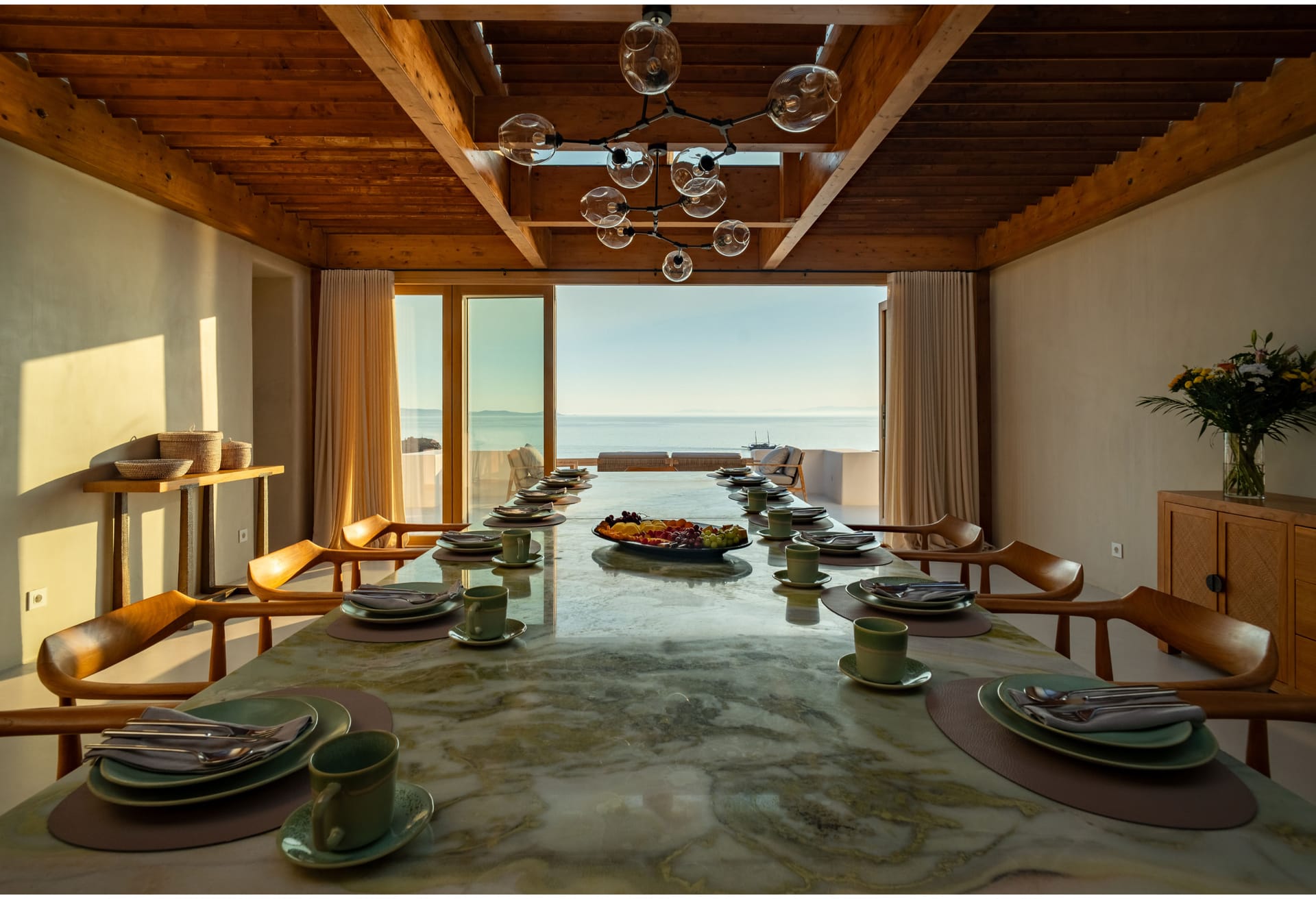 Created for both leisure and luxury hospitality, Mykonos Villa Elysian features two state-of-the-art kitchens—fully equipped for private chefs—and two guest powder rooms situated in the main living areas for convenience. A dedicated staff quarters ensures seamless service without intrusion.