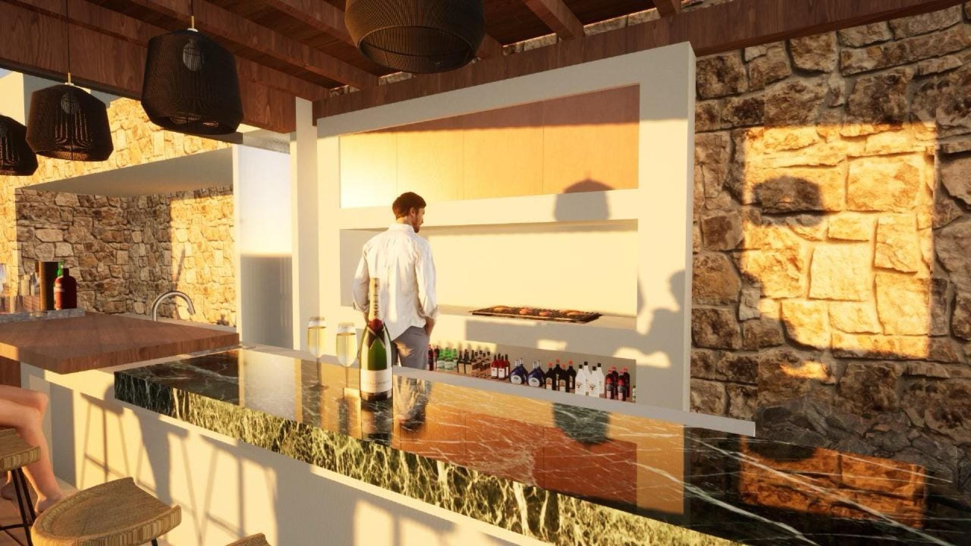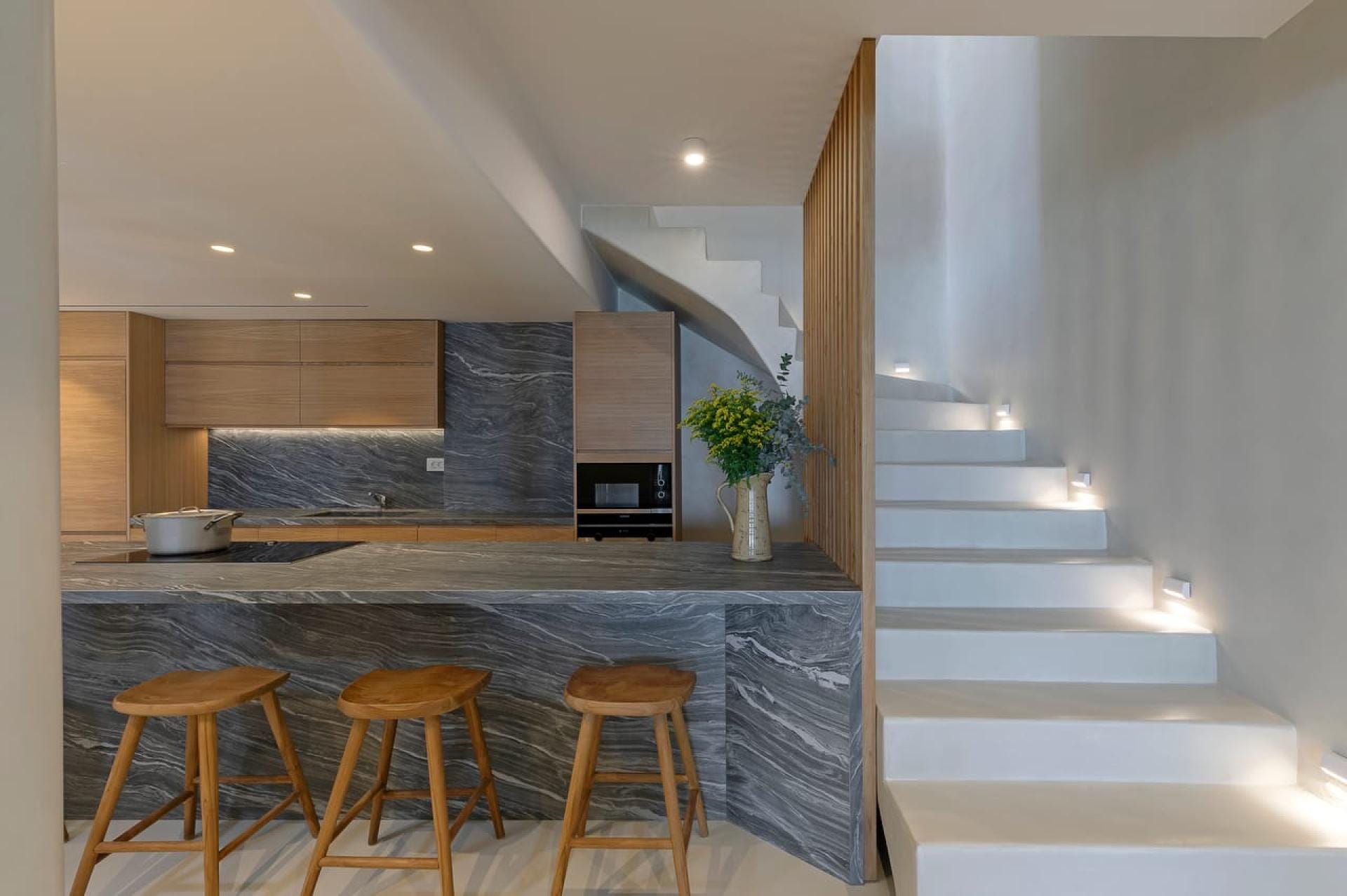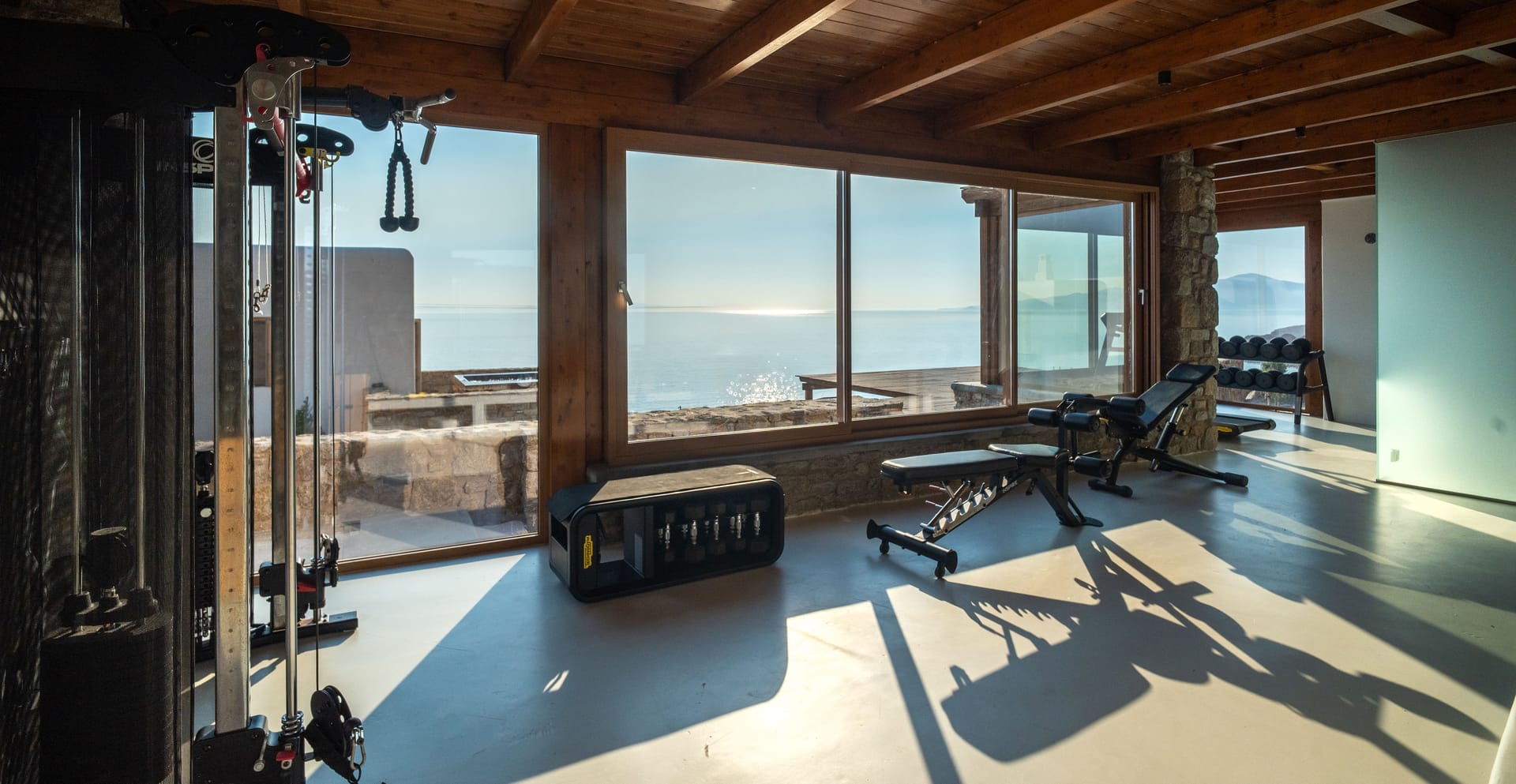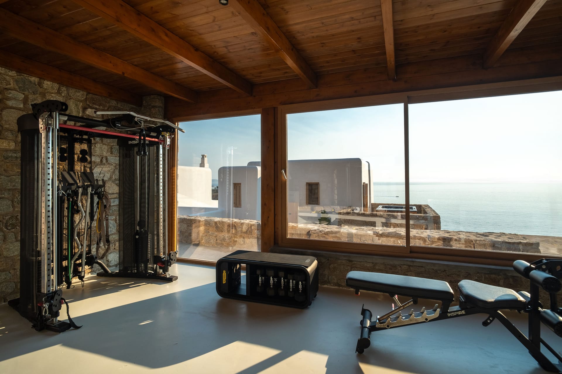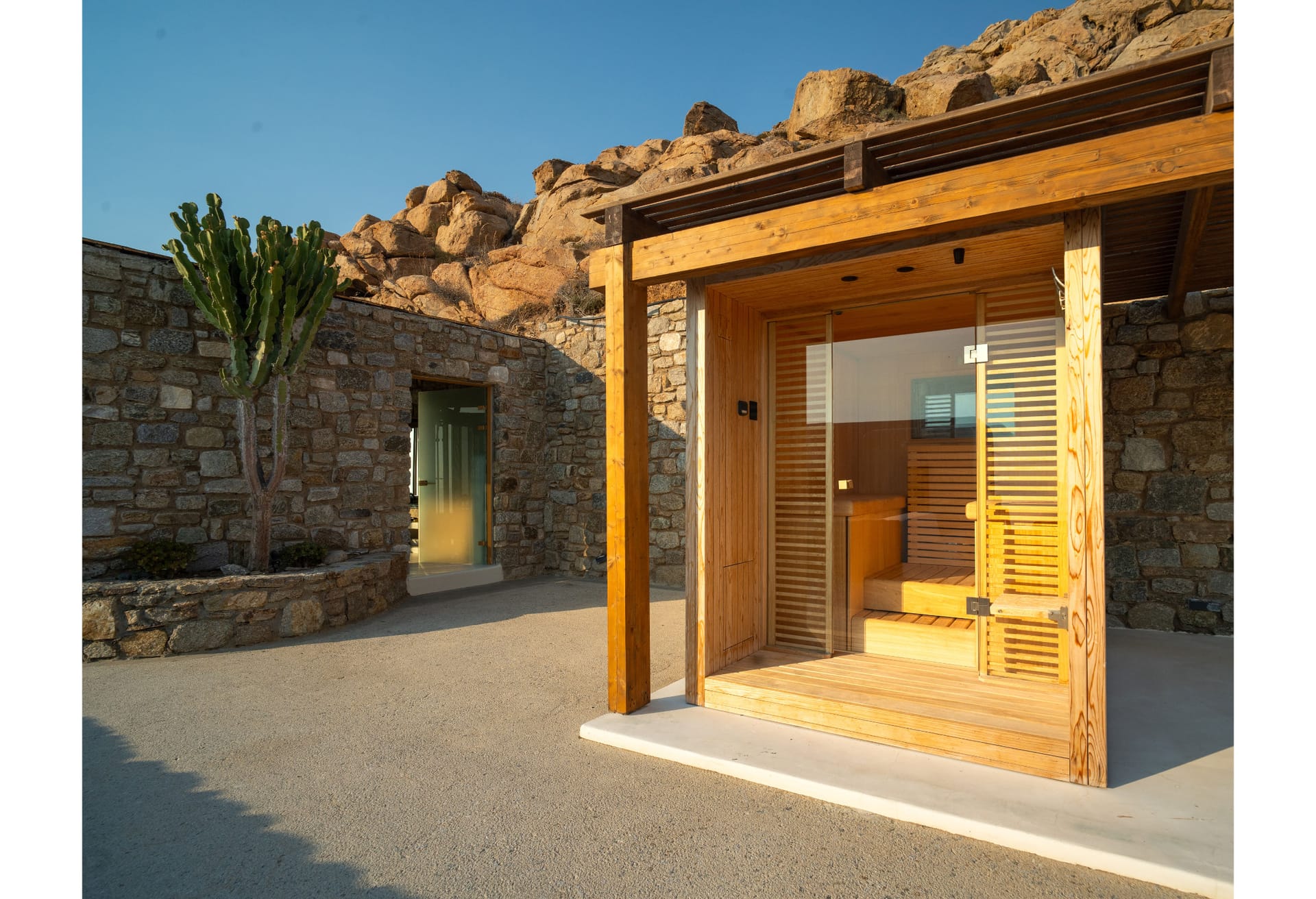 Created for both leisure and luxury hospitality, Mykonos Villa Elysian features two state-of-the-art kitchens—fully equipped for private chefs—and two guest powder rooms situated in the main living areas for convenience. A dedicated staff quarters ensures seamless service without intrusion.