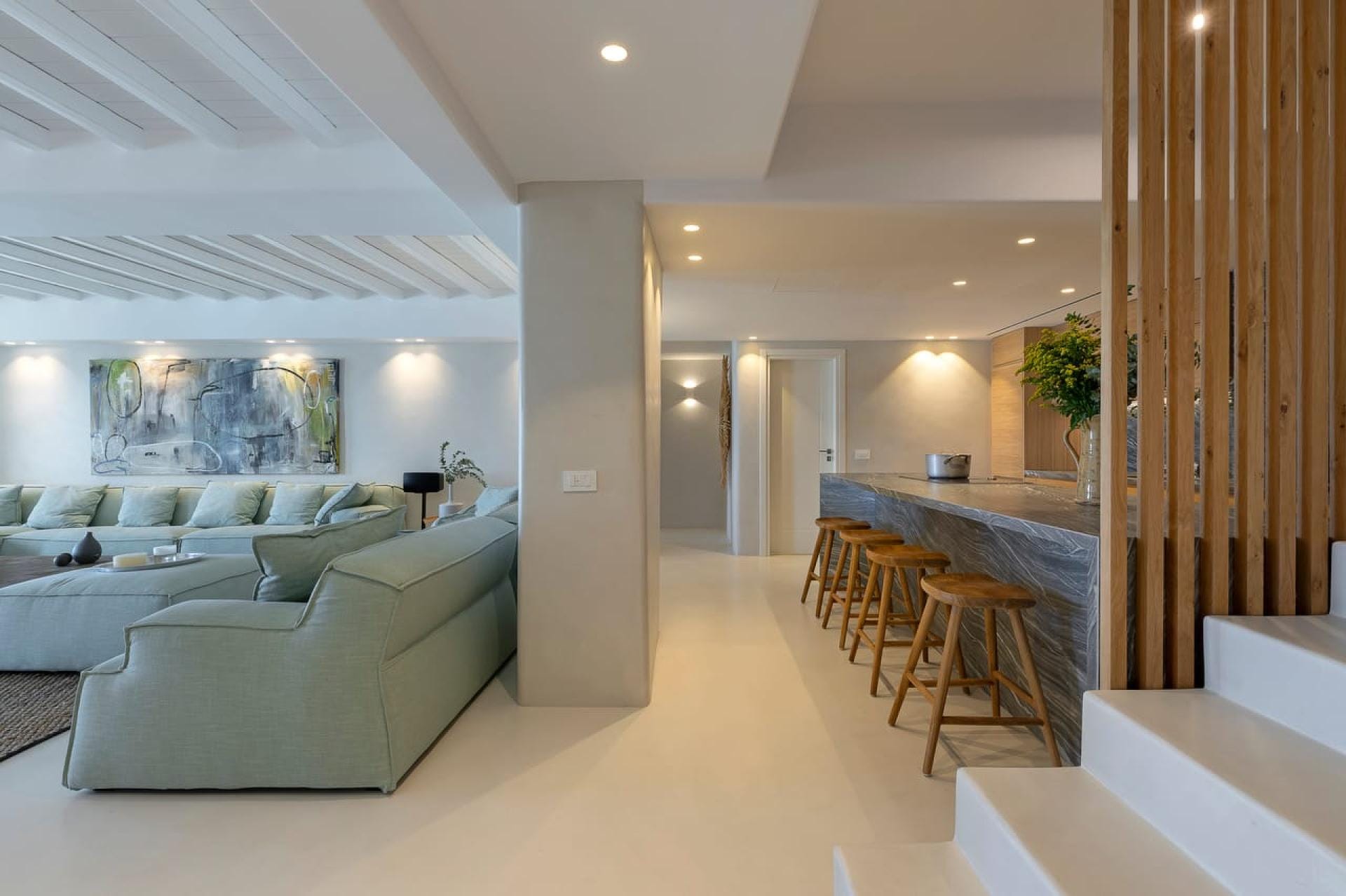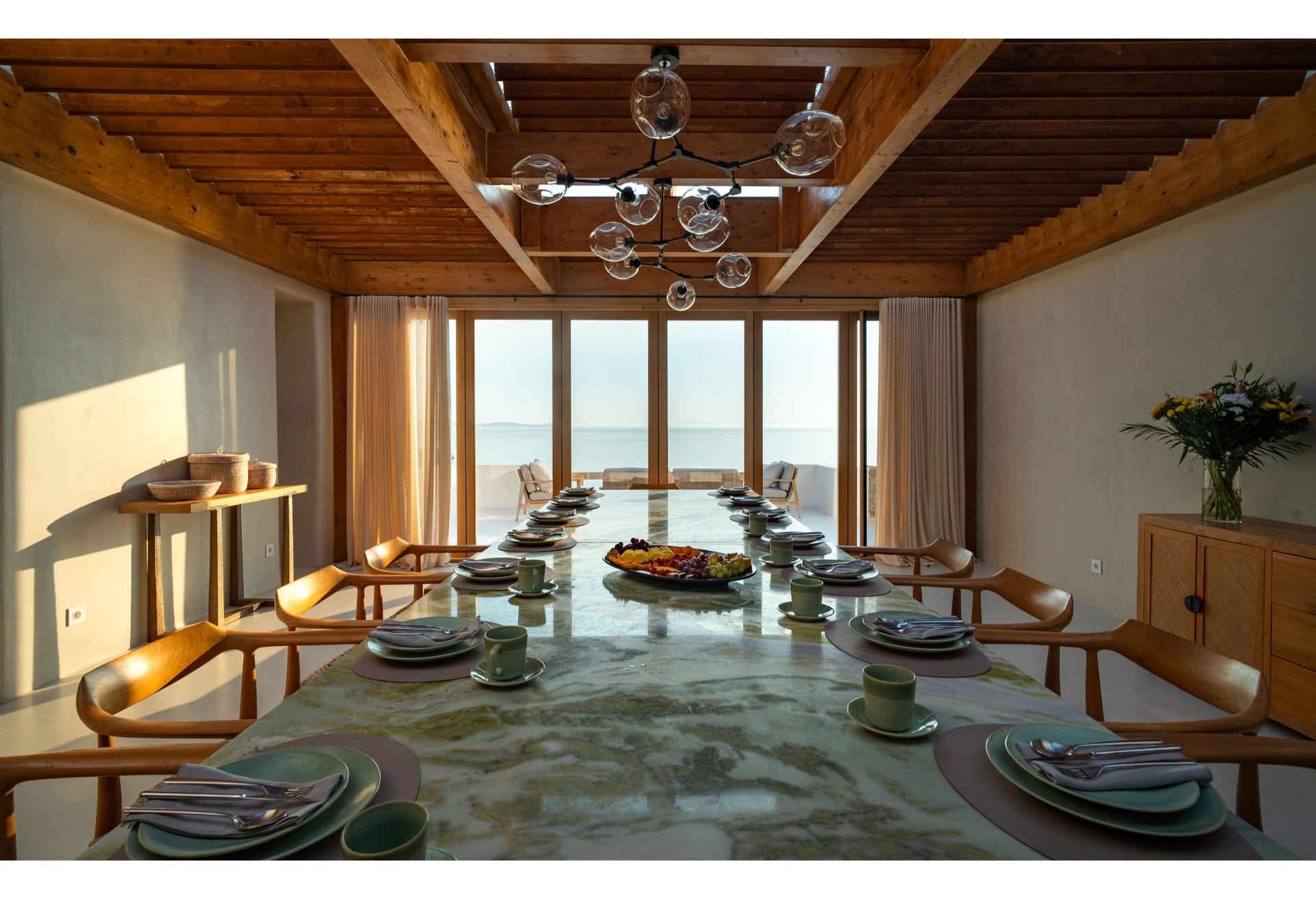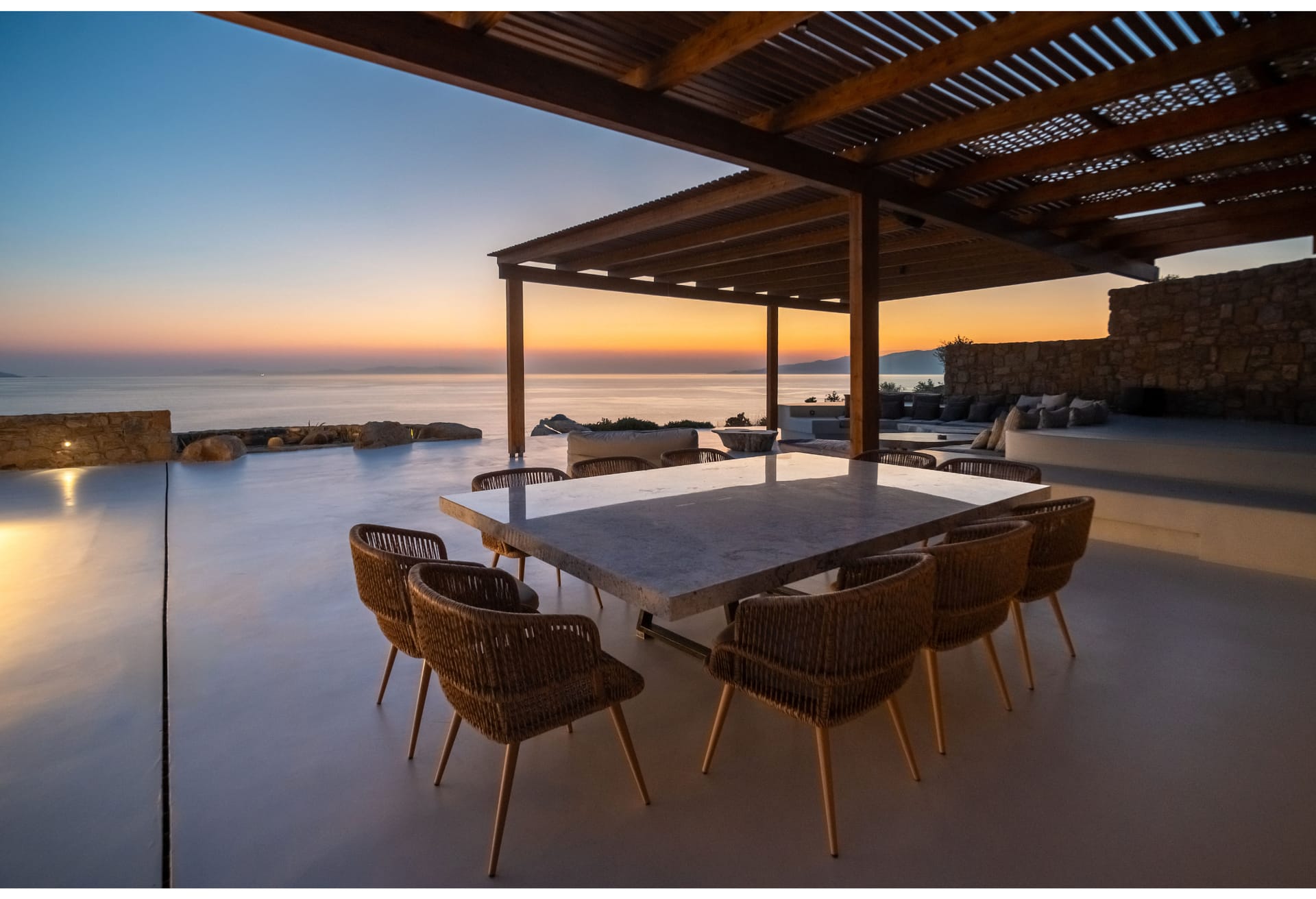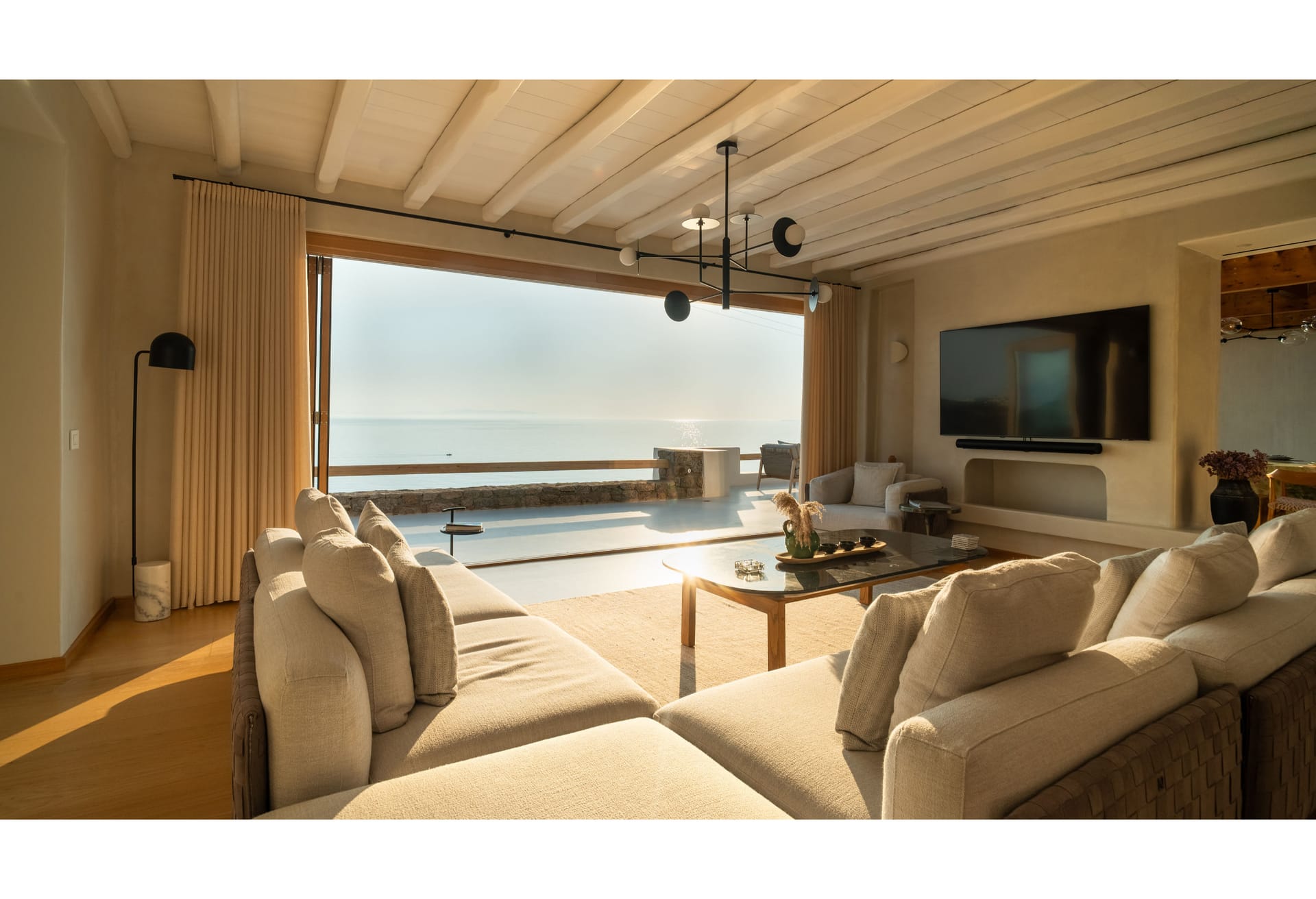 Mykonos Villa Elysian is designed as an ode to elevated island living. The villa unfolds across expansive interiors and breezy open-air spaces, all meticulously crafted to frame the cinematic sea vistas. At its heart, a gracious formal dining room and grand entertainment lounge offer the perfect setting for curated gatherings, flowing seamlessly onto an expansive sunset-facing pool terrace where a heated infinity pool appears to merge with the horizon.