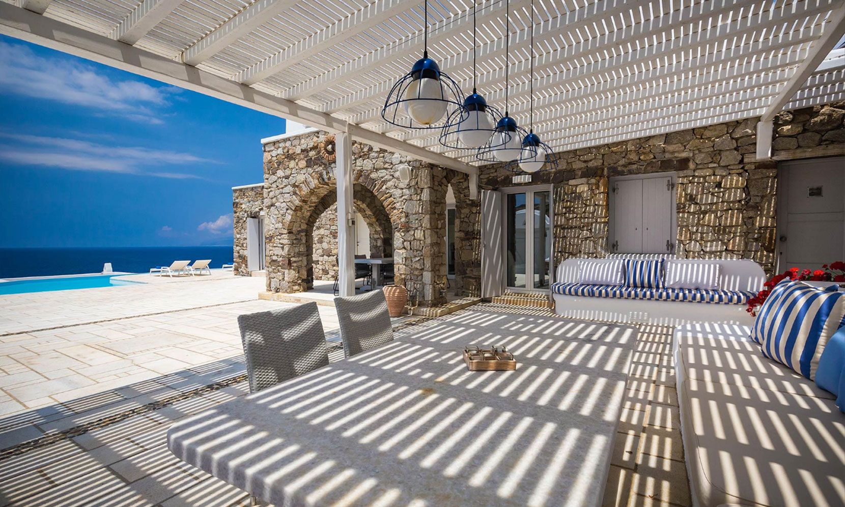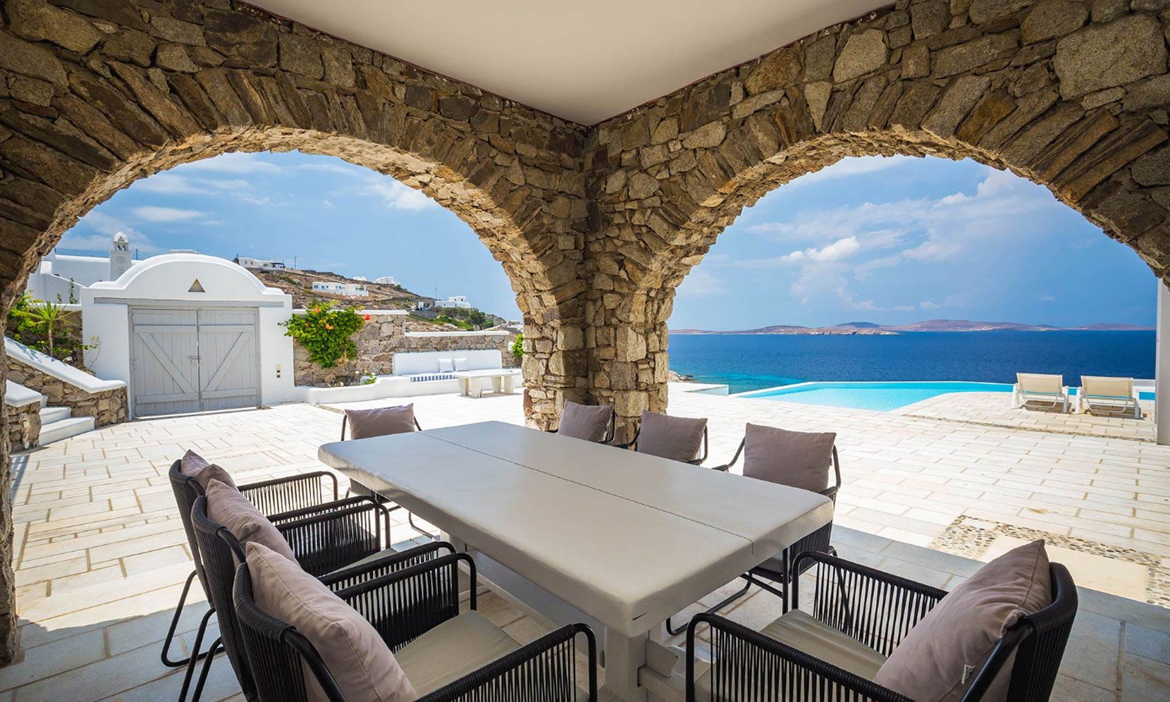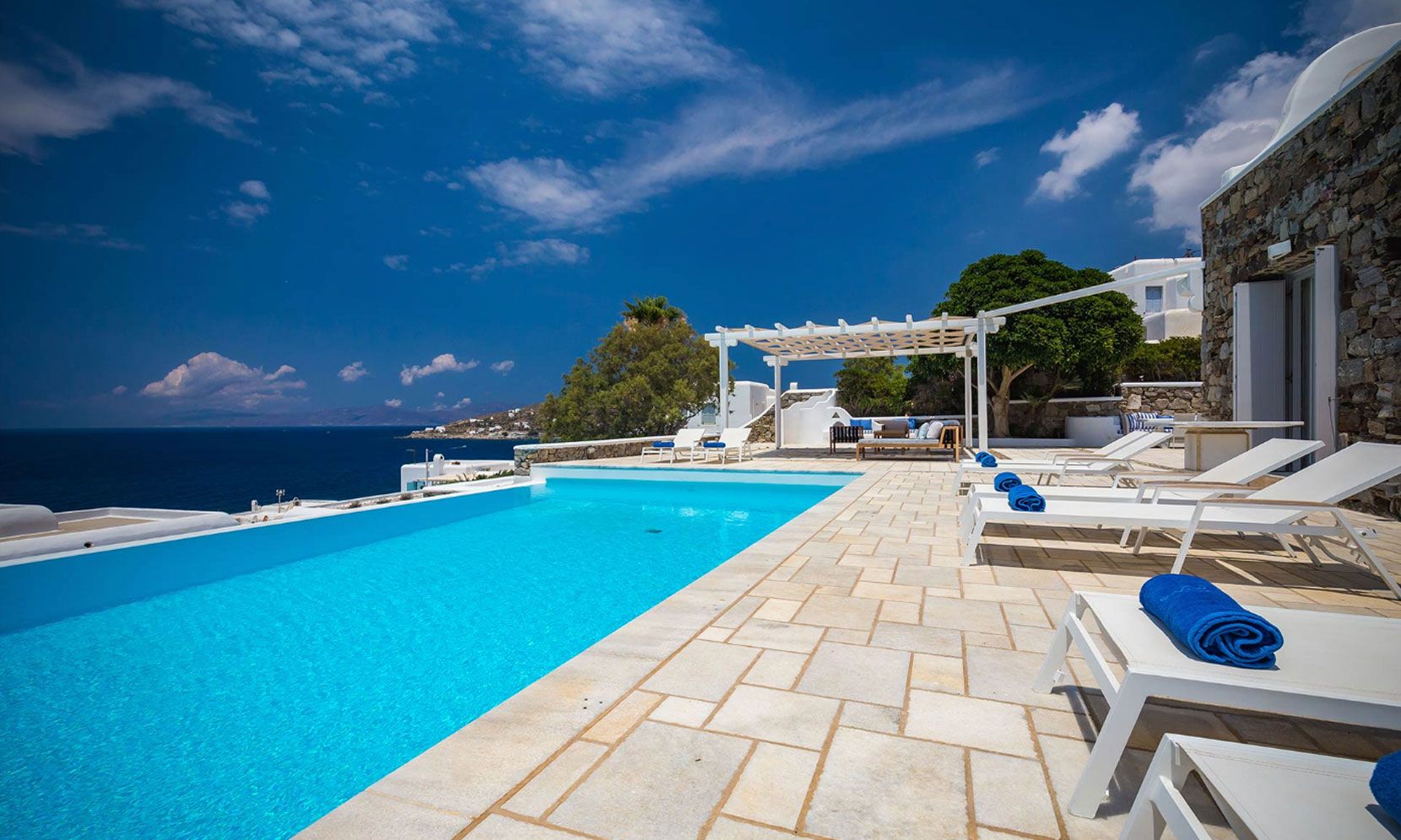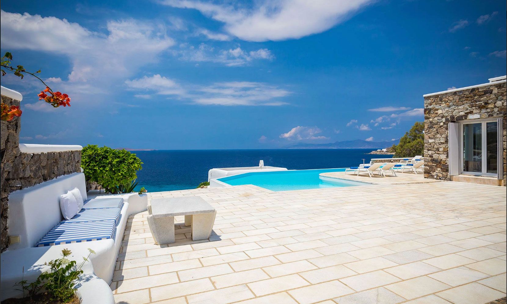 Villa Eumelia is a true Mykonian jewel, though close to the cosmopolitan Mykonos Town, retains its seclusion and privacy.