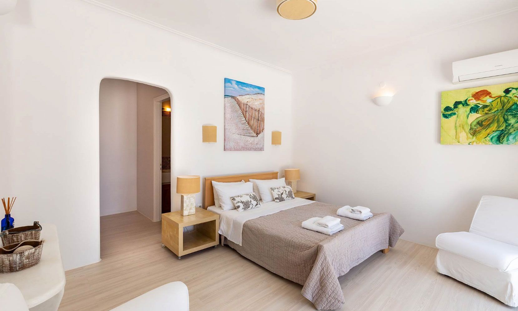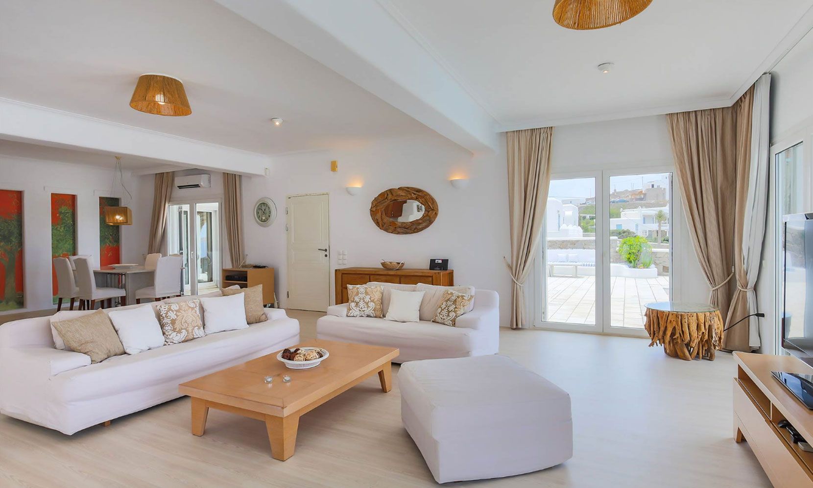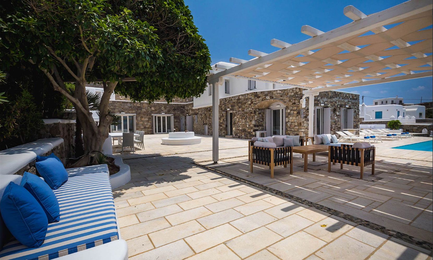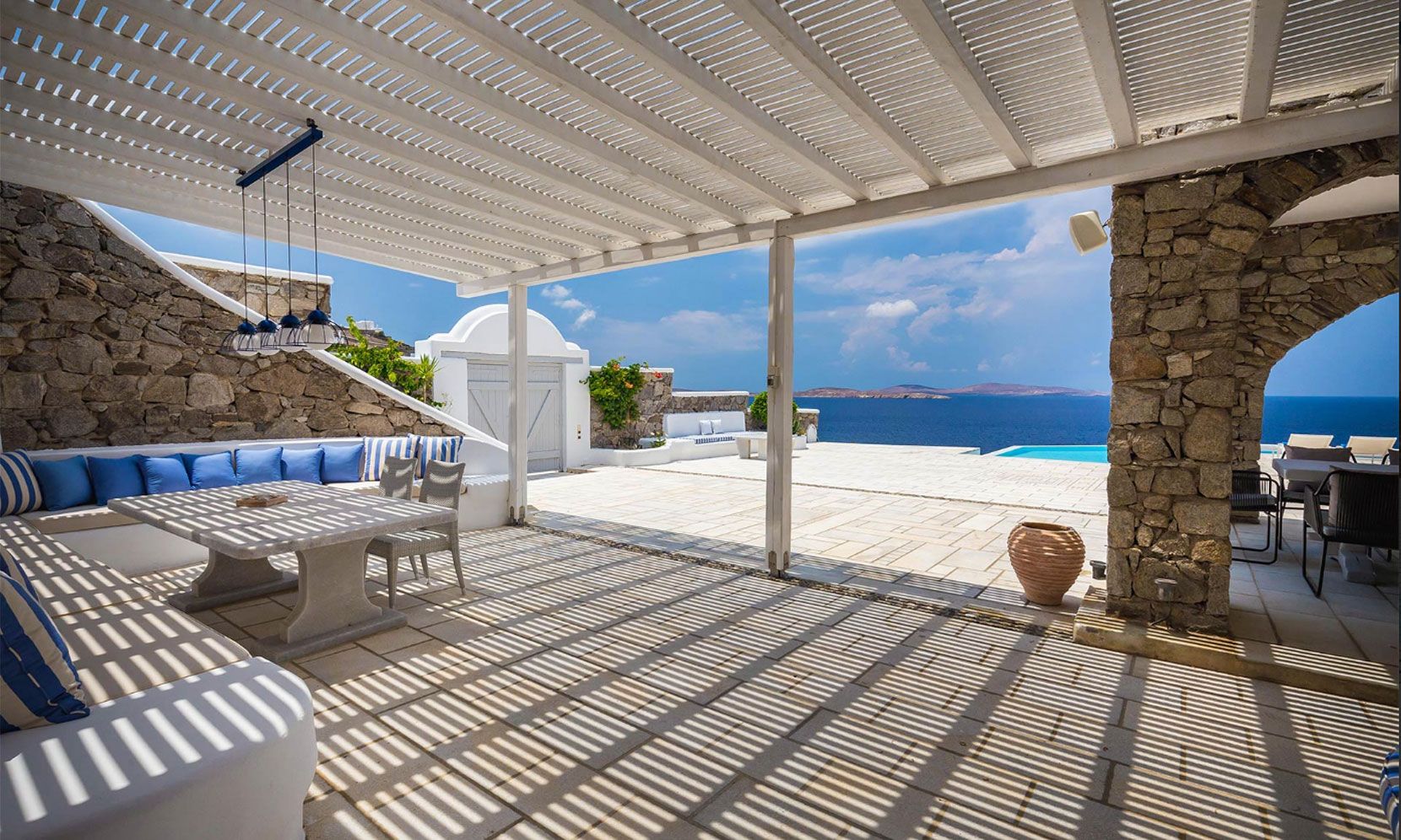 Villa Eumelia is a true Mykonian jewel, though close to the cosmopolitan Mykonos Town, retains its seclusion and privacy.