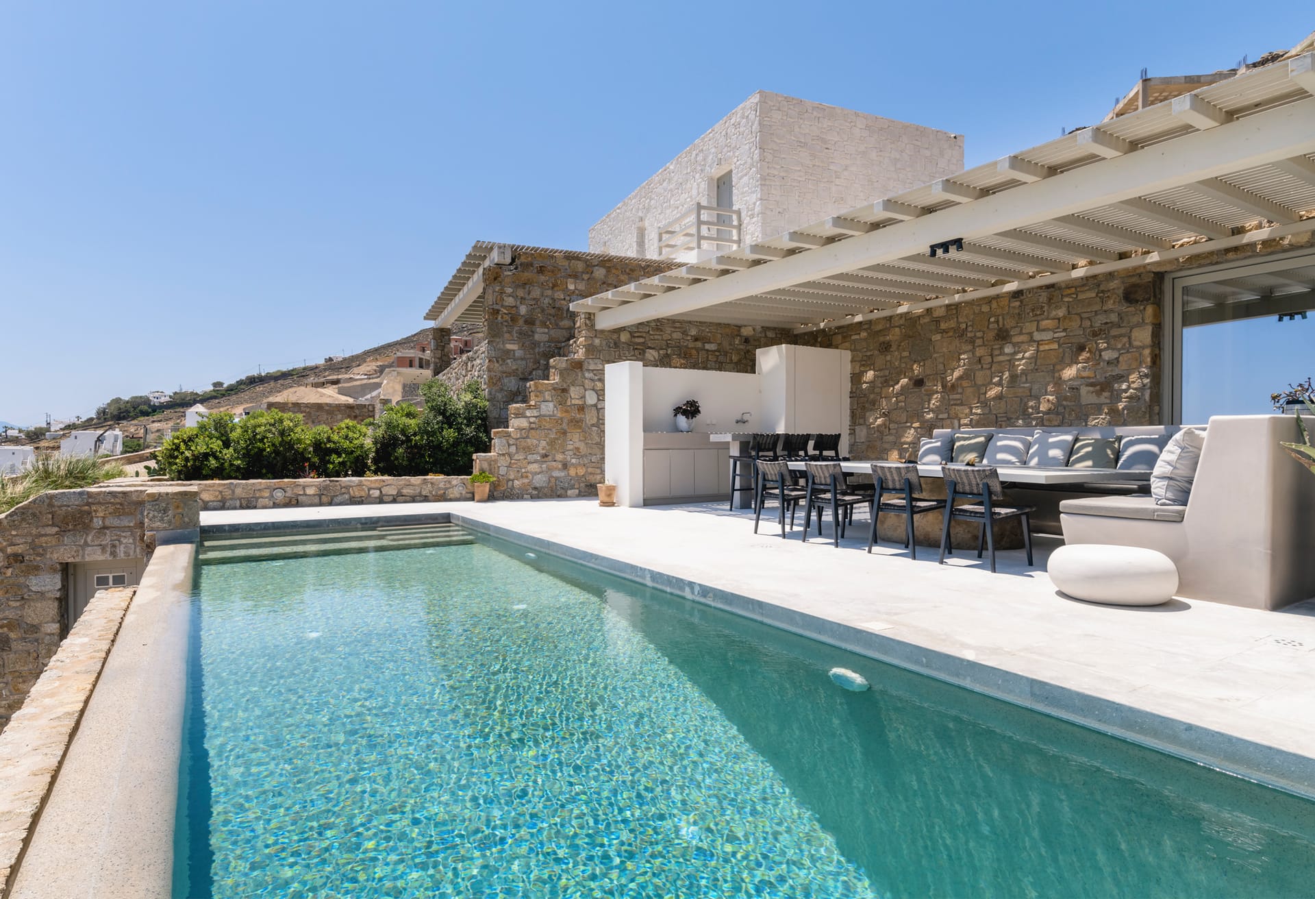 Villa Gabriel embodies refined sophistication, providing a sanctuary in the heart of Mykonos. Relax on the big terrace or swim in the pool with beautiful views around you. Enjoy a peaceful and refreshing experience.