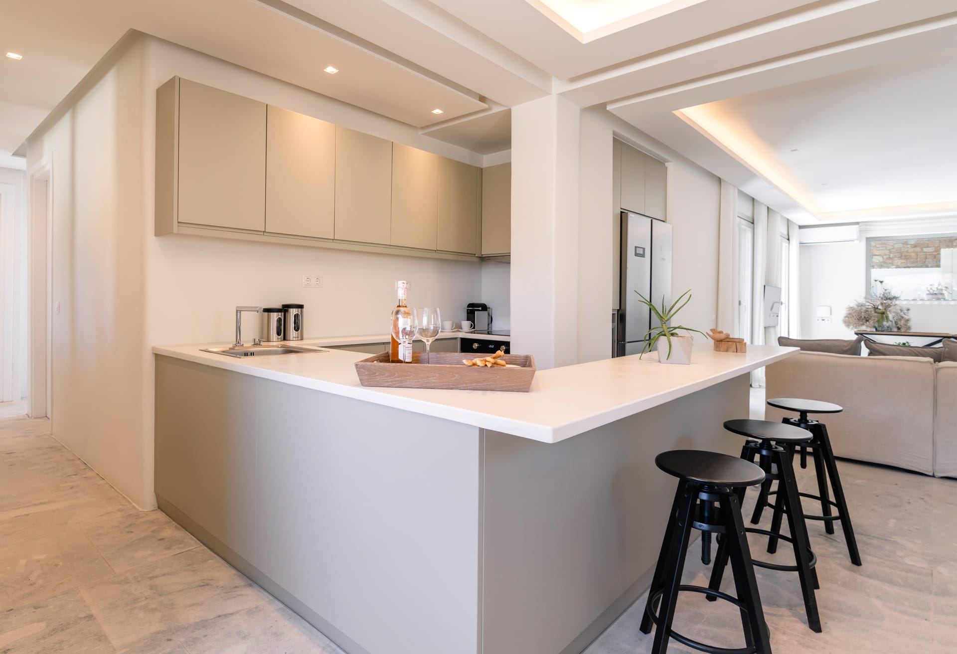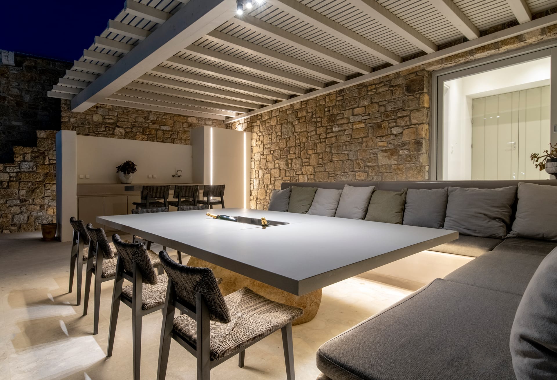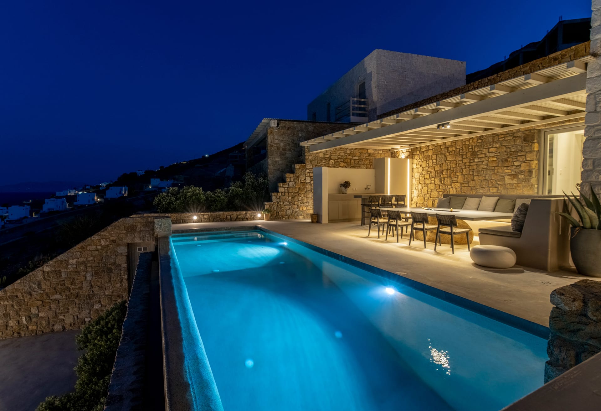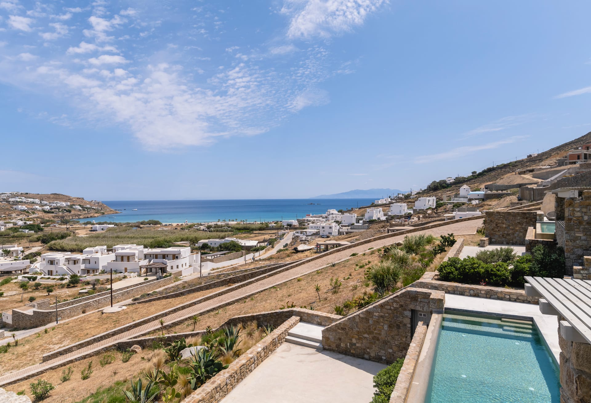 500m. from the beach. Introducing Villa Gabriel, an exceptional new addition to the breathtaking scenery of Kalo Livadi, Mykonos. With six beautifully furnished bedrooms and bathrooms, every guest will experience the utmost convenience and seclusion.