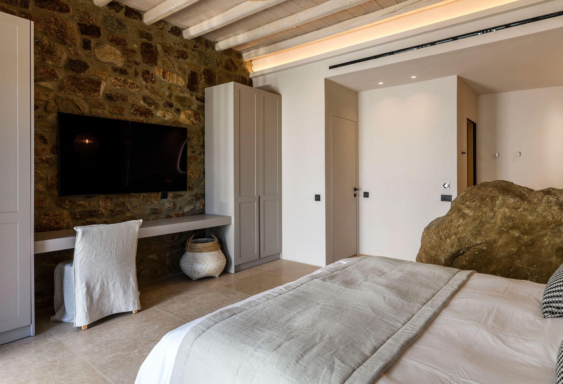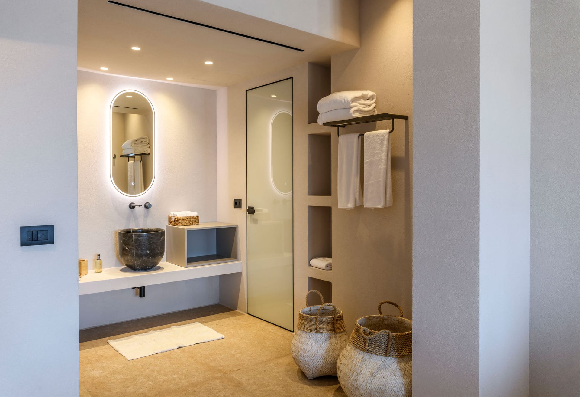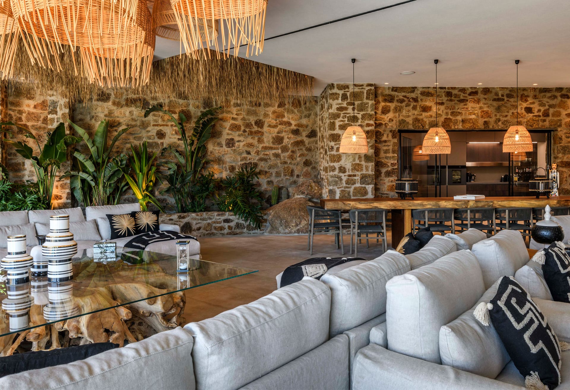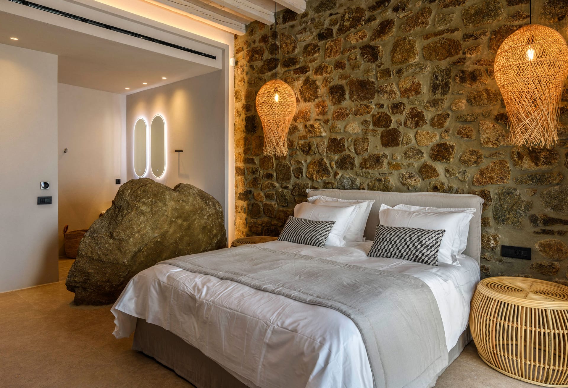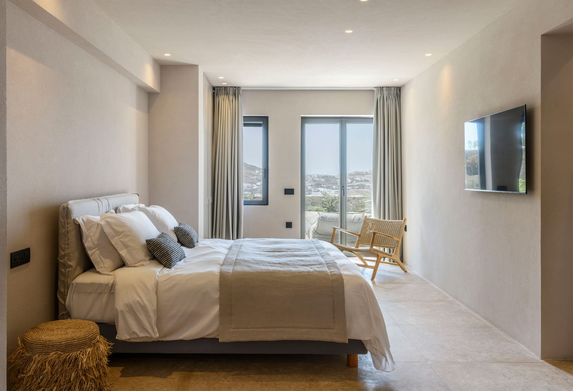 On the first level you can find 2 suites of 120sq m each and independent outdoor area. On the second level, there are 5 master bedrooms, living room, dining area, kitchen, a wine cellar and a second pool! The third level consists of a master suite and two independent guest houses, one of them built on a natural cliff!