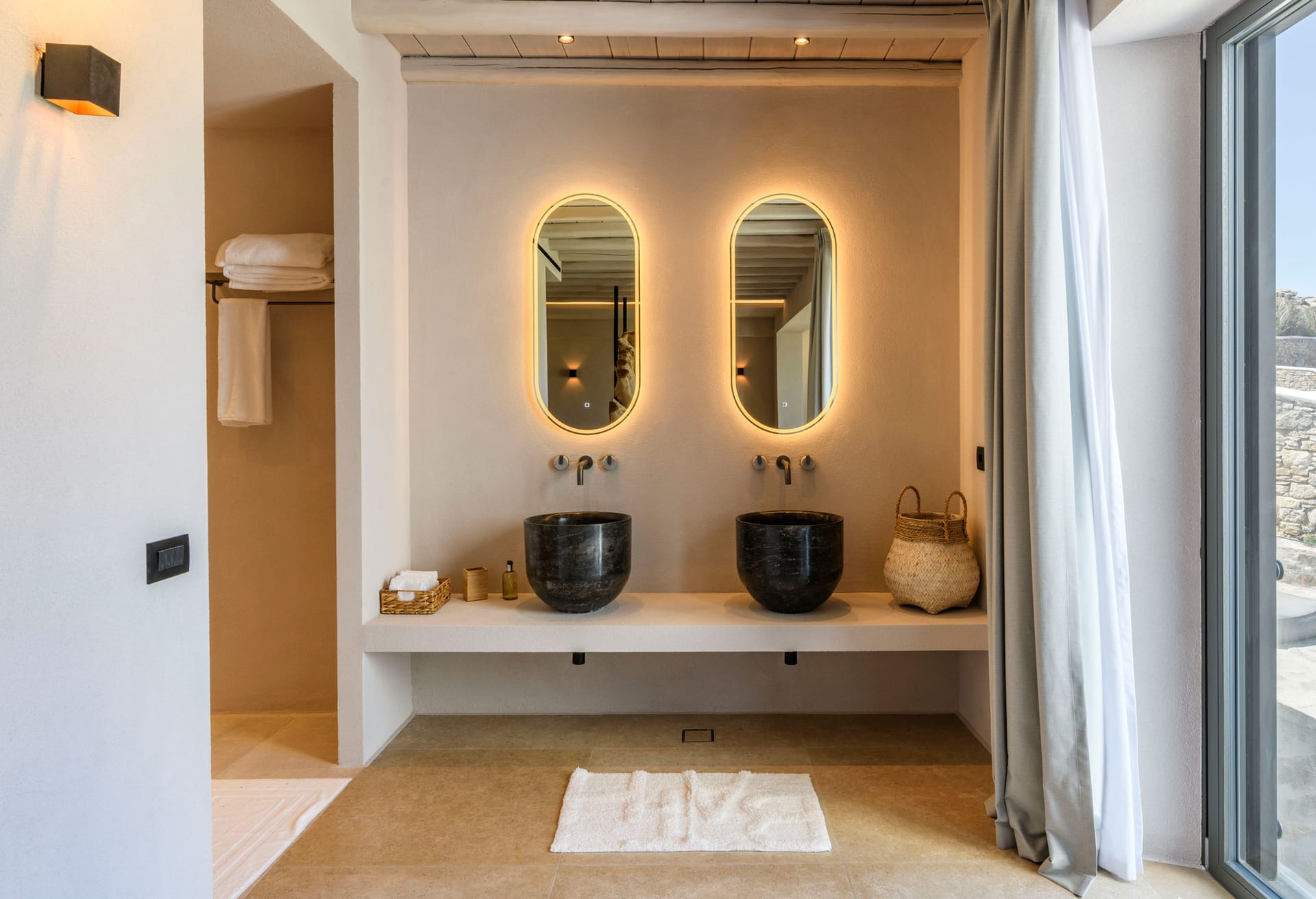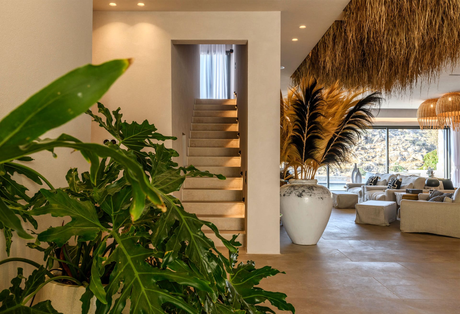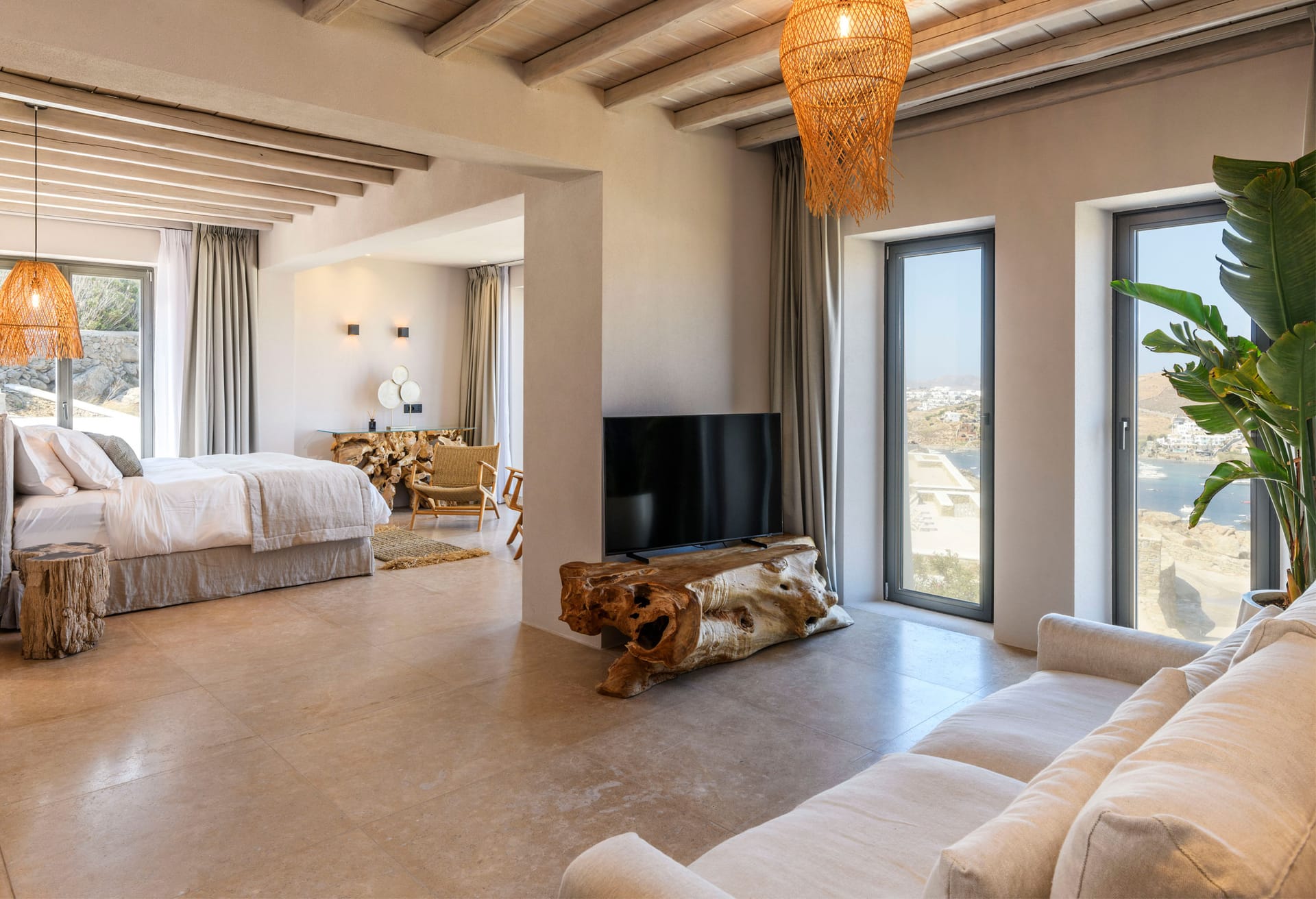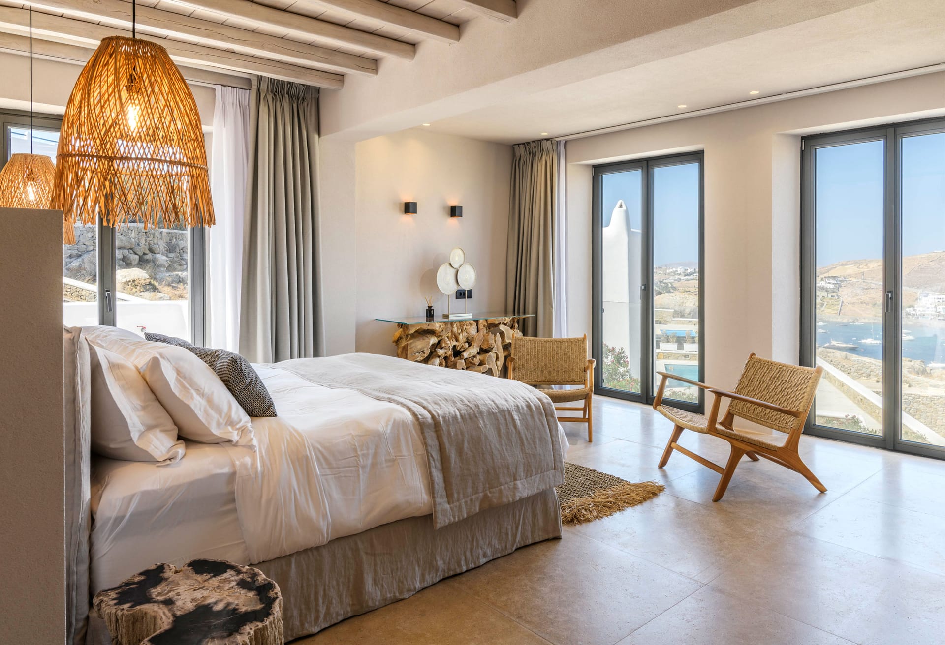On the first level you can find 2 suites of 120sq m each and independent outdoor area. On the second level, there are 5 master bedrooms, living room, dining area, kitchen, a wine cellar and a second pool! The third level consists of a master suite and two independent guest houses, one of them built on a natural cliff!