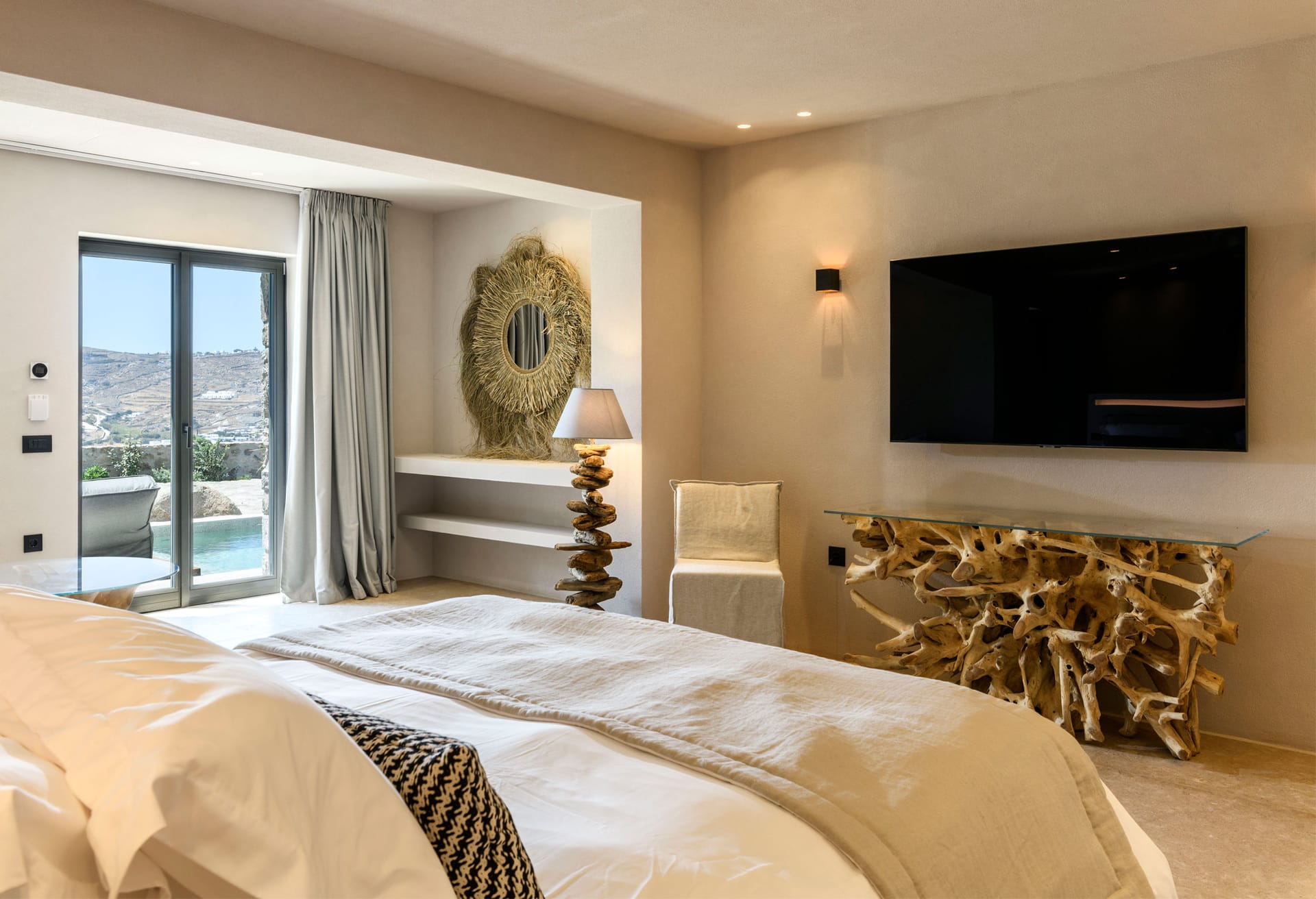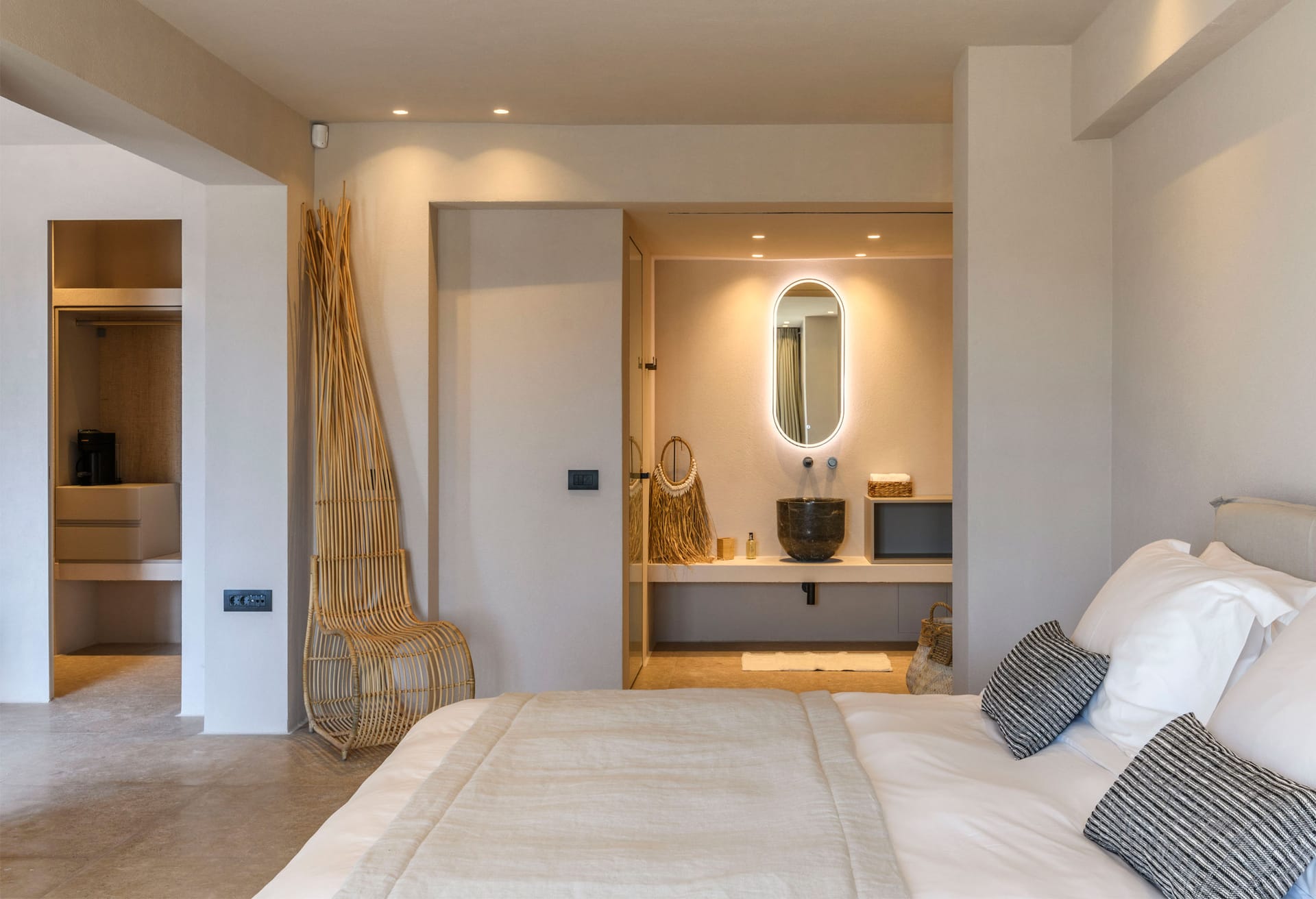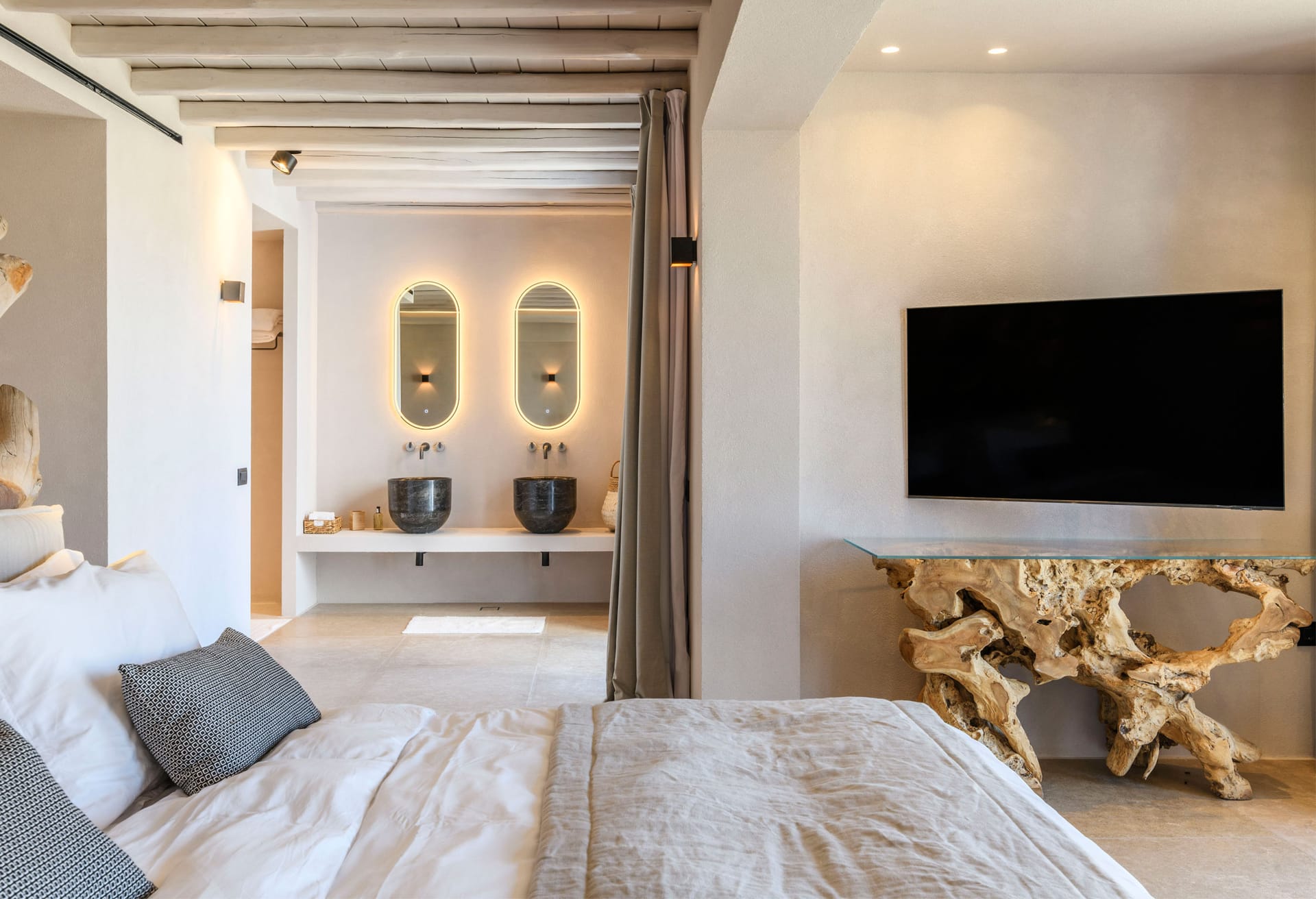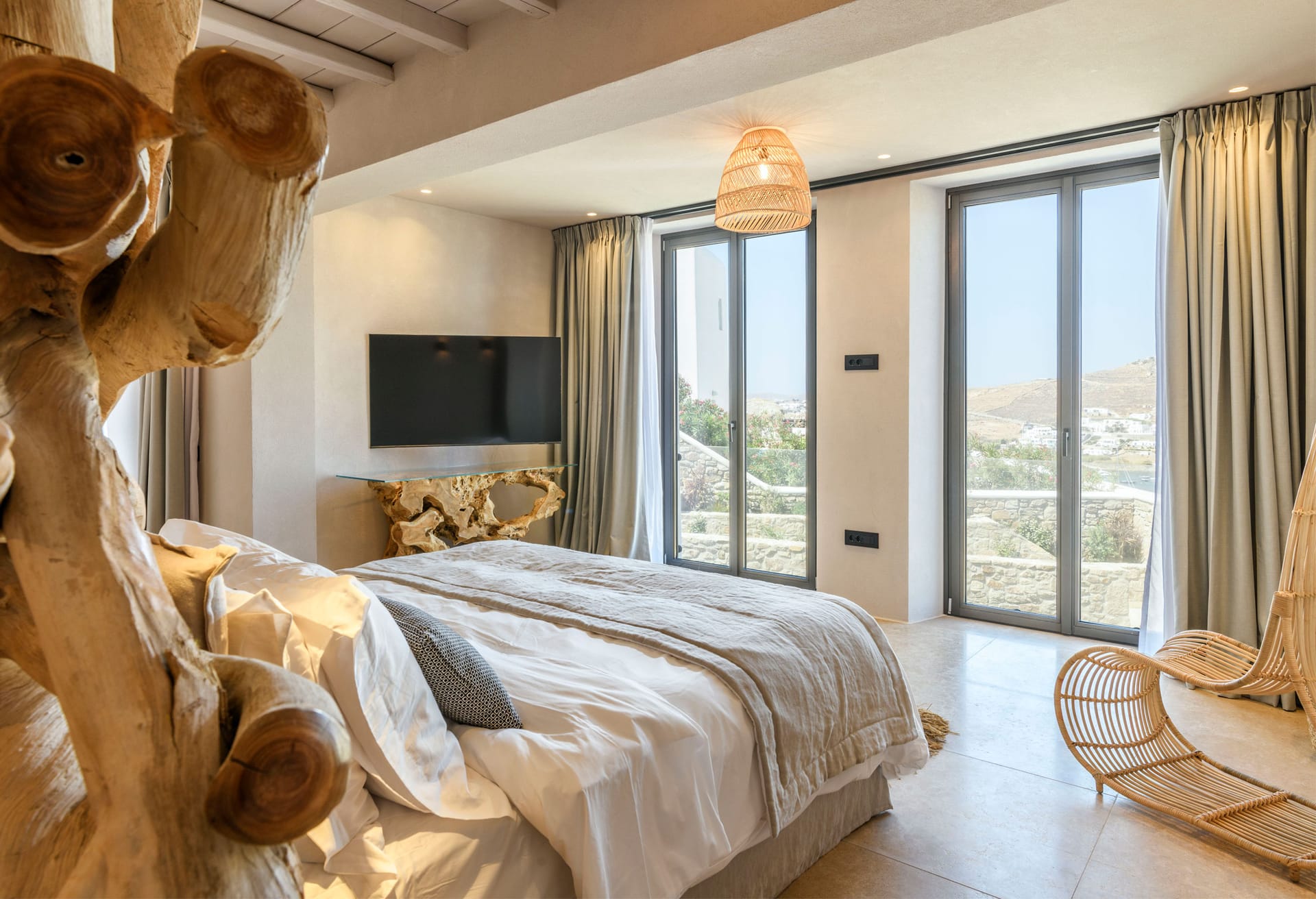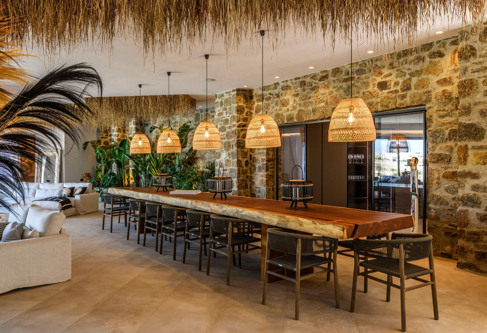 On the first level you can find 2 suites of 120sq m each and independent outdoor area. On the second level, there are 5 master bedrooms, living room, dining area, kitchen, a wine cellar and a second pool! The third level consists of a master suite and two independent guest houses, one of them built on a natural cliff!