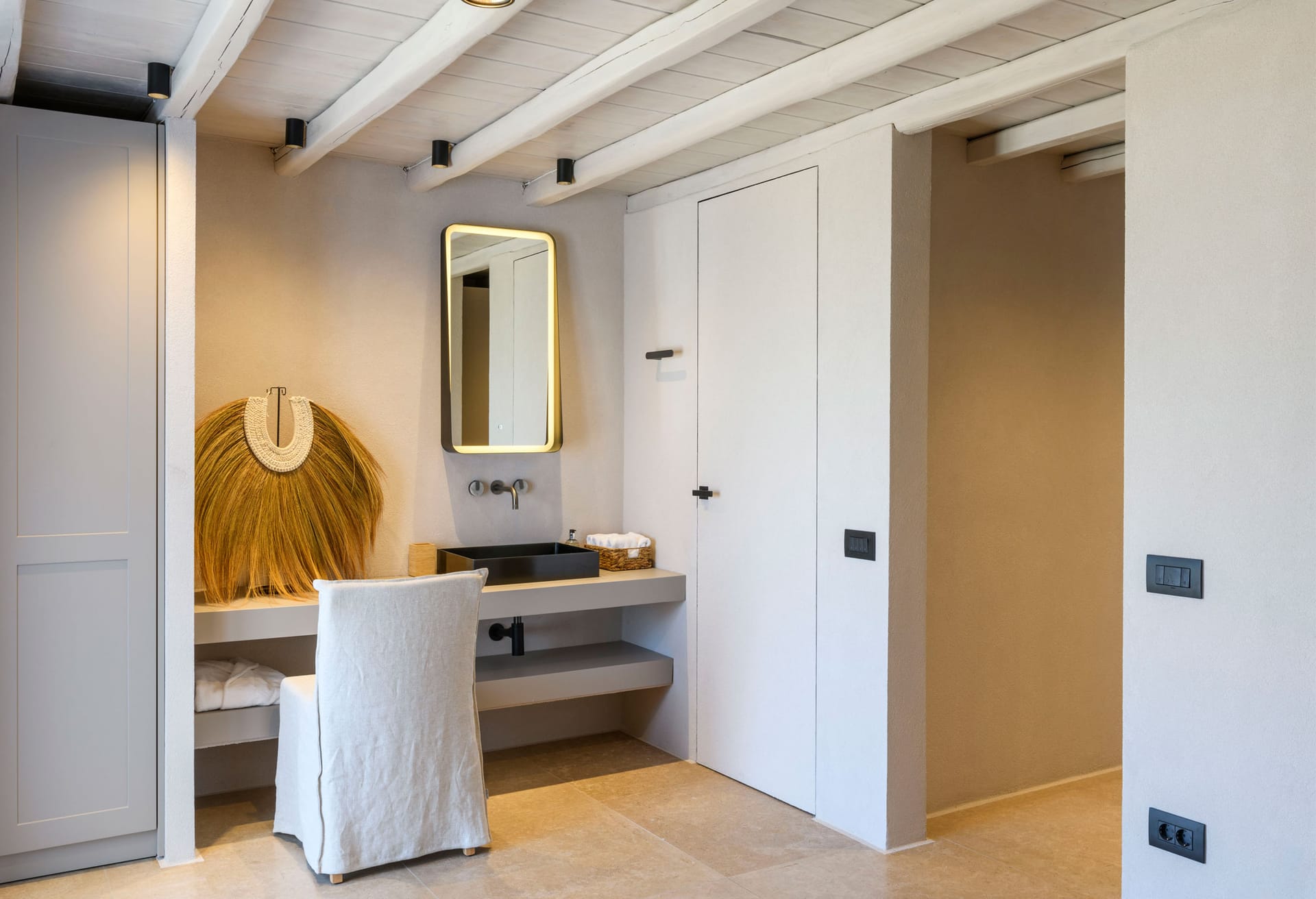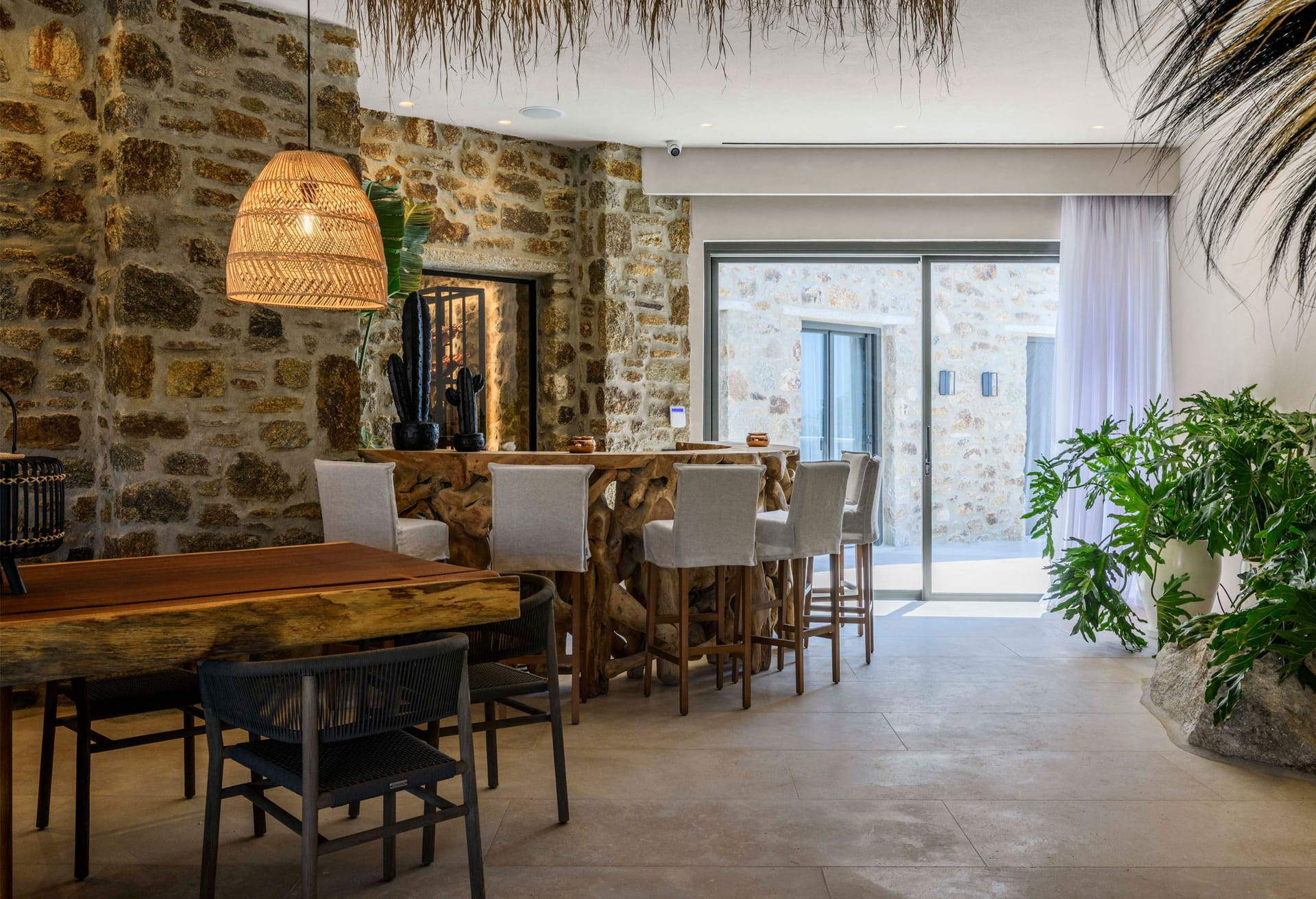 The whole property is fully air conditioned, large spaces and is fully equipped. The kitchen is also fully equipped for 20 people with tho fridges, freezers, 2 ovens and stoves. There is security system and cameras on the outside spaces. There is a separate staff room on the premises.