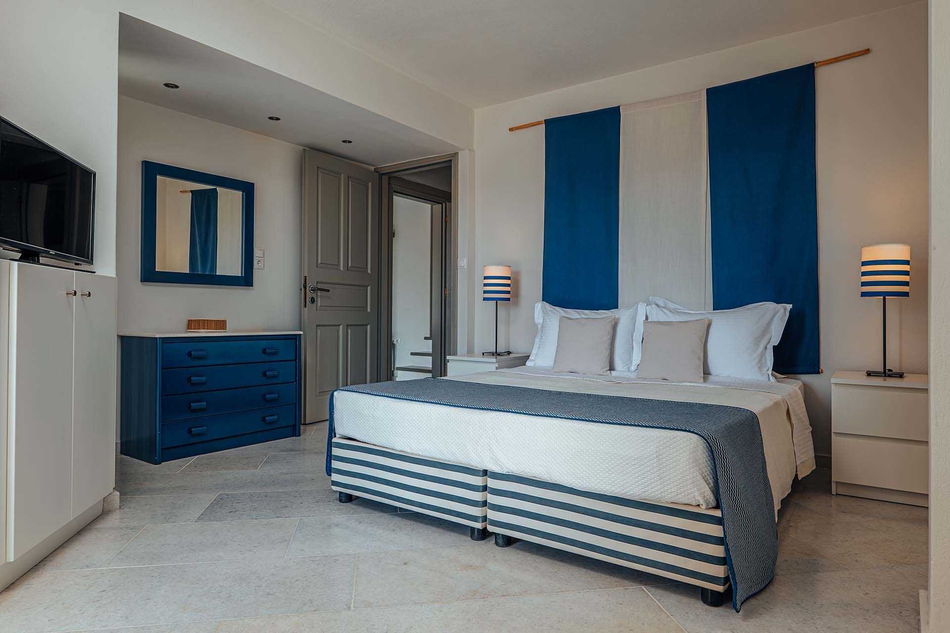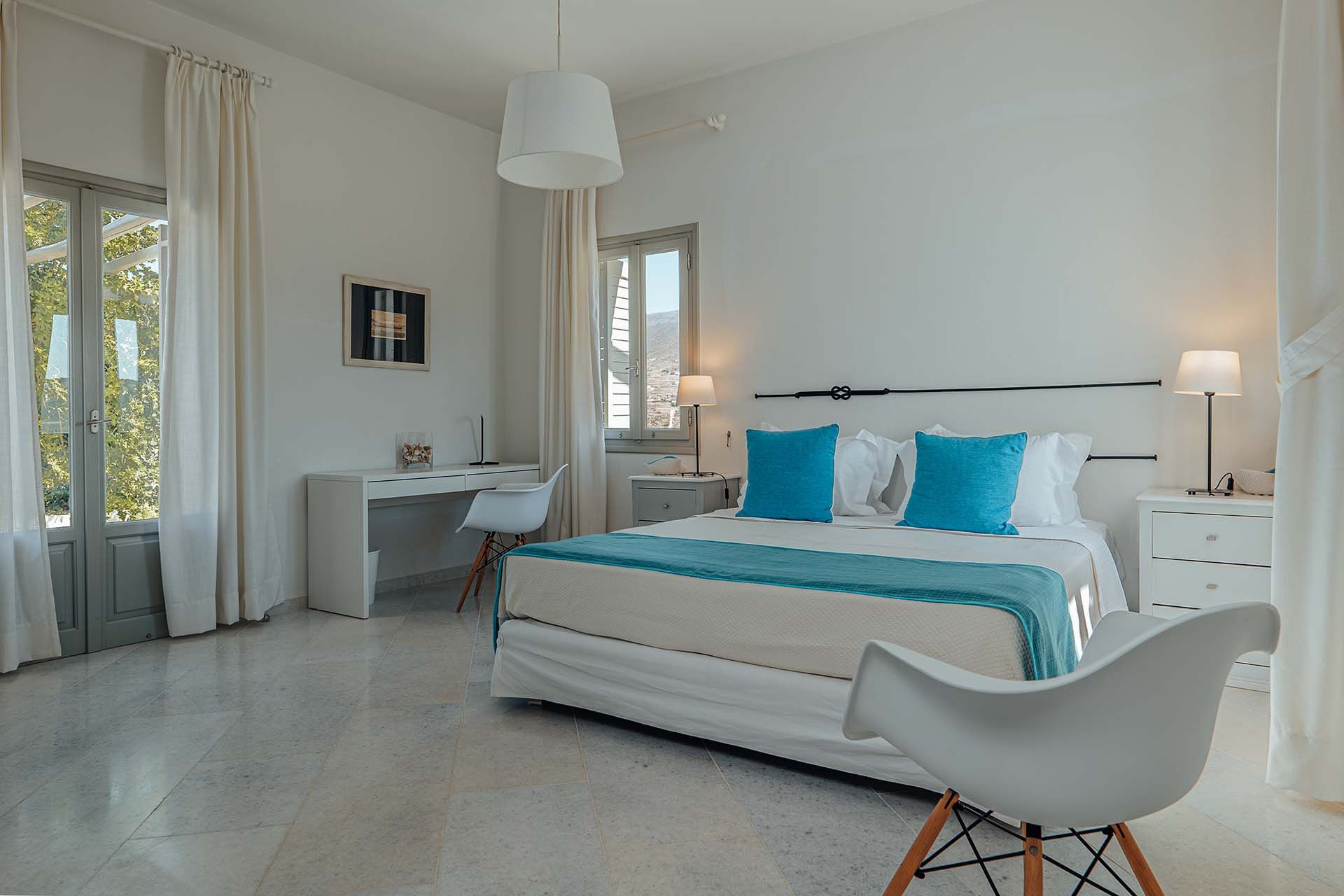Ocyrhoe III is a relaxed Paros villa for up to 8 guests, with open Aegean views and west-facing sunsets. It’s about 2 km from Parikia for shops and dining, and close to Parasporos Beach. Outdoors is simple and easy: pergola-shaded dining for breakfasts and dinners, plus a pool terrace with sunbeds for long, unhurried afternoons. Inside, the mood is bright and modern with clean lines, natural light, and a fully equipped kitchen alongside comfortable living and dining spaces. The villa has four air-conditioned bedrooms for restful downtime. Private chef and in-villa massage services can be arranged on request. It’s part of a small three-villa estate, useful for larger groups staying nearby while keeping independence.