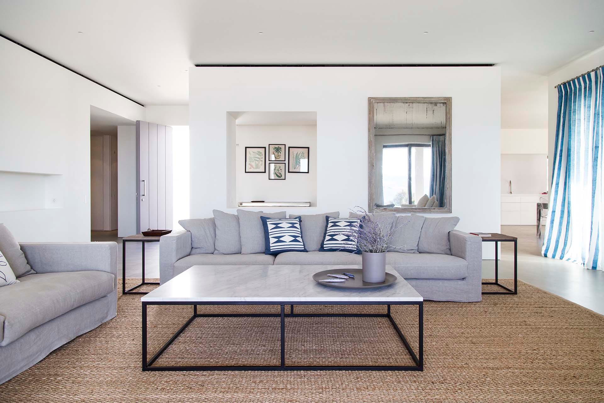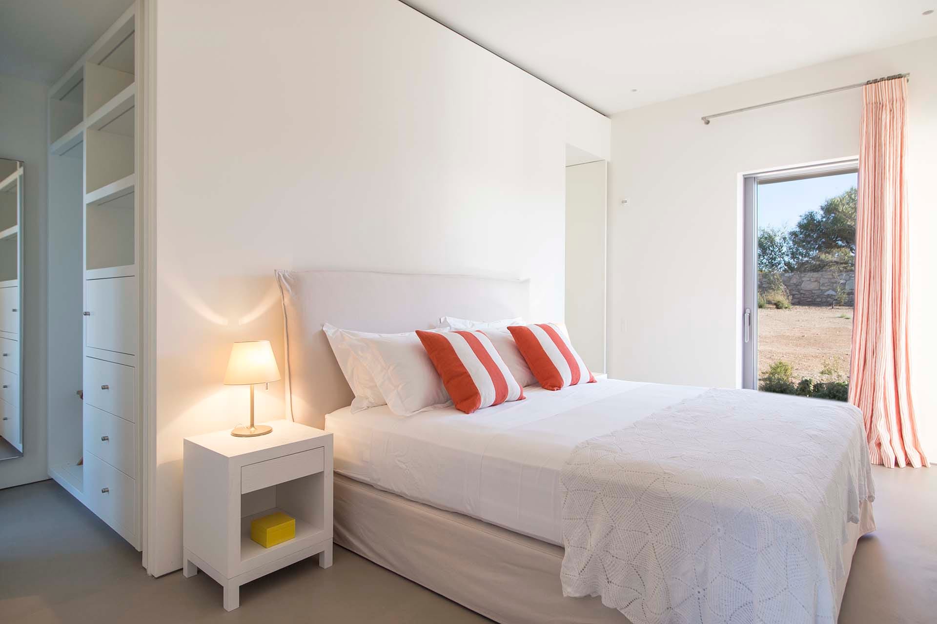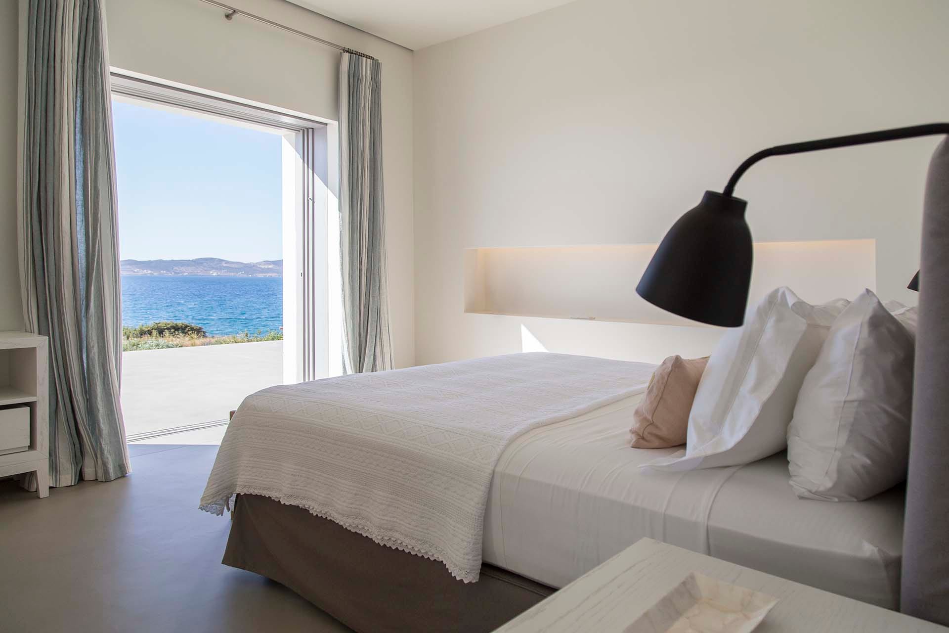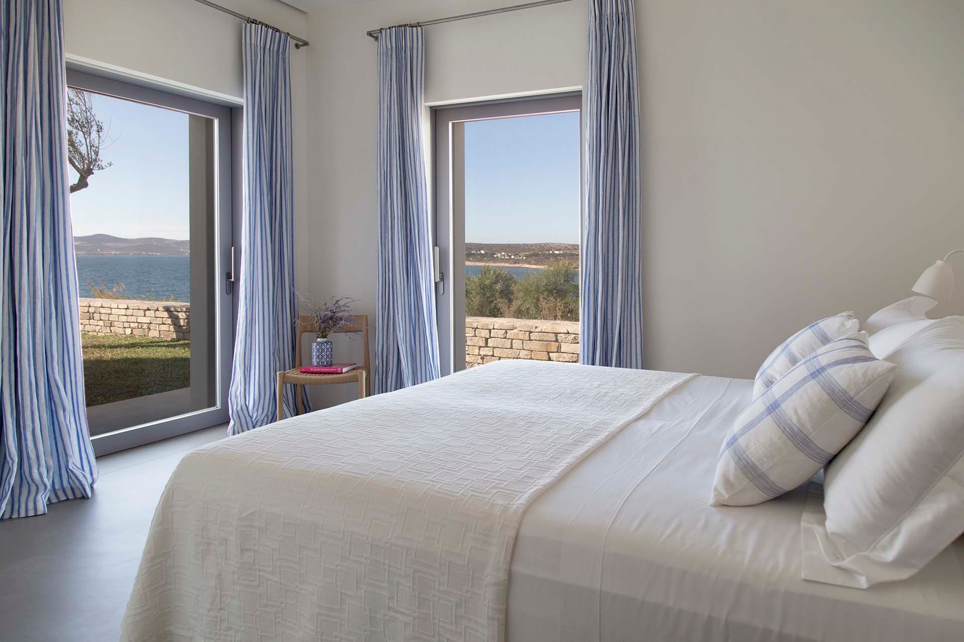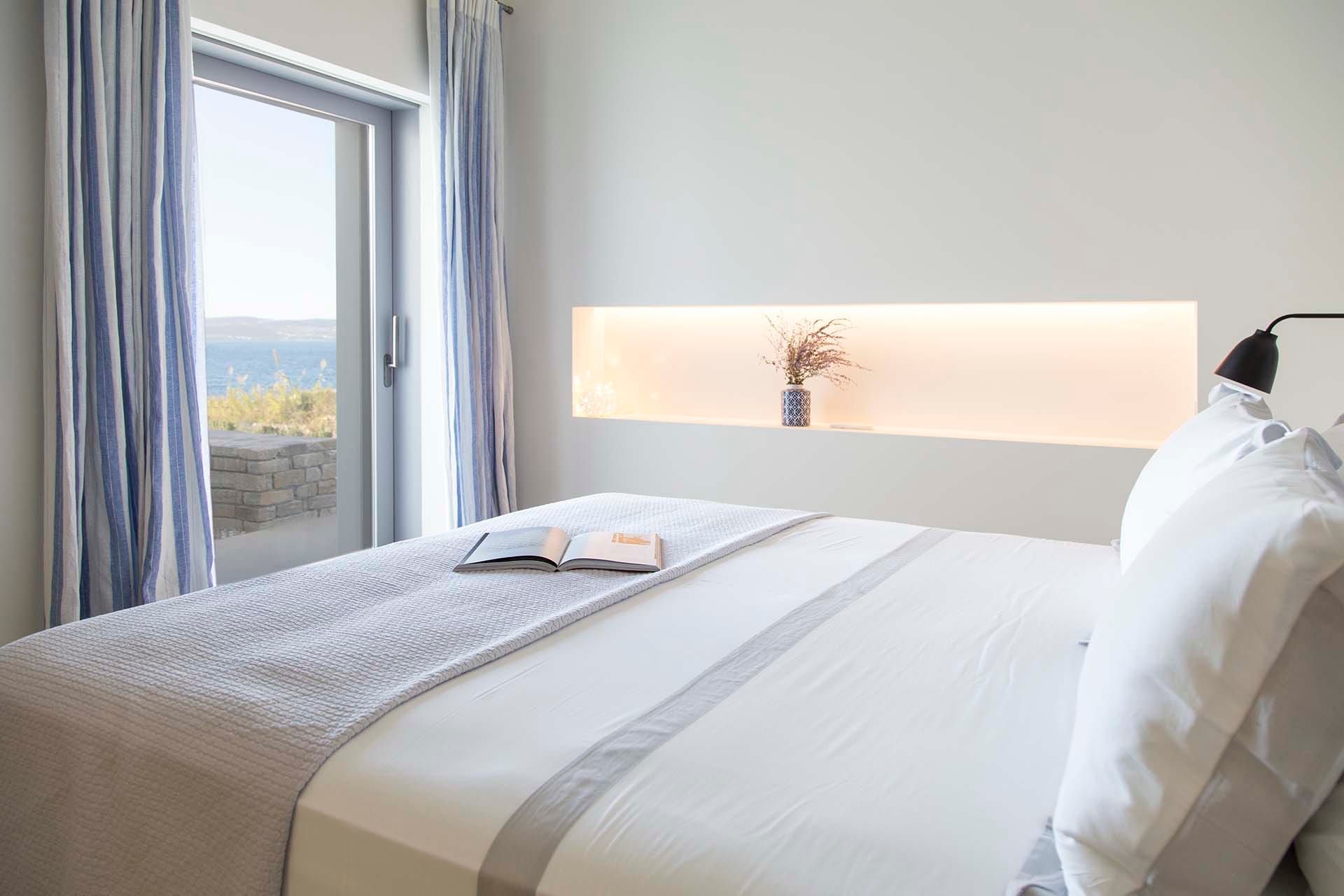 Olympia is a modern Paros villa for up to 10 guests, set in a calm landscape with expansive Aegean views and close to a secluded cove. Outdoor life centres on a sea-facing infinity pool, with alfresco dining, a BBQ and a pool bar for easy meals and sunset drinks. Indoors, the mood is bright and uncluttered, with an open-plan living area flowing into the kitchen and dining table for shared breakfasts. The layout includes a main house plus an independent guesthouse, helping groups keep privacy while staying together. Parikia is about 20 minutes away for shops and dining, with Aliki nearby for seafood tavernas. Day cruises to Antiparos can be arranged on request.