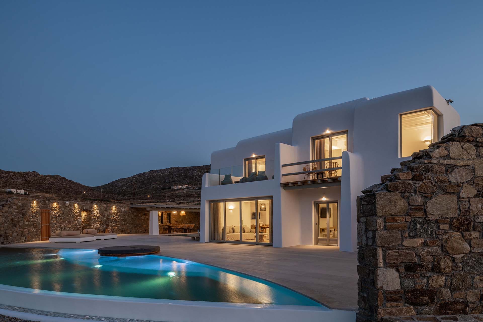 Adel Retreat is a luxury estate in Ftelia, Mykonos, perfect for large groups seeking privacy and relaxation. Hosting up to 22 guests across three villas, it features 3 private swimming pools, a heated jacuzzi, BBQ areas, a pool bar, and a fully equipped gym. Modern, spacious interiors offer sea views and full amenities. Just minutes from Alemagou Beach Bar, it's ideal for unforgettable getaways. Whether with family or friends, Adel Retreat promises comfort, style, and the perfect island escape.