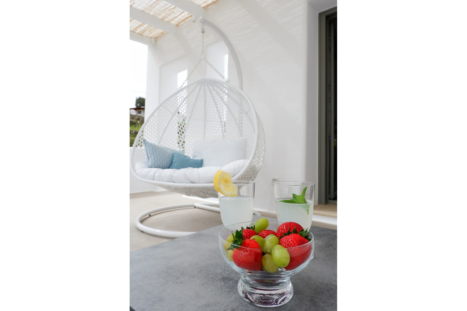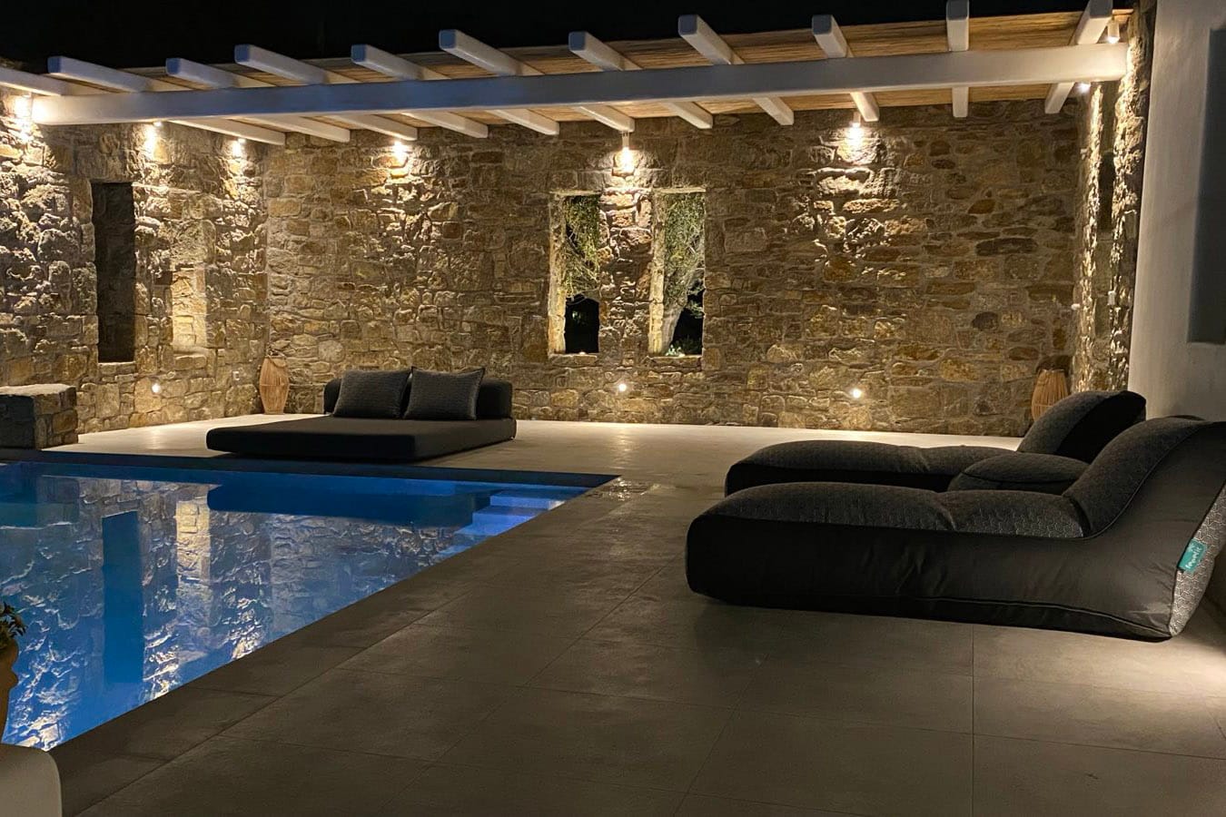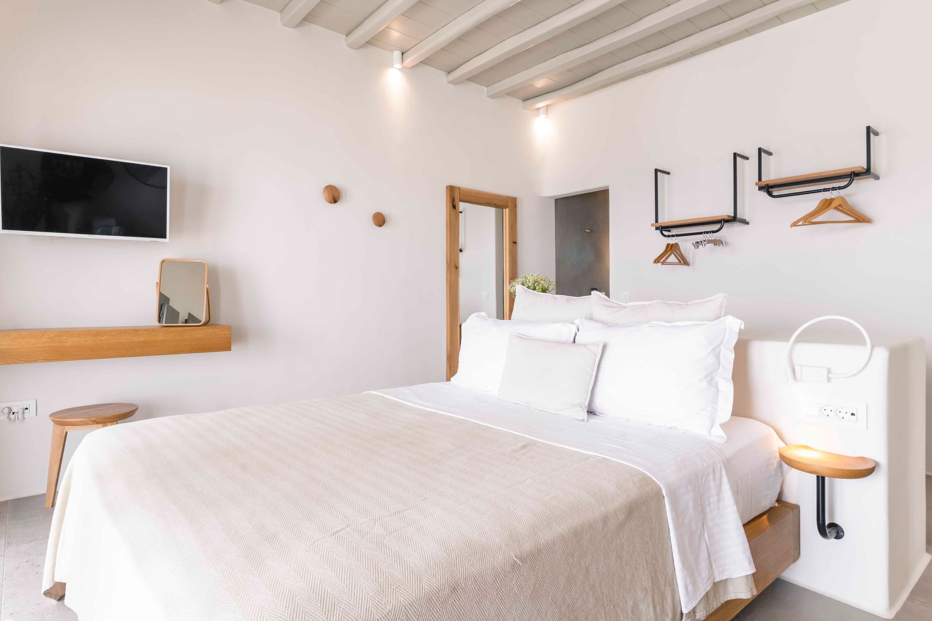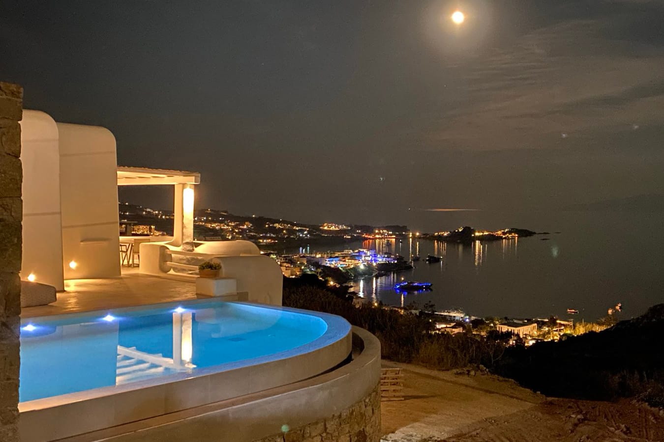 Marshmallow is an intimate Psarou hideaway made up of two cozy villas for a total of 6 guests. The focus is firmly on outdoor living: two infinity pools at the terrace edge, two open-air jacuzzis, loungers, and shaded dining corners that catch the breeze and the view. Indoors, light-filled rooms, minimal Cycladic touches, and three sea-view bedrooms keep things easy and unfussy. With Nammos and Mykonos Town a short drive away, it balances seclusion with easy access to the hotspots.