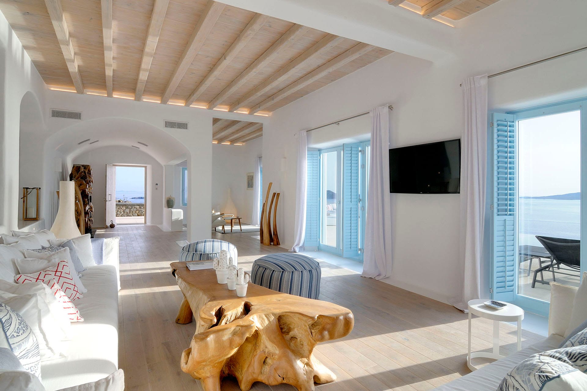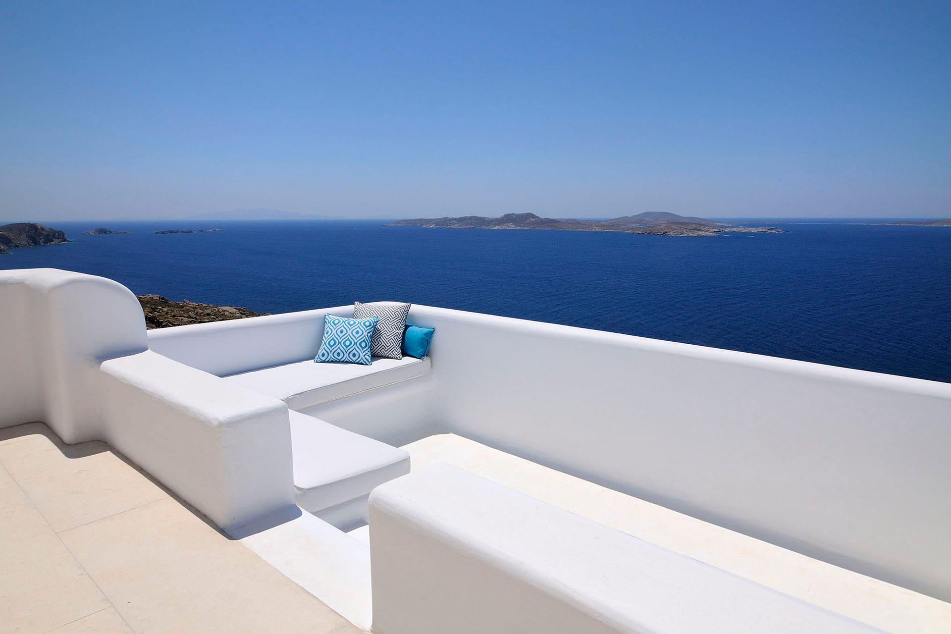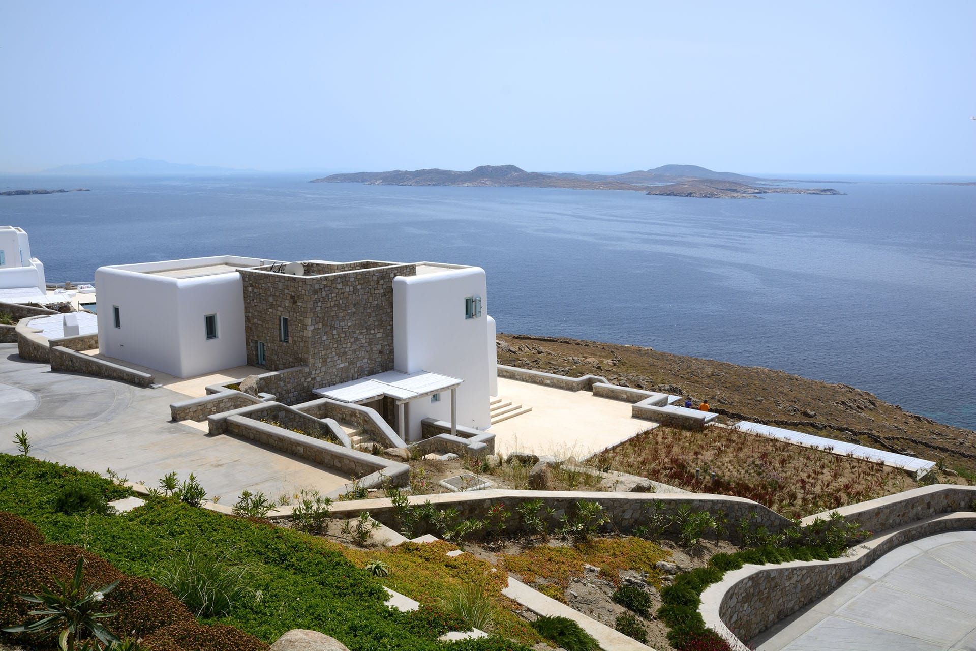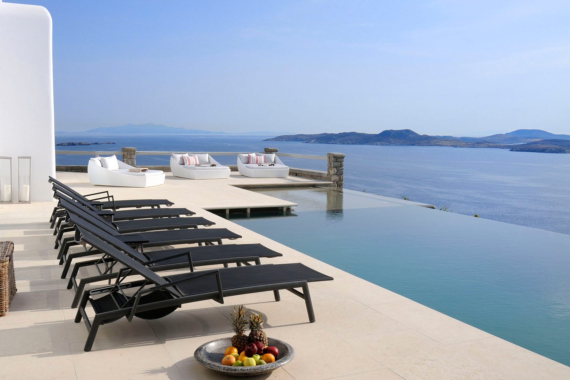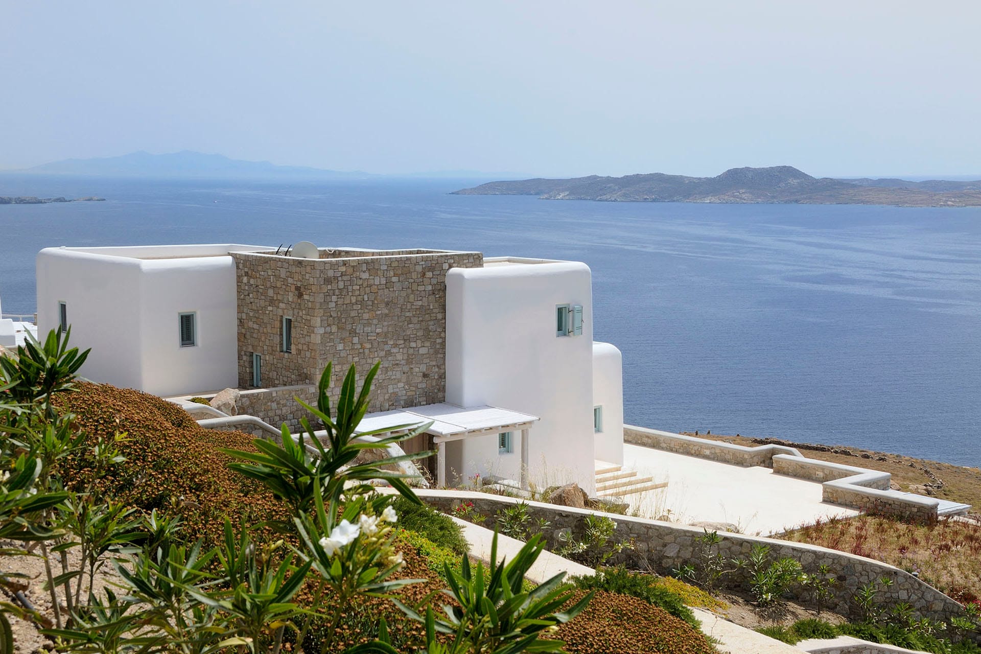 On a wind-sheltered slope in southwest Mykonos, Mastiha is a Signature Portfolio villa that brings two neighboring properties together for a calm retreat. Sixteen ensuite bedrooms host up to 32, with airy interiors that slide to sea-facing terraces. Outside, two infinity pools run to the view, pergola dining and charcoal BBQs set unhurried meals, and there’s room to gather or peel off in quiet corners. Indoors, modern lines and natural materials keep the mood easy. Ornos, Nammos, and Mykonos Town sit a short drive away.