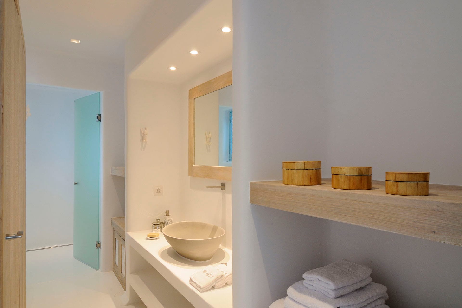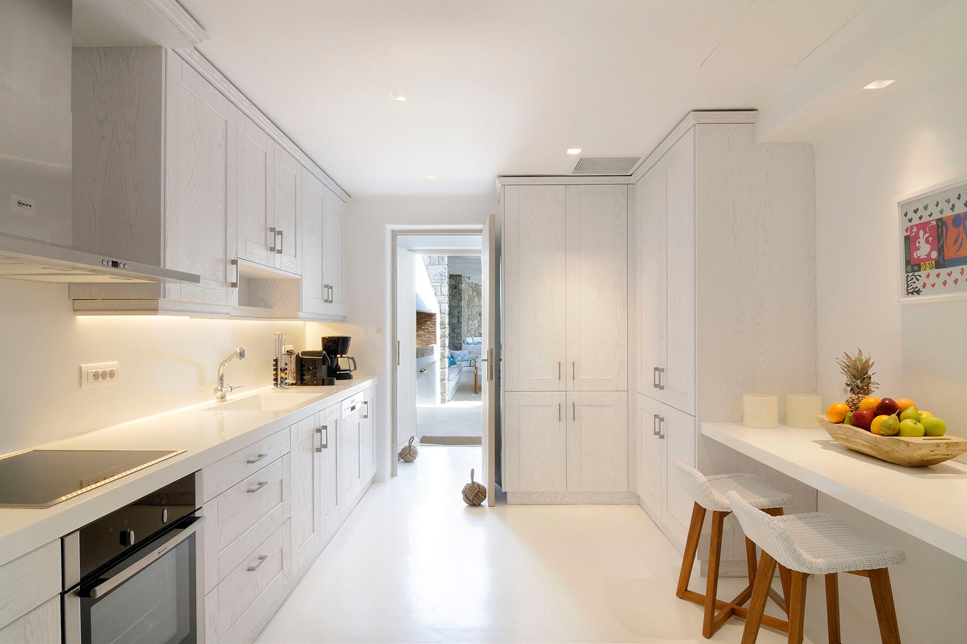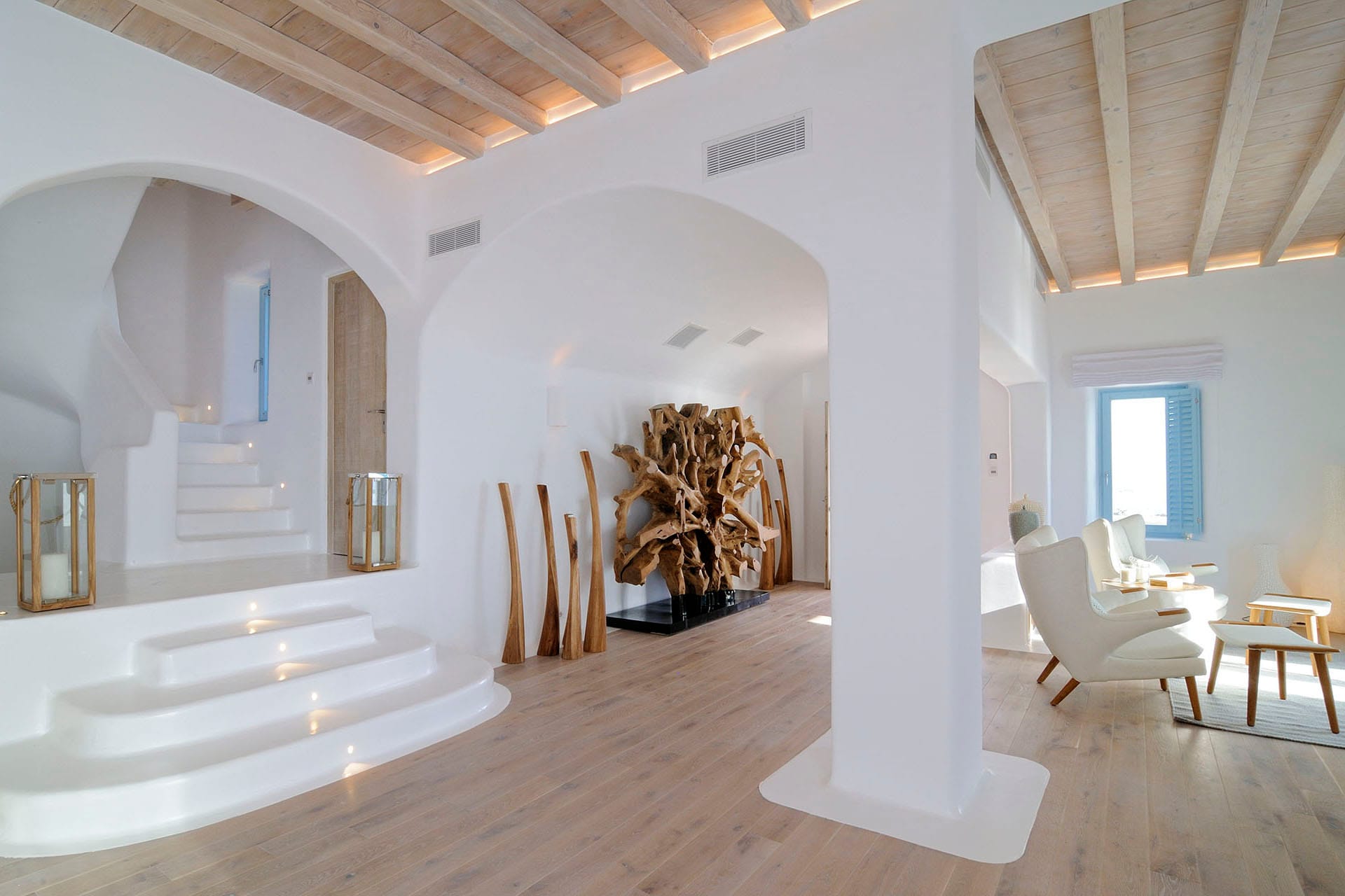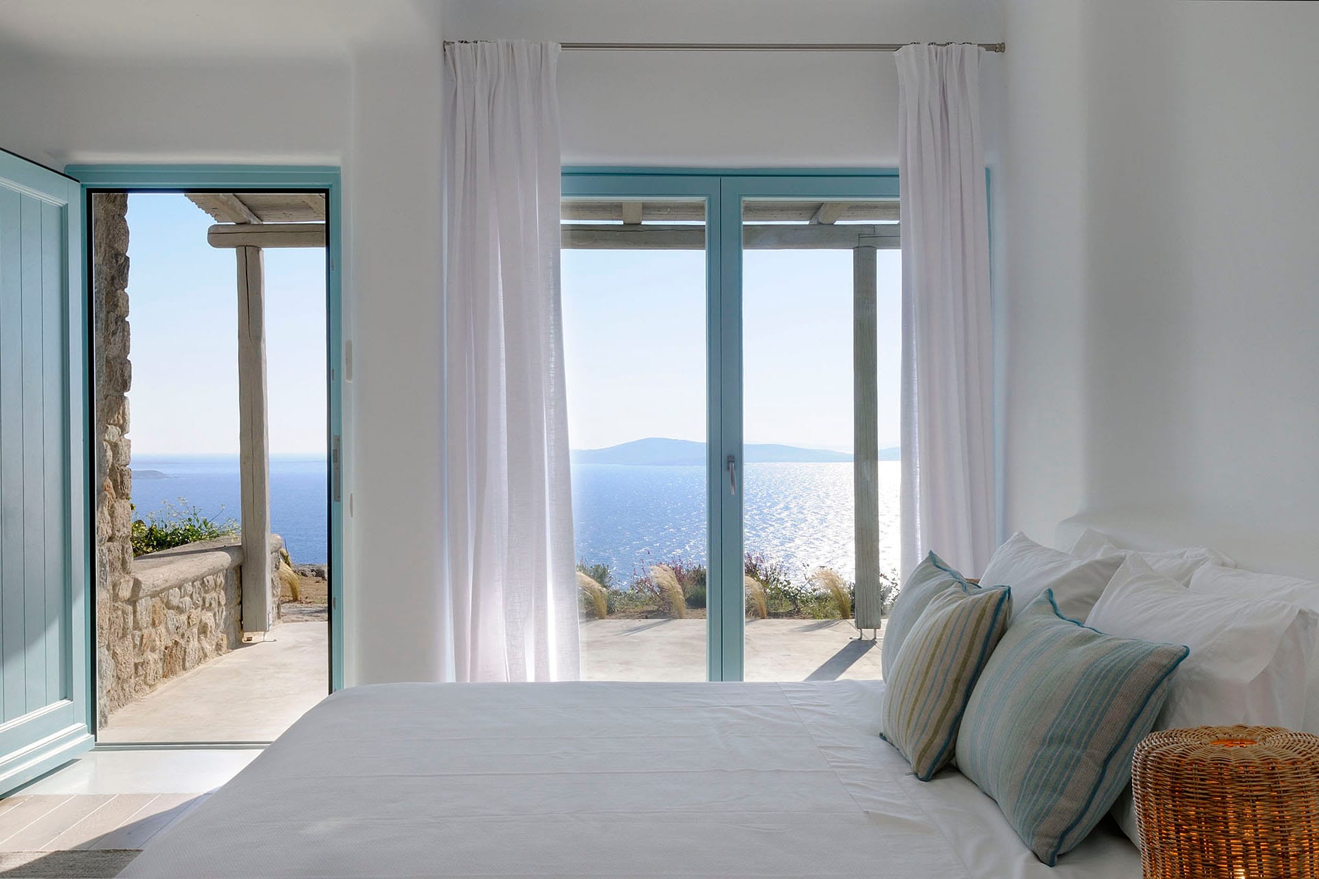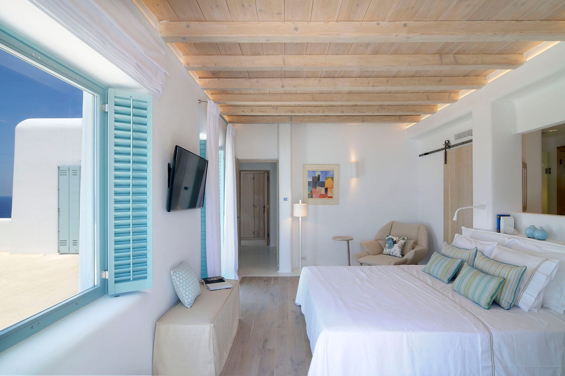 On a wind-sheltered slope in southwest Mykonos, Mastiha is a Signature Portfolio villa that brings two neighboring properties together for a calm retreat. Sixteen ensuite bedrooms host up to 32, with airy interiors that slide to sea-facing terraces. Outside, two infinity pools run to the view, pergola dining and charcoal BBQs set unhurried meals, and there’s room to gather or peel off in quiet corners. Indoors, modern lines and natural materials keep the mood easy. Ornos, Nammos, and Mykonos Town sit a short drive away.