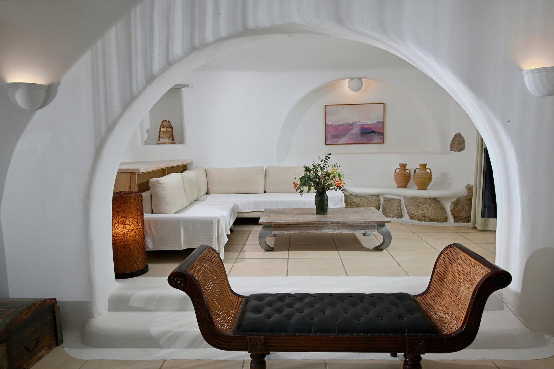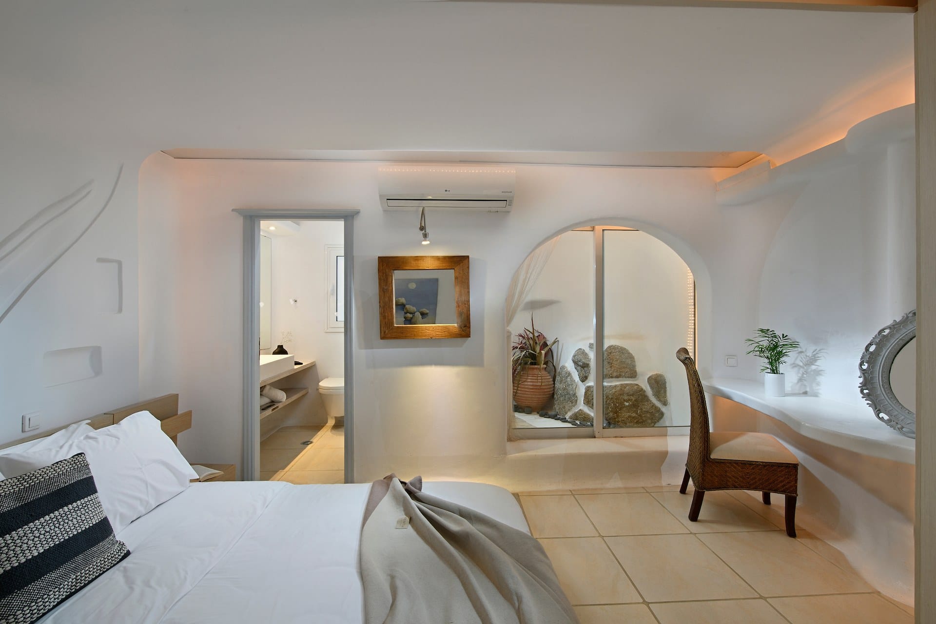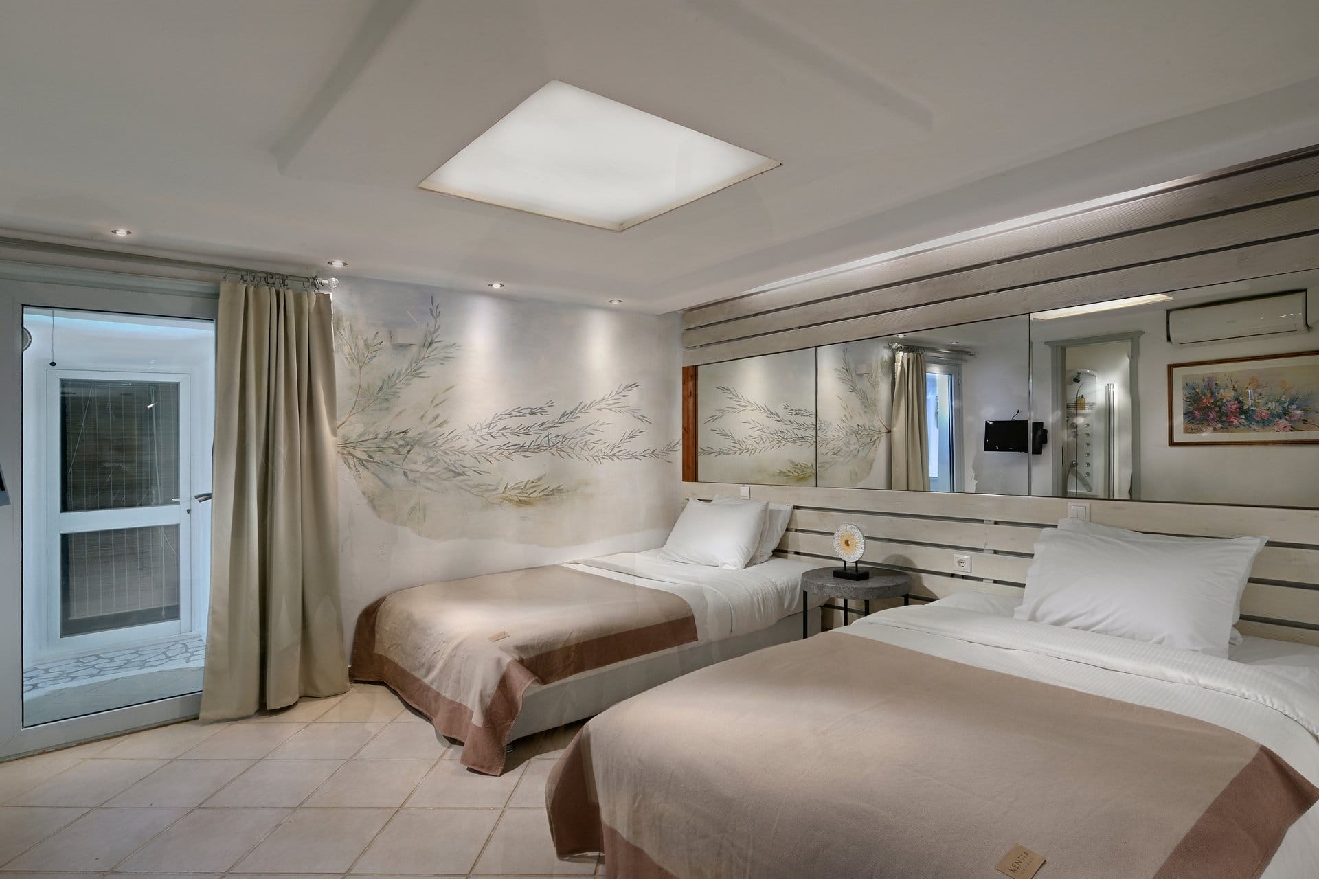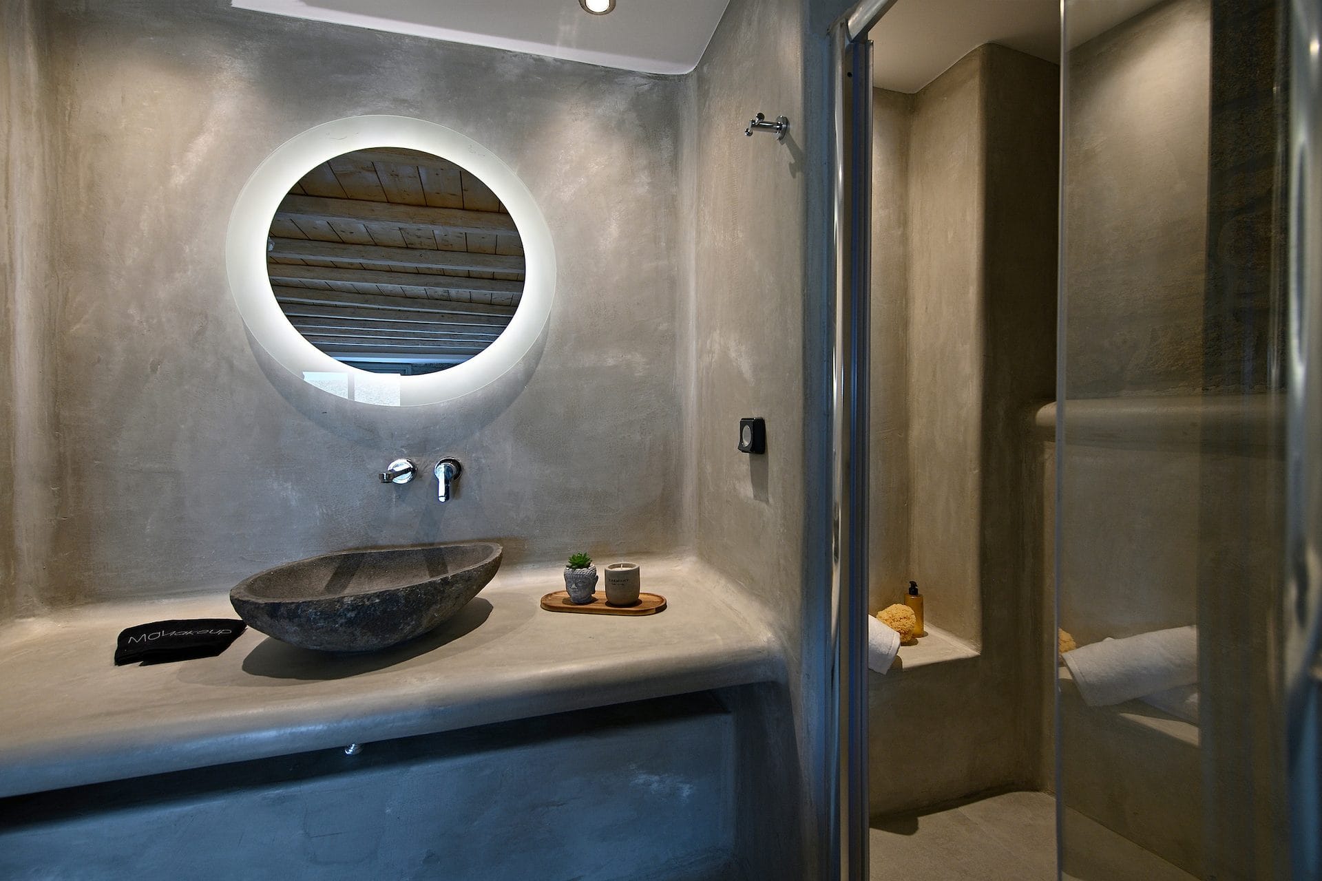 Rubith is a cliffside retreat in Paraga that feels like it grew out of the landscape itself. Two villas share sweeping sea views, sculpted terraces, and private infinity pools where you can float above the Aegean. Inside, light-filled open spaces combine rustic wood, natural textures, and sea-inspired artwork for a warm, coastal vibe. With 13 luxurious bedrooms and plenty of shaded outdoor areas, it’s a flexible option for big groups who want both quiet moments and easy access to Paradise and Paraga beaches.