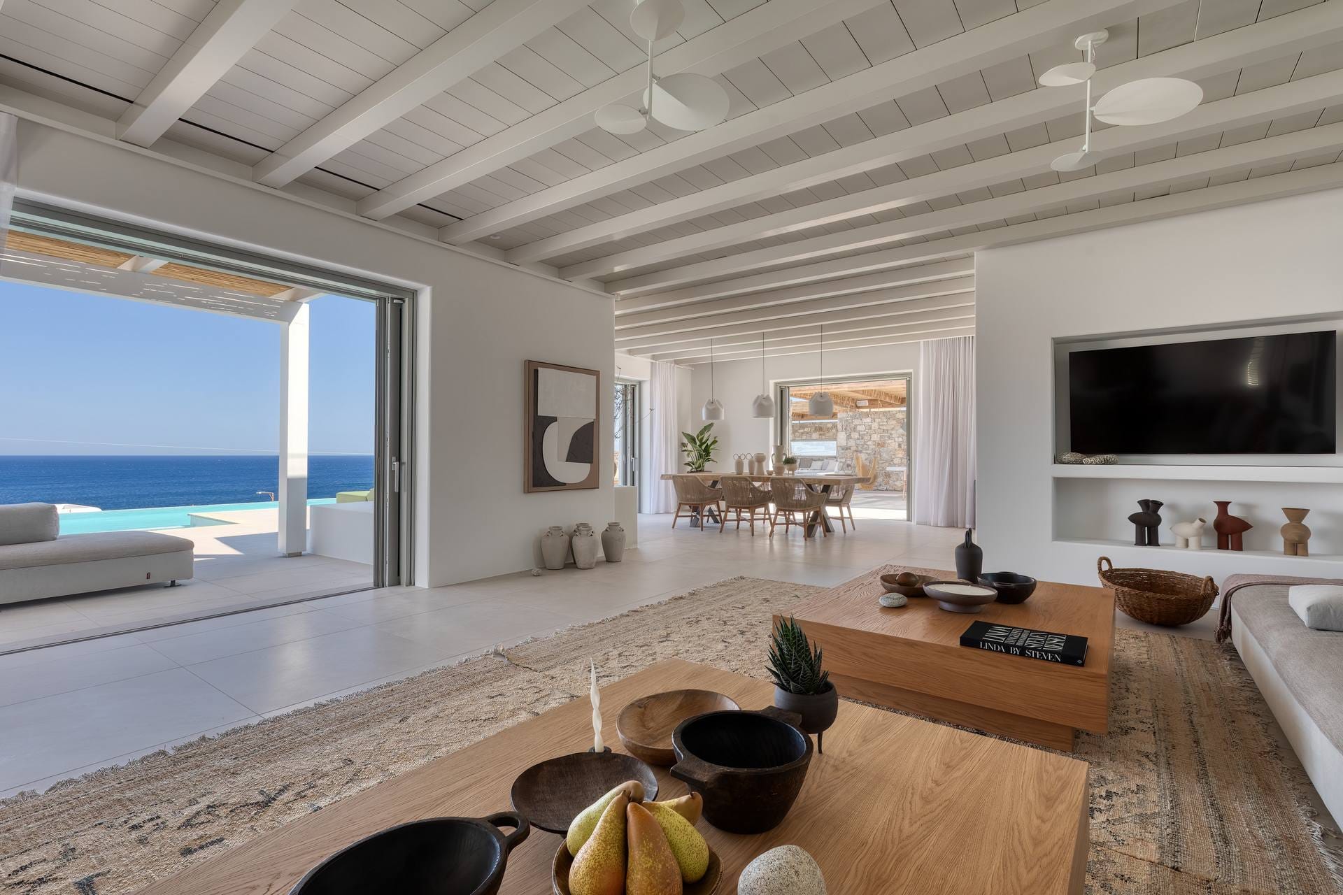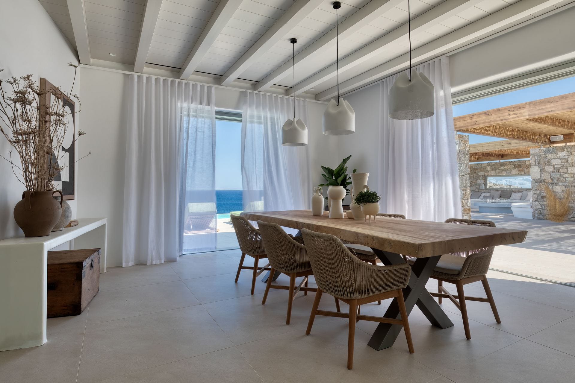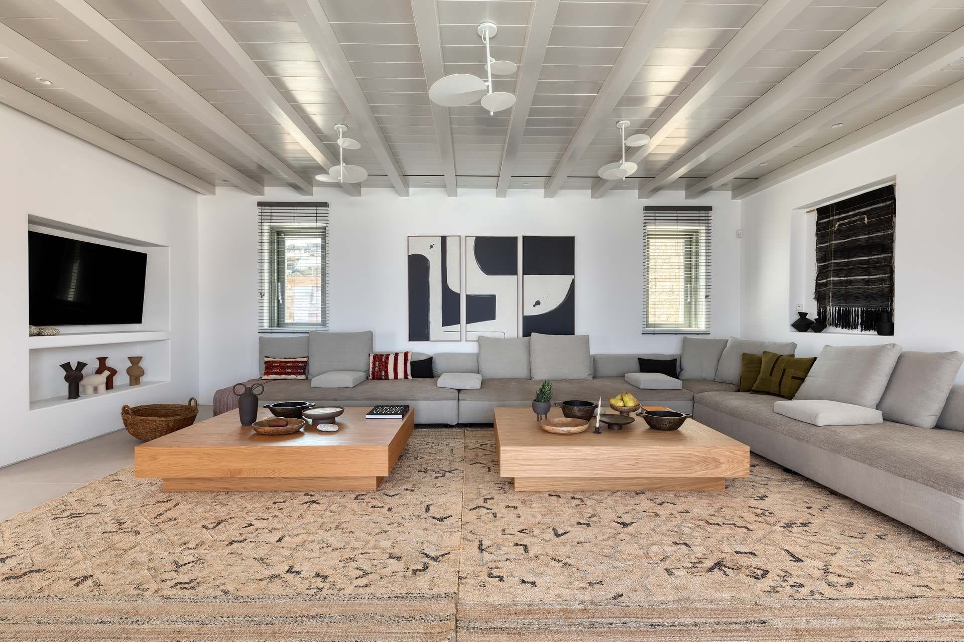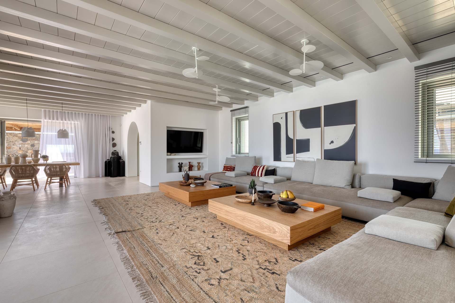 Tigerlily, a standout villa in our Signature Portfolio, welcomes twenty guests in ten king suites in Aleomandra. Outdoors, it features two pools, a 360-view rooftop patio with a fire pit, and access to a private dock for easy boat transfers. Indoors, you will find open living areas designed for comfort and flow, an elevator, a gym, and built-in music, elevating the experience. Secure and stylish, this haven stands within walking distance of Glyfadi Beach, inviting you to drift between villa and sea.