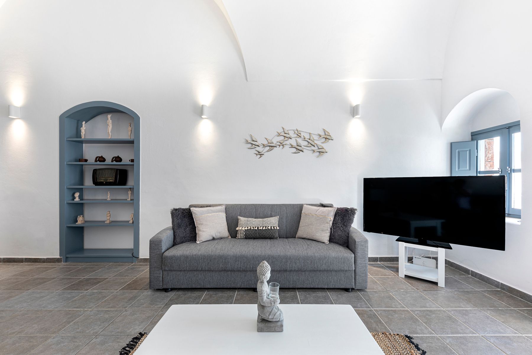 The patio is located on the front side of the villa and has a direct Caldera view. Guest may spend their time enjoying the view of the sea and the unique scenery.