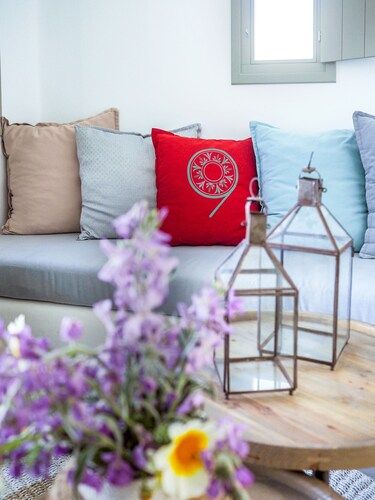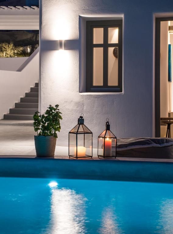 Gaze at the islands of Thirasia, Folegandros and Sikinos and experience a serene seclusion in the coziest, most romantic and comfortable suites (50sm). Relax in your large patio with the private plunge pool and comfy outdoor furniture. Enjoy the modern spaces with the stylish, Santorini inspired interiors which offer a colorful sitting and dining area, 2 flat screen TVs with satellite channels. And last but not least… dream in the ultra-romantic, pure white canava style bedroom with the distinctive Santorini architecture.