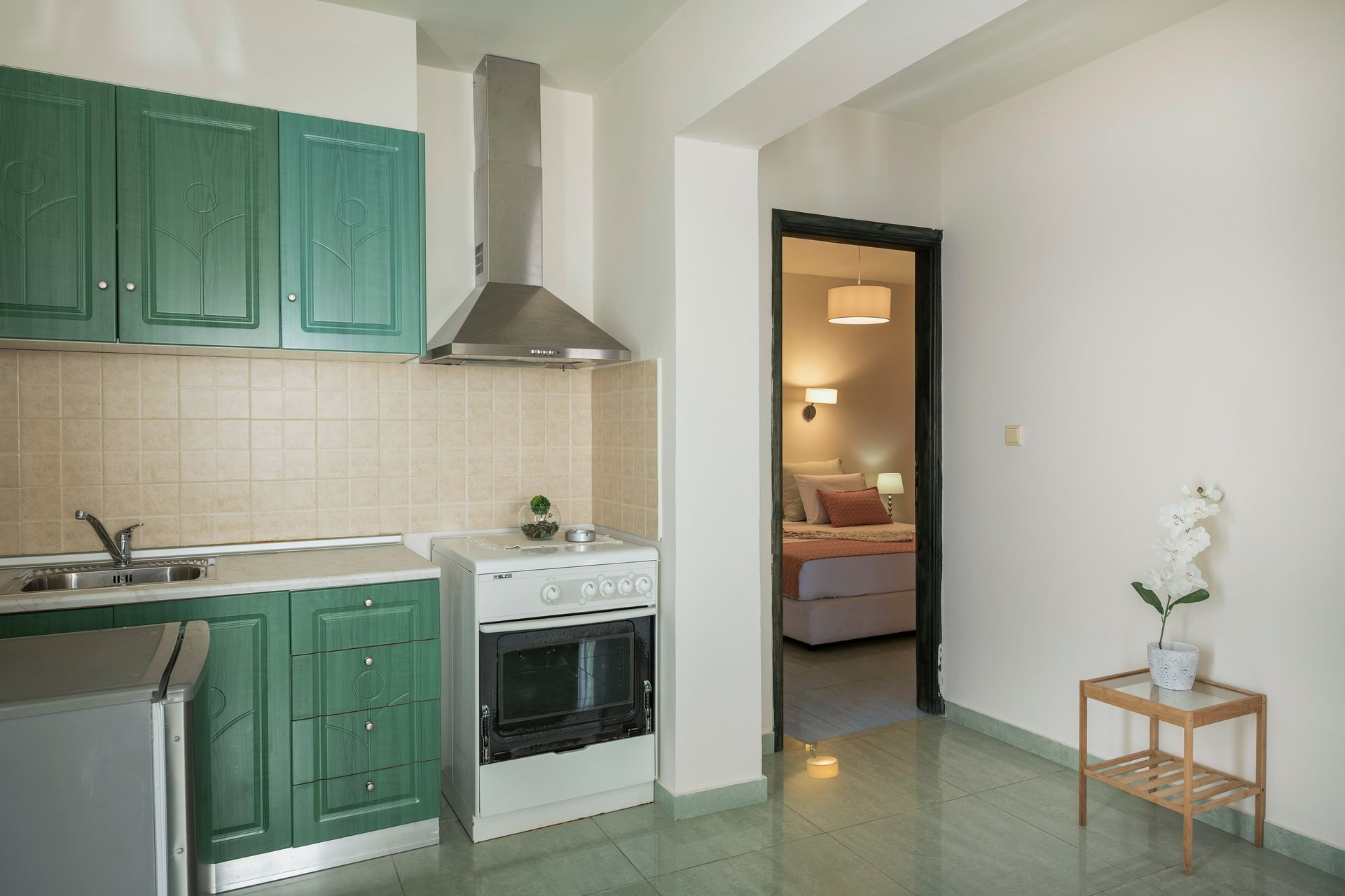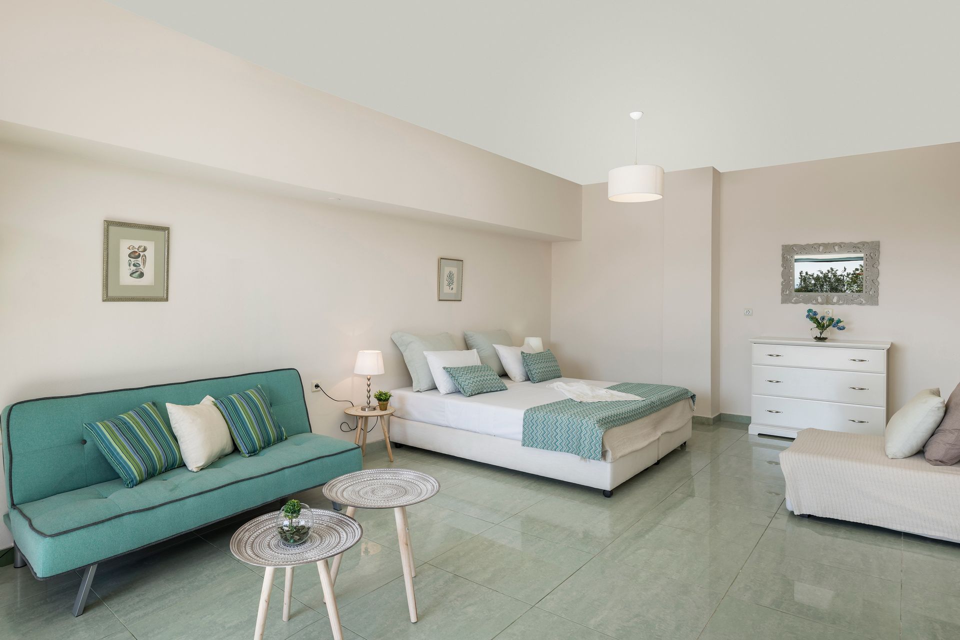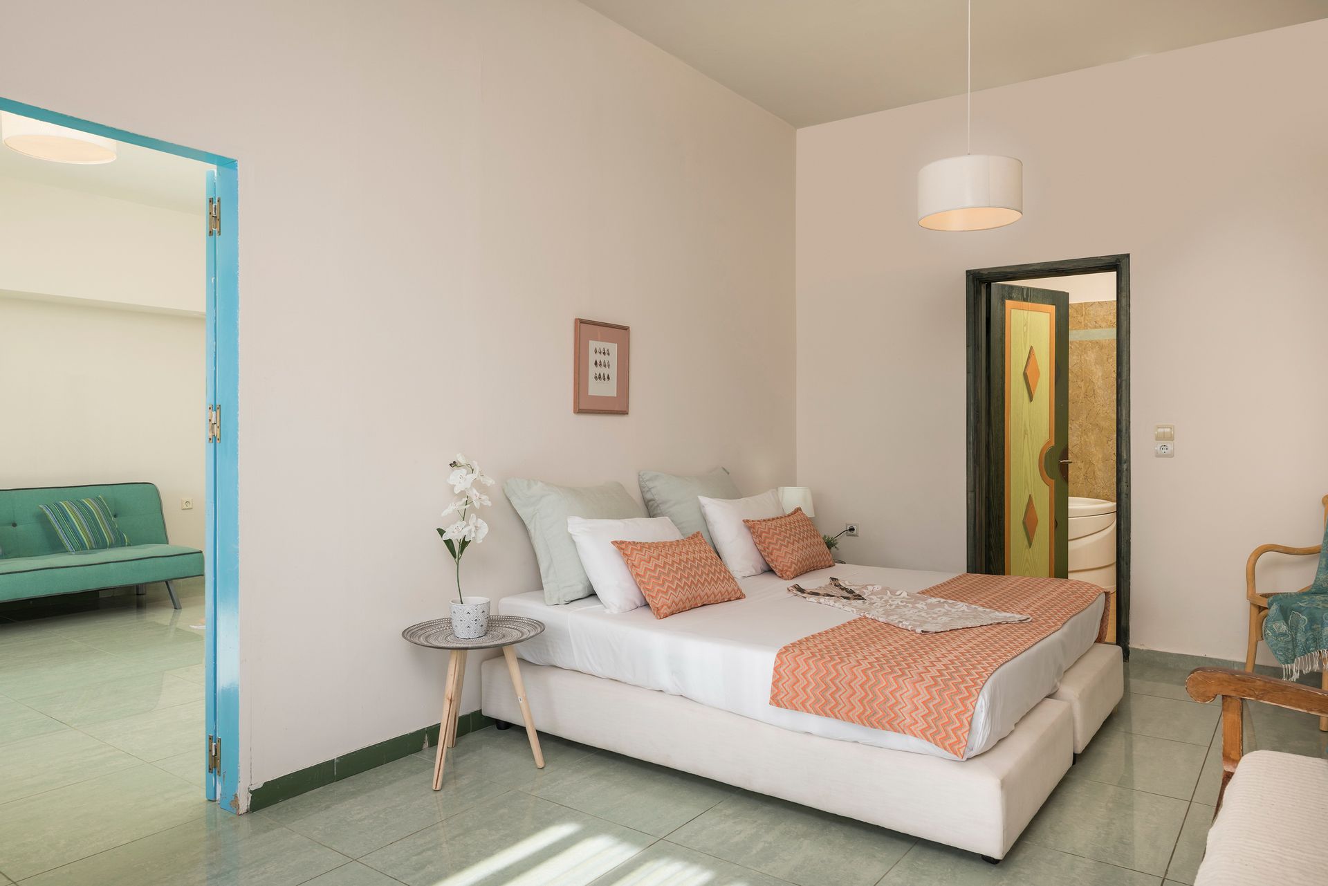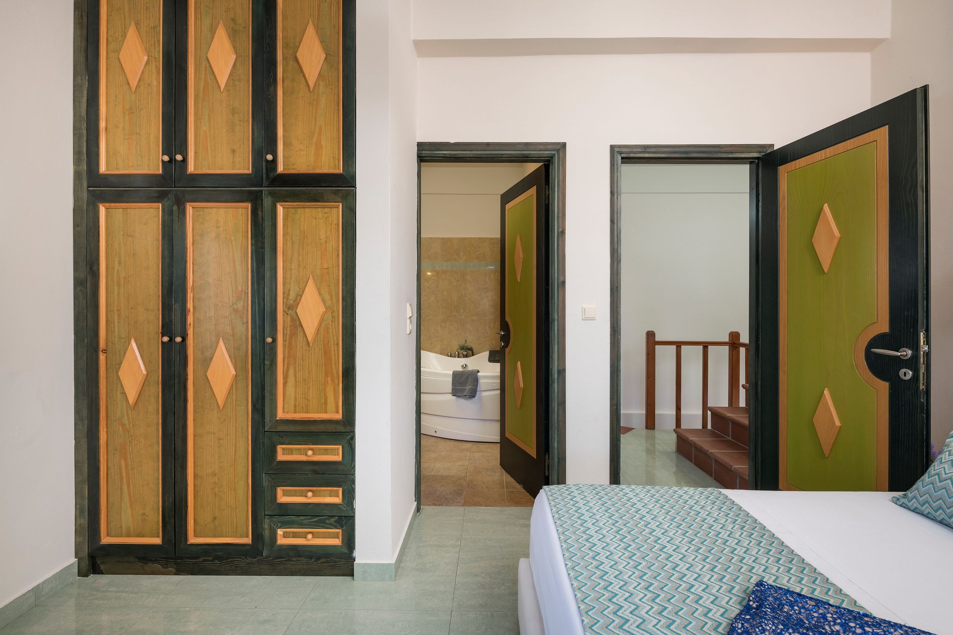 One separate suite/apartment with a twin bedroom and a bathtub is located on the pool level. In addition one double bedroom and one twin bedroom with a bathroom are located on the pool level.