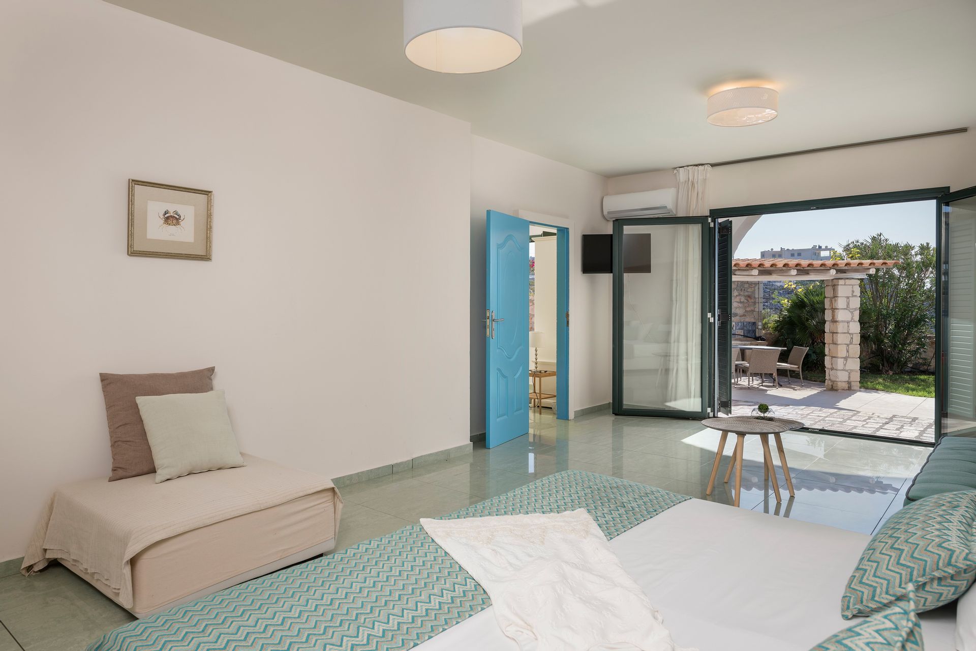 Villa is located 1200 meters away from the unique beach of Tersanas. In the area there are many taverns where you can enjoy the traditional Cretan cuisine.