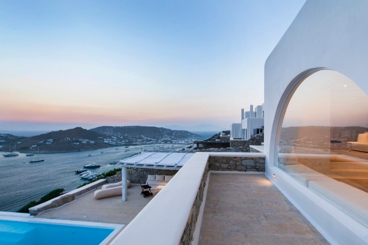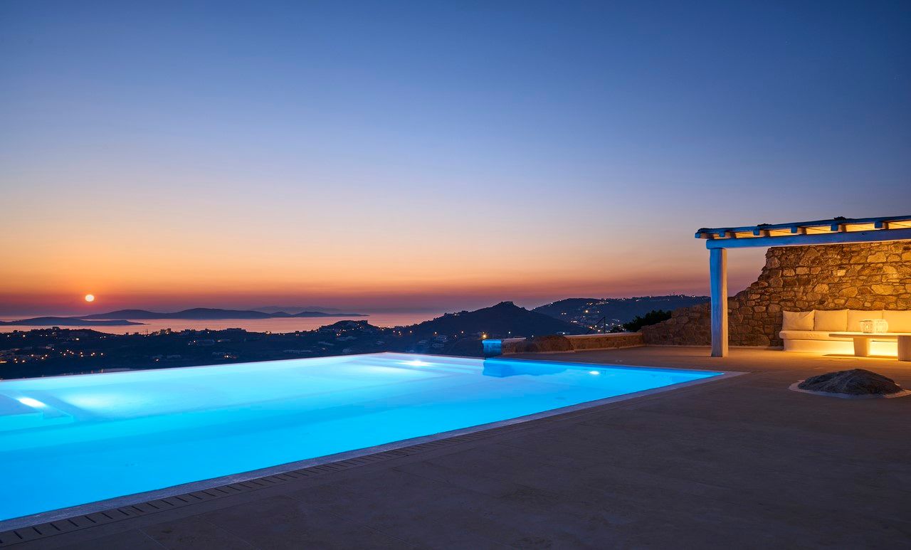 This exceptional residence enjoys one of the most magnificent views in Mykonos, over the gulf of Ornos, towards numerous islands, starting from Delos and Renia till the endless blue of the Aegean Sea. Just minutes from Psarou beach and less than 3 km from town center, Gaia is located on the unique spot of AgiosLazaros, overhanging at the very edge of the rocky shore. Built on two levels with spacious outdoor areas, infinity swimming pool with a teak deck and plenty of pillowed lounges, it offers total privacy and comfortable living, exactly as you have dreamed.