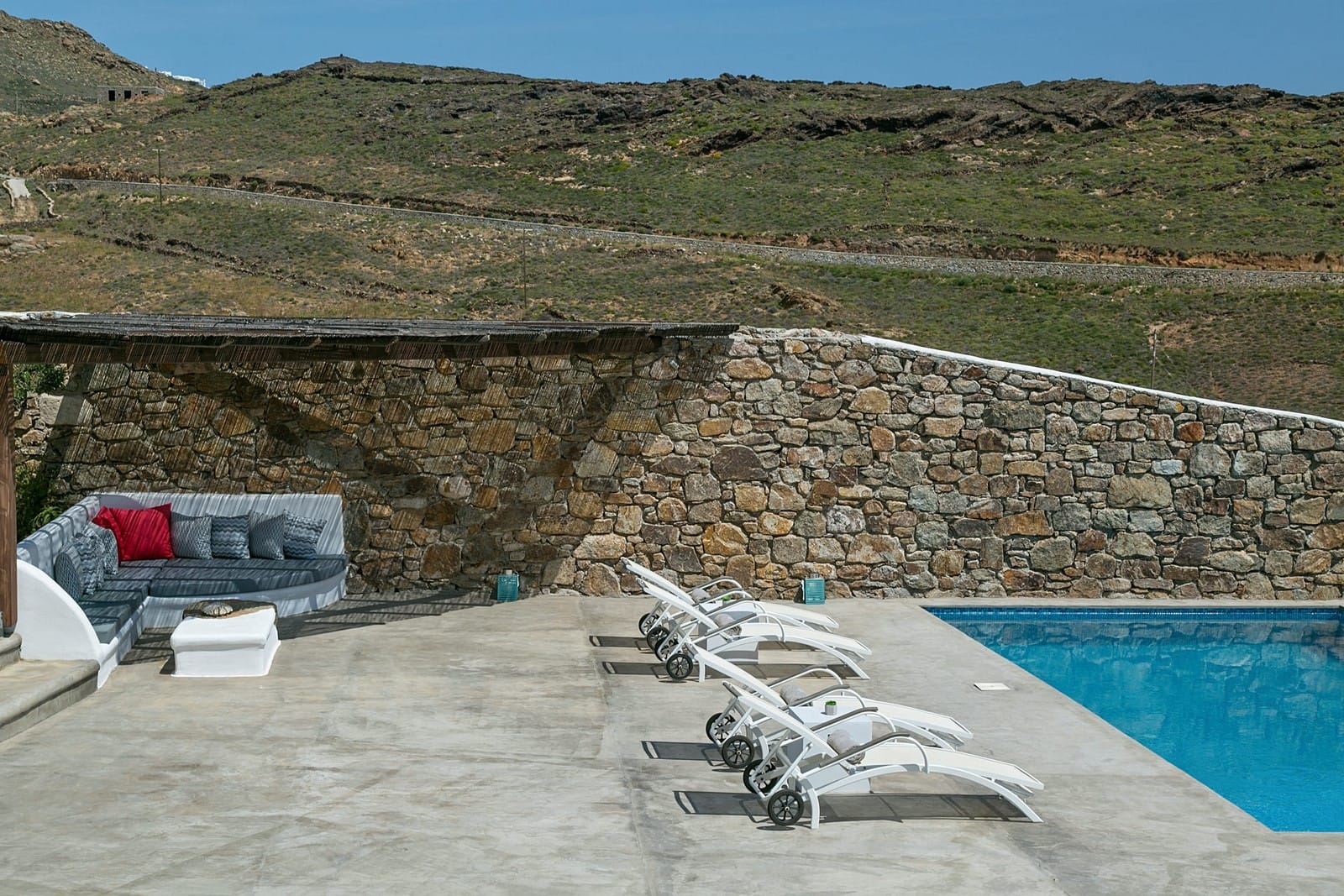 As part of a gated villa-community overlooking Panormos Bay, the property has been designed to integrate tailor made experiences and understated elegance with the leisurely island lifestyle and vibrant nightlife that has made Mykonos a world class destination. The interior and exterior living spaces have been constructed of the highest quality materials and are decorated with comfortable, stylish furnishings and carefully selected artwork that enhance the overall ambiance of this beautiful setting.