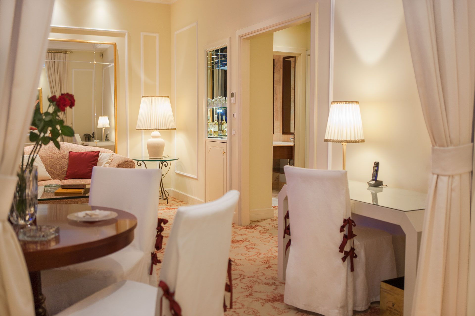 Each of our Queen Suites has been impeccably designed to suit every guest’s needs and desires. Embodying the art of “living in style” and featuring breathtaking sea views, our Queen Suites will live up to your highest expectations. Ranging from 51 to 74 m², each suite consists of an open-plan lounge, dining room, bedroom with king-size or queen-size bed, full en-suite bathroom, and walk-in closet. The colours of the room theme might vary (Red - Yellow - Blue).