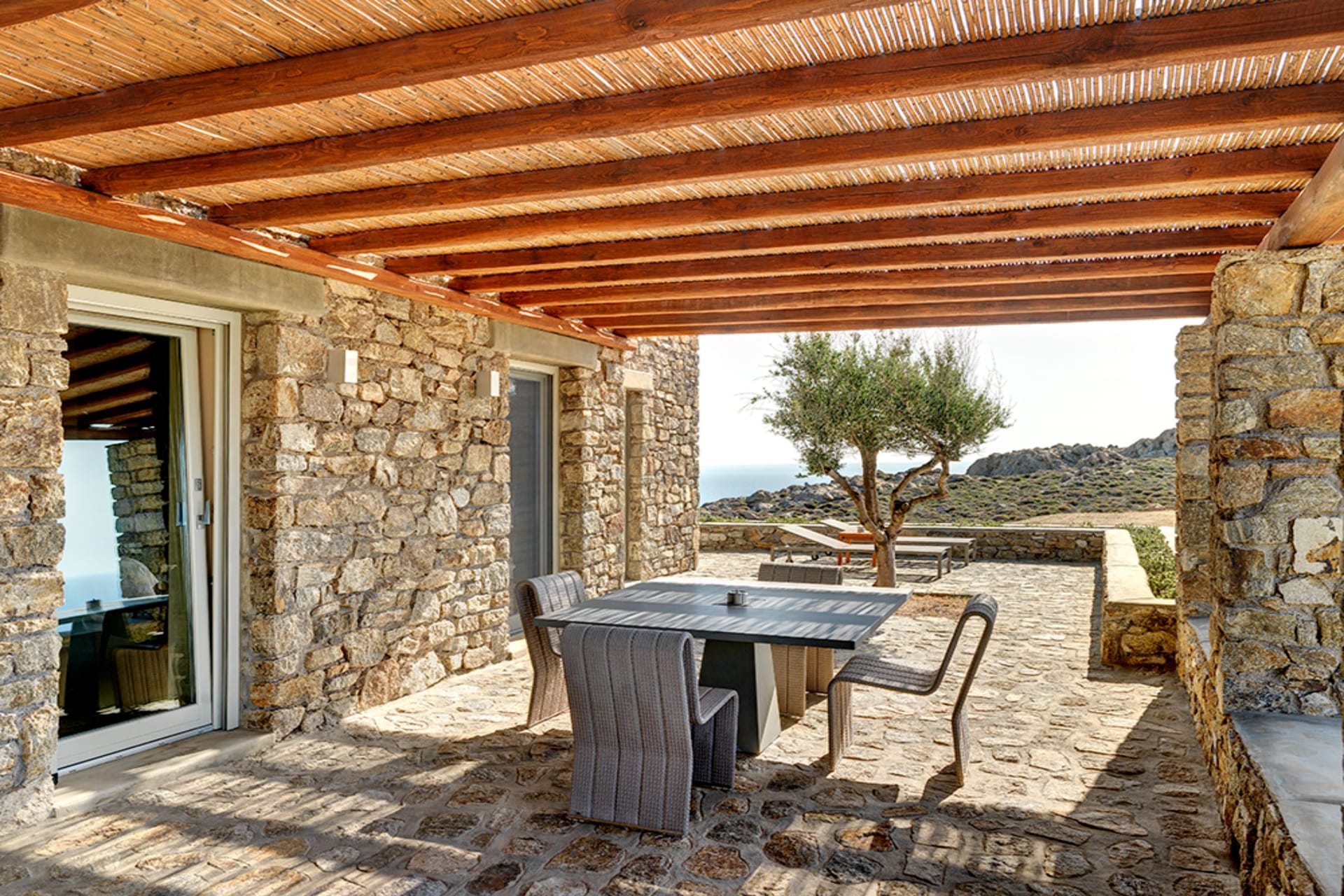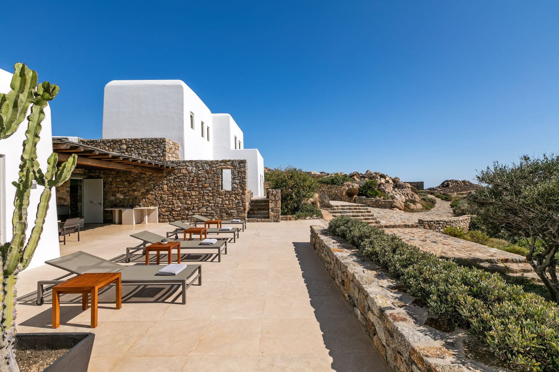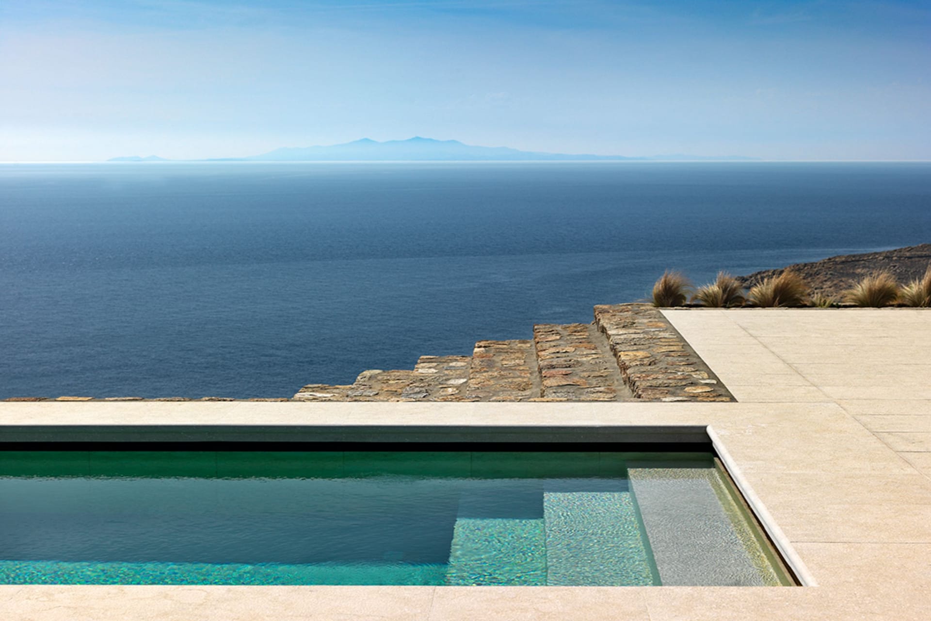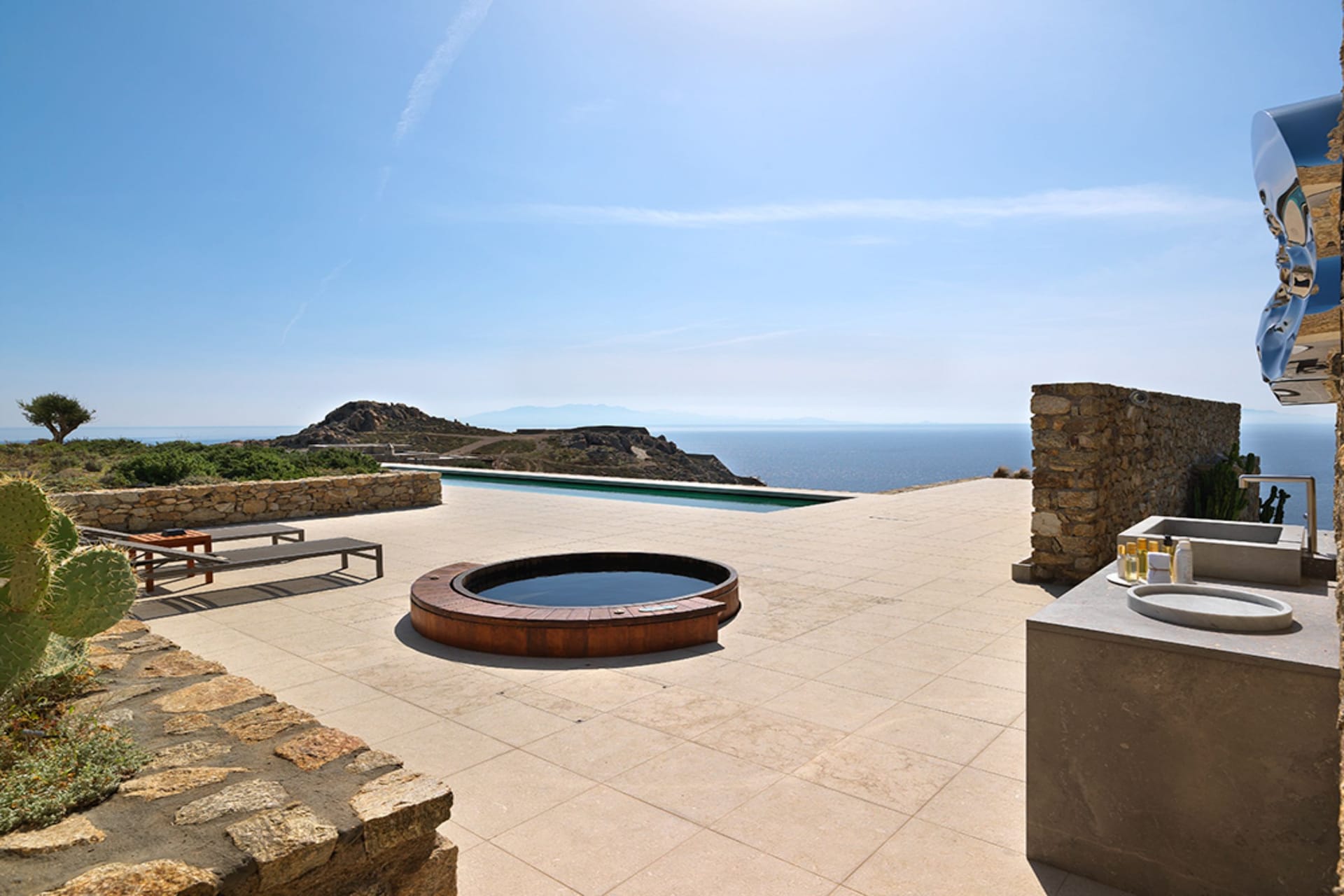 Villa Laomedeia is located in a rocky cape between Elia beach, Agrari beach and Super Paradise, offering spectacular views overlooking the Aegean Sea and the islands of Donousa, Naxos, Paros, Antiparos and Ios.