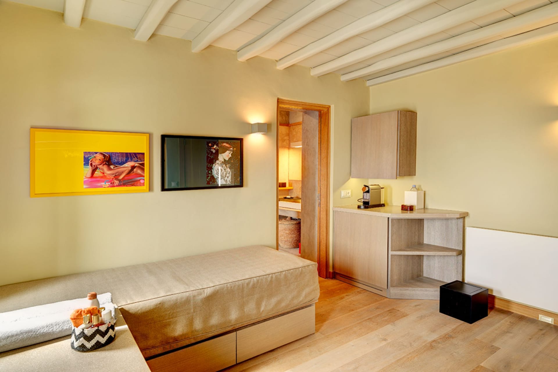 1 x Master Bedroom with an en suite bathroom, a dressing room, a lounge, a small kitchen and access to a terrace with a view