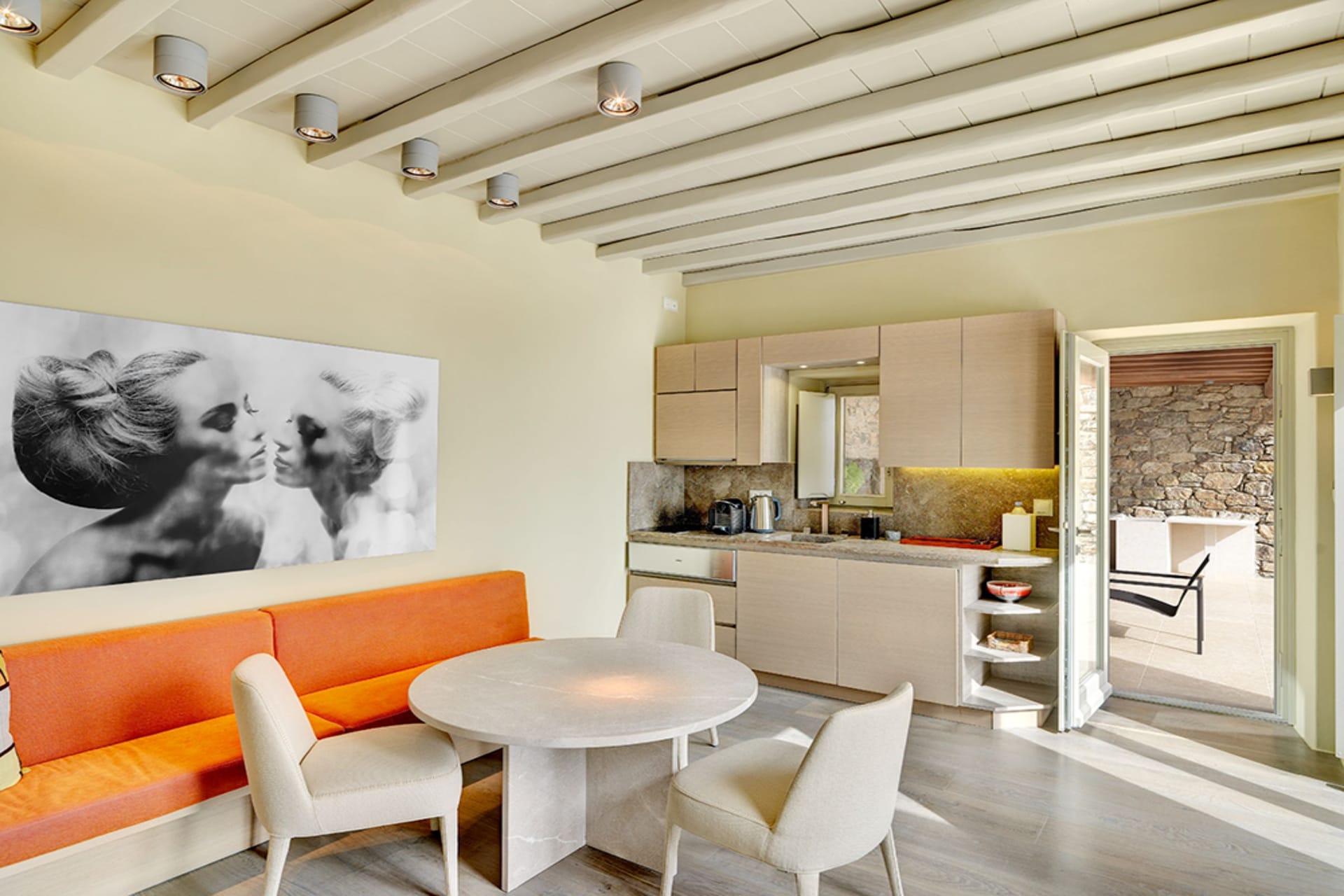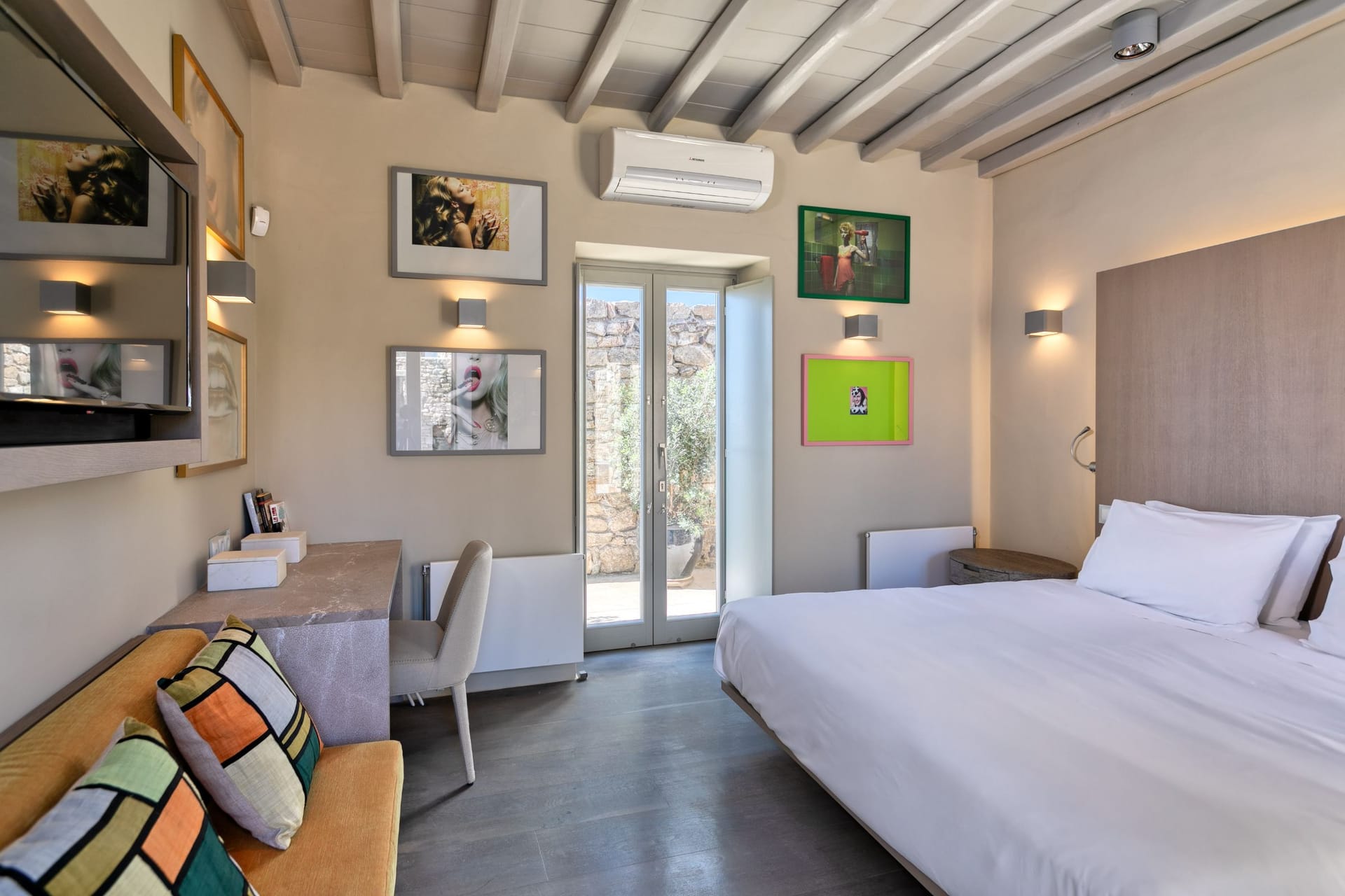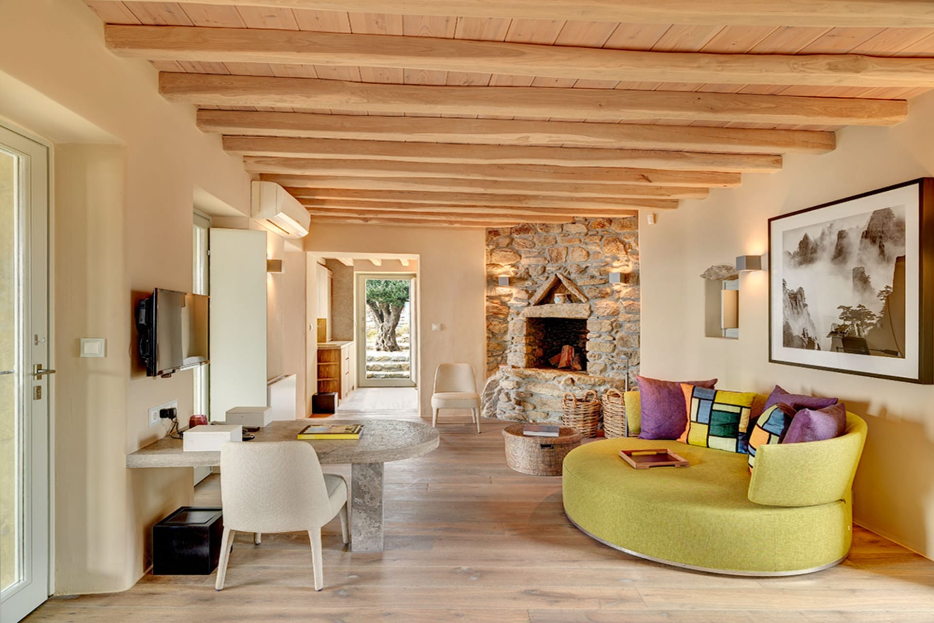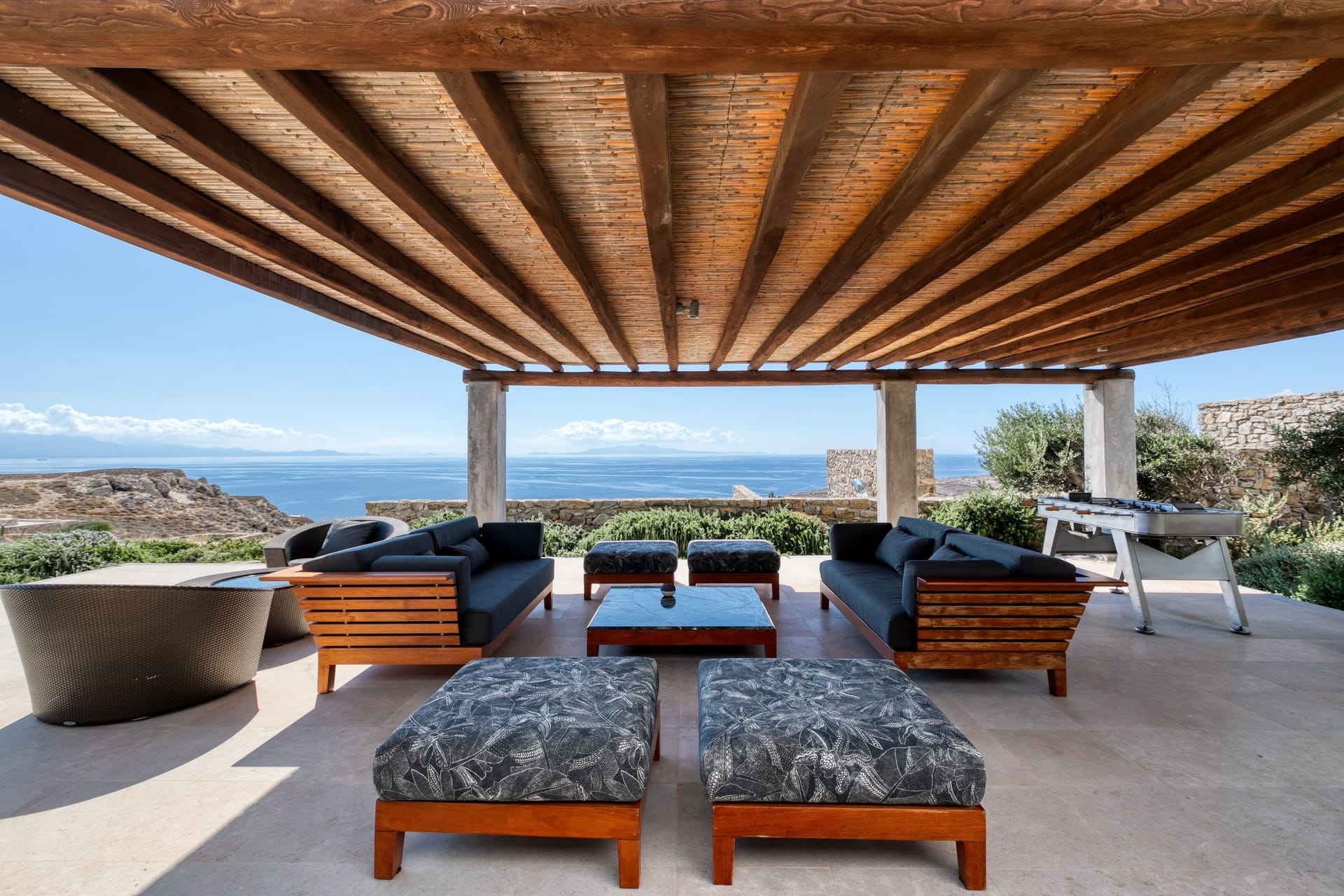 The estate can accommodate 14 guests. Built as a satellite, the property consists of a Central House called the Playhouse, a Master Suite known as the Keli, 3 more Suites and the Guest Rooms that are housed offering panoramic Aegean views and modern eclectic amenities.