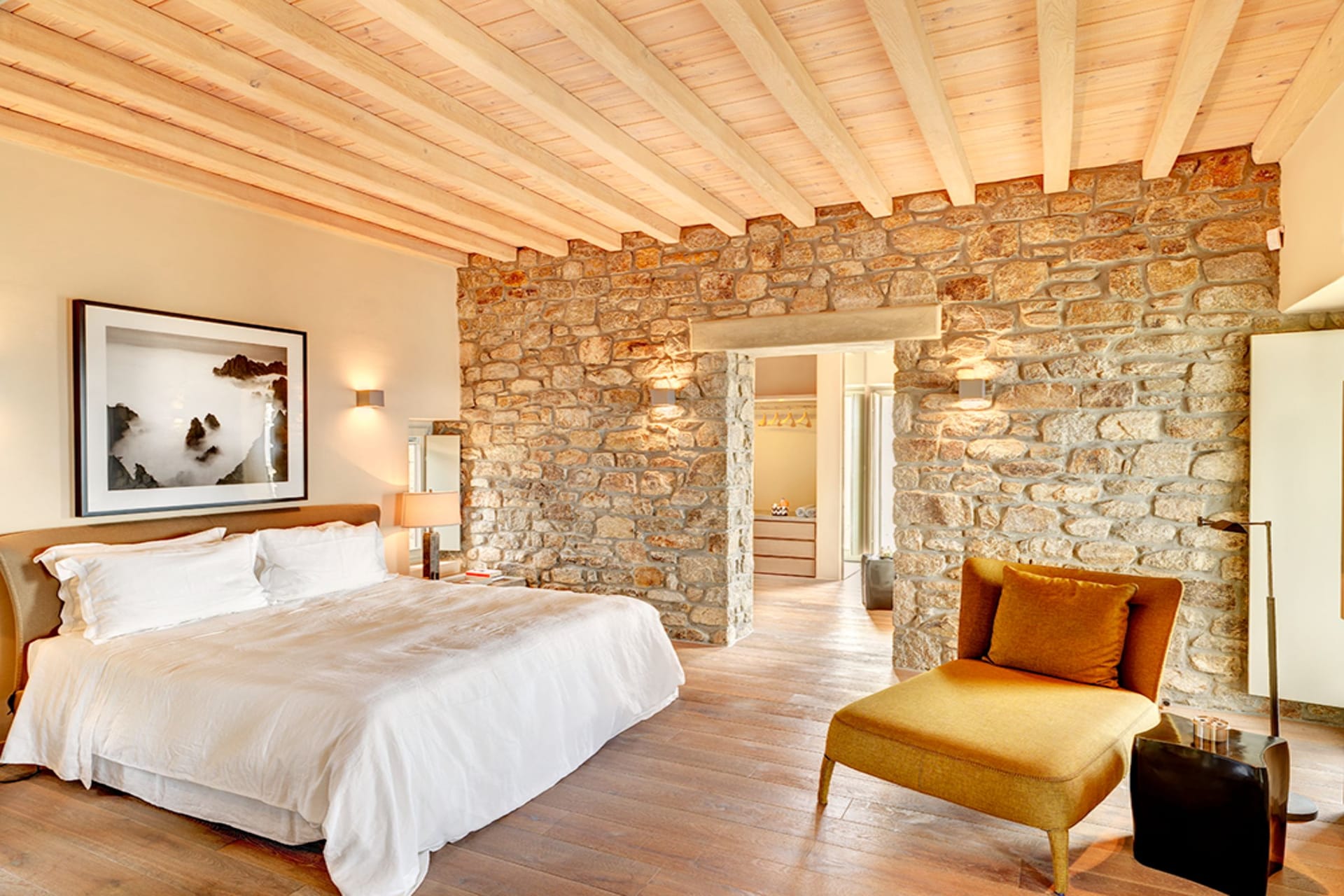 1 x Double Bedroom with a King size bed, an en suite bathroom, a dressing room and access to a terrace with a view