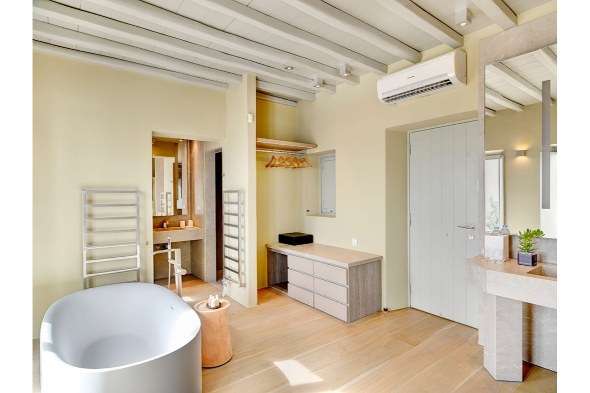1 x Double Bedroom with an en suite bathroom, a dressing room and access to a terrace with a view