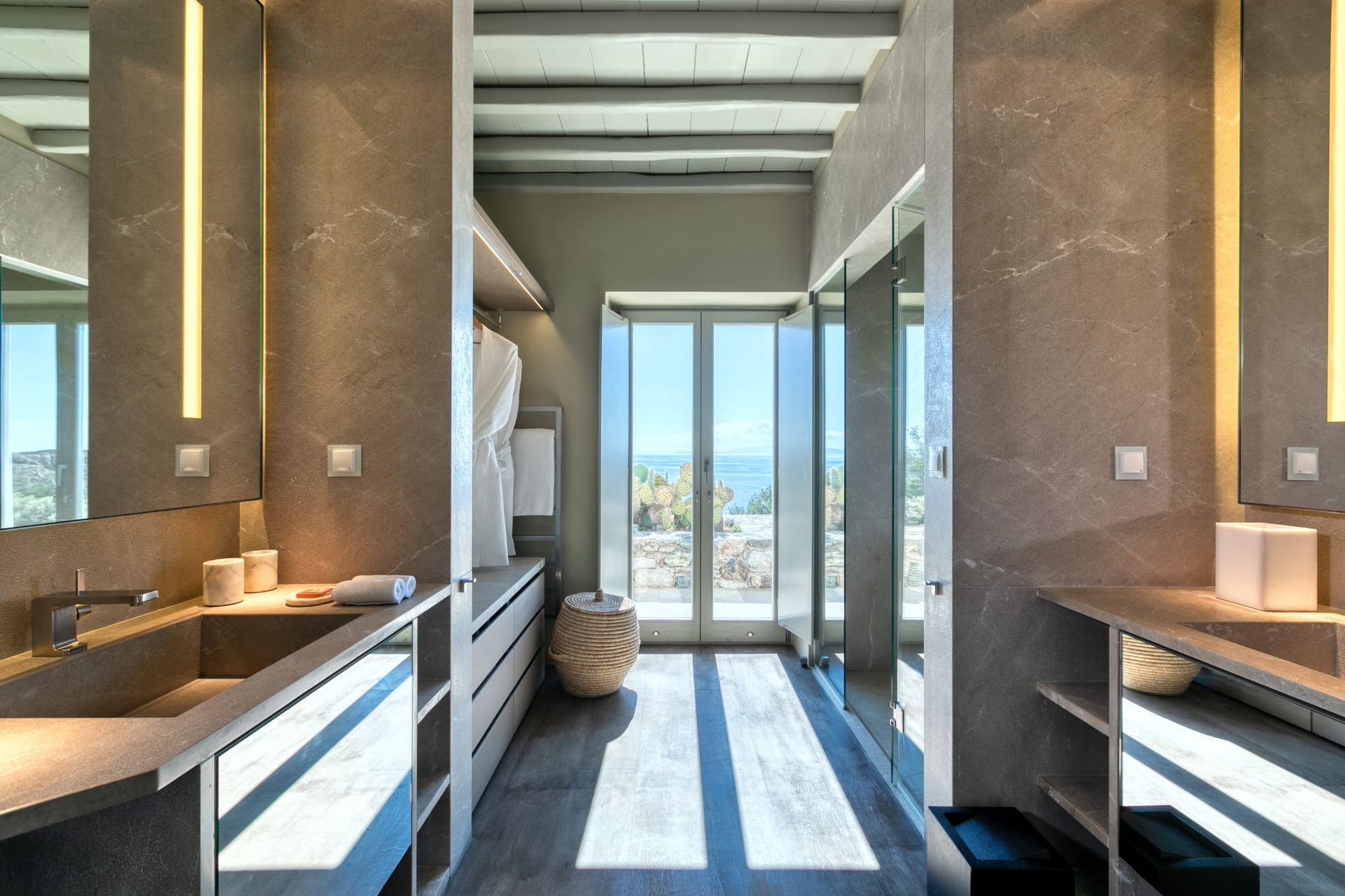 2 x Double Bedrooms with King size beds, en suite bathrooms, a dressing room and access to the outdoor area