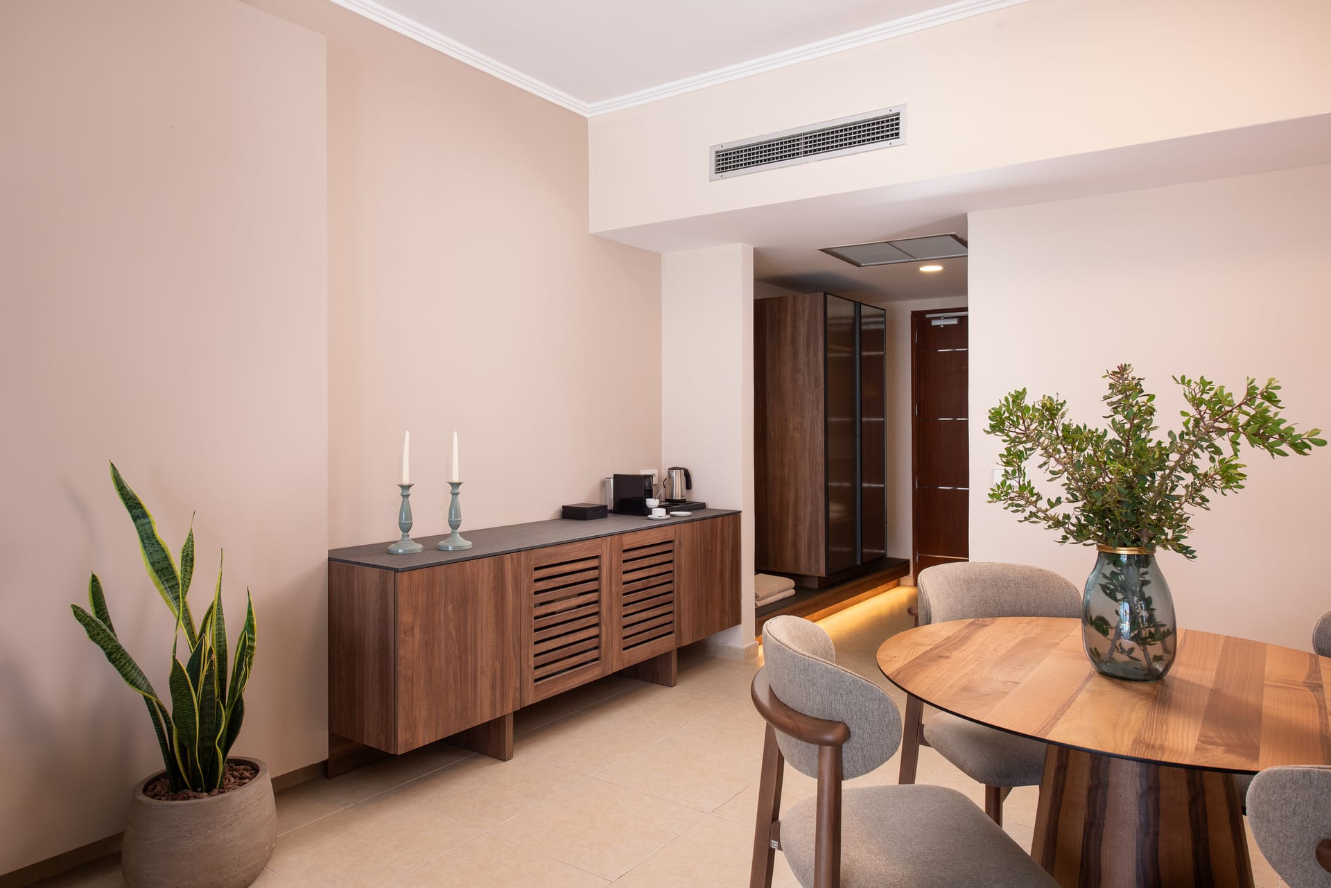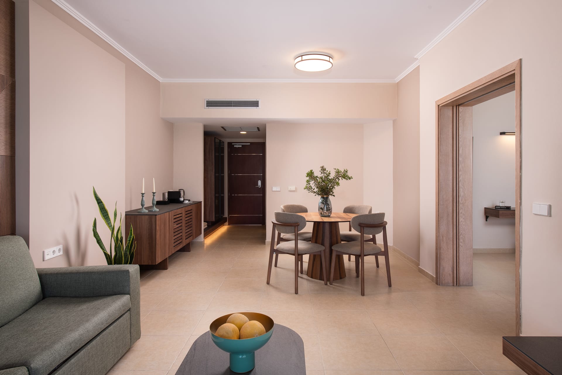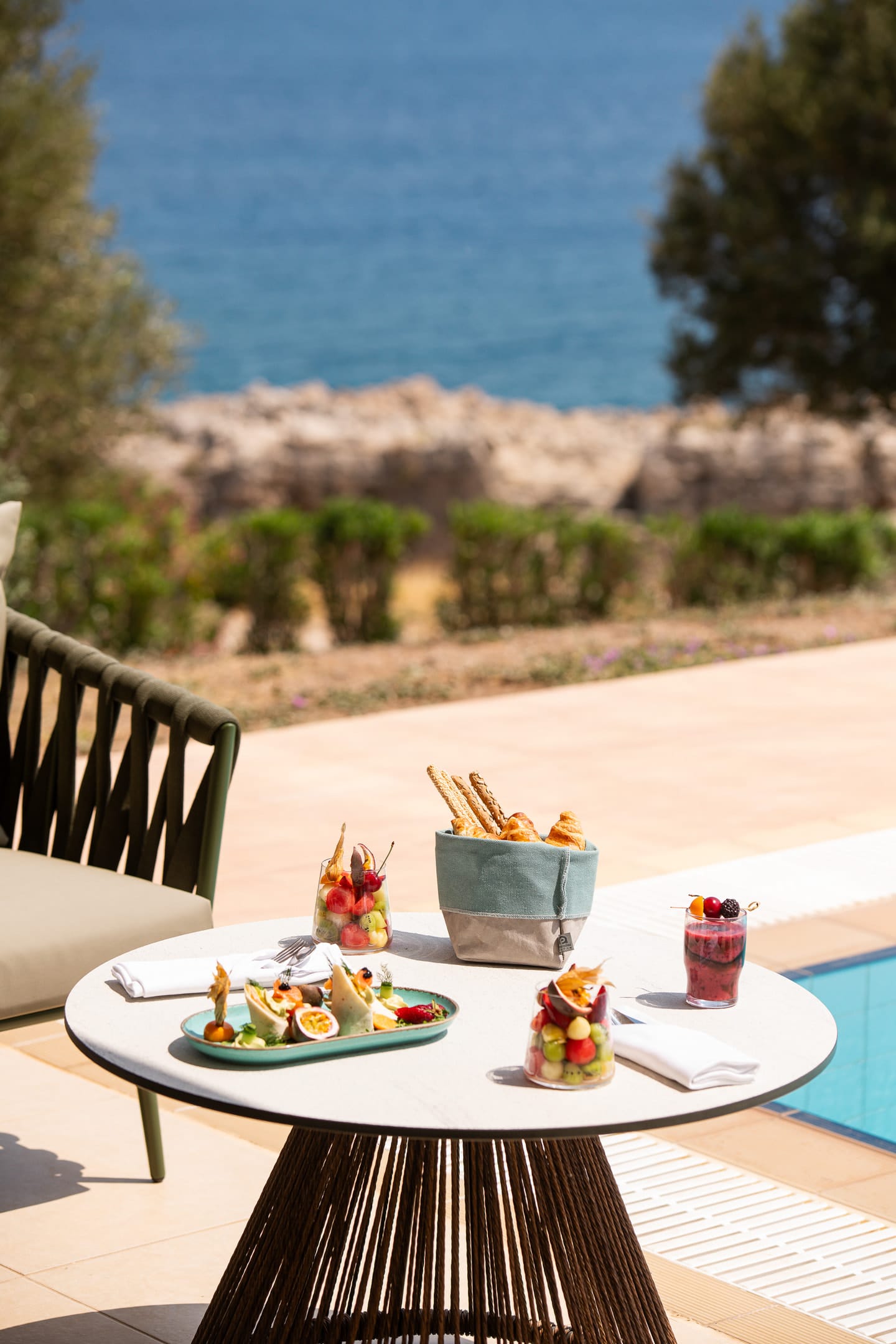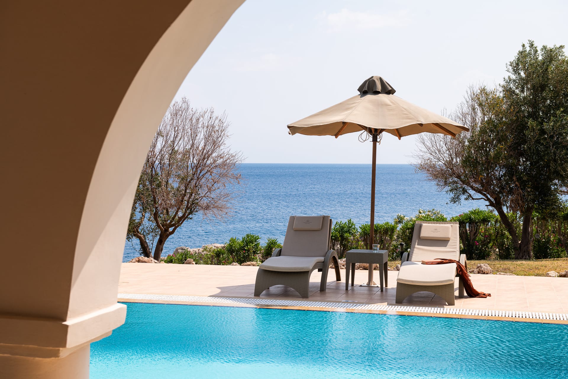 Step into the luxury and privacy and make your stay unforgettable with the charmingly and elegantly designed Suites with sea view and private pool and feel the Rhodian hospitality to the fullest. Suites with sea view 70 m2 and private pool (5m. X 6m.) offer to guests a very unforgettable experience with the combination of relaxation and luxury. All Suites with sea view feature one well designed bedroom (king size bed) with private marble lined Luxury bathroom (with "rain style" shower) along with all bath amenities which gets separated with a sliding door from the modern open plan bedroom and sitting area with sofa, dining table, writing desk and an LED screen 55" as well as a 2nd bathroom with a "rain style" shower cabin. Relax at the full furnished privacy terrace 15 m2 with outdoor lounge and wooden sunbeds and enjoy the mind blowing swim experience in a private pool from the very early until the sunrise, keeping those moments forever in your heart.