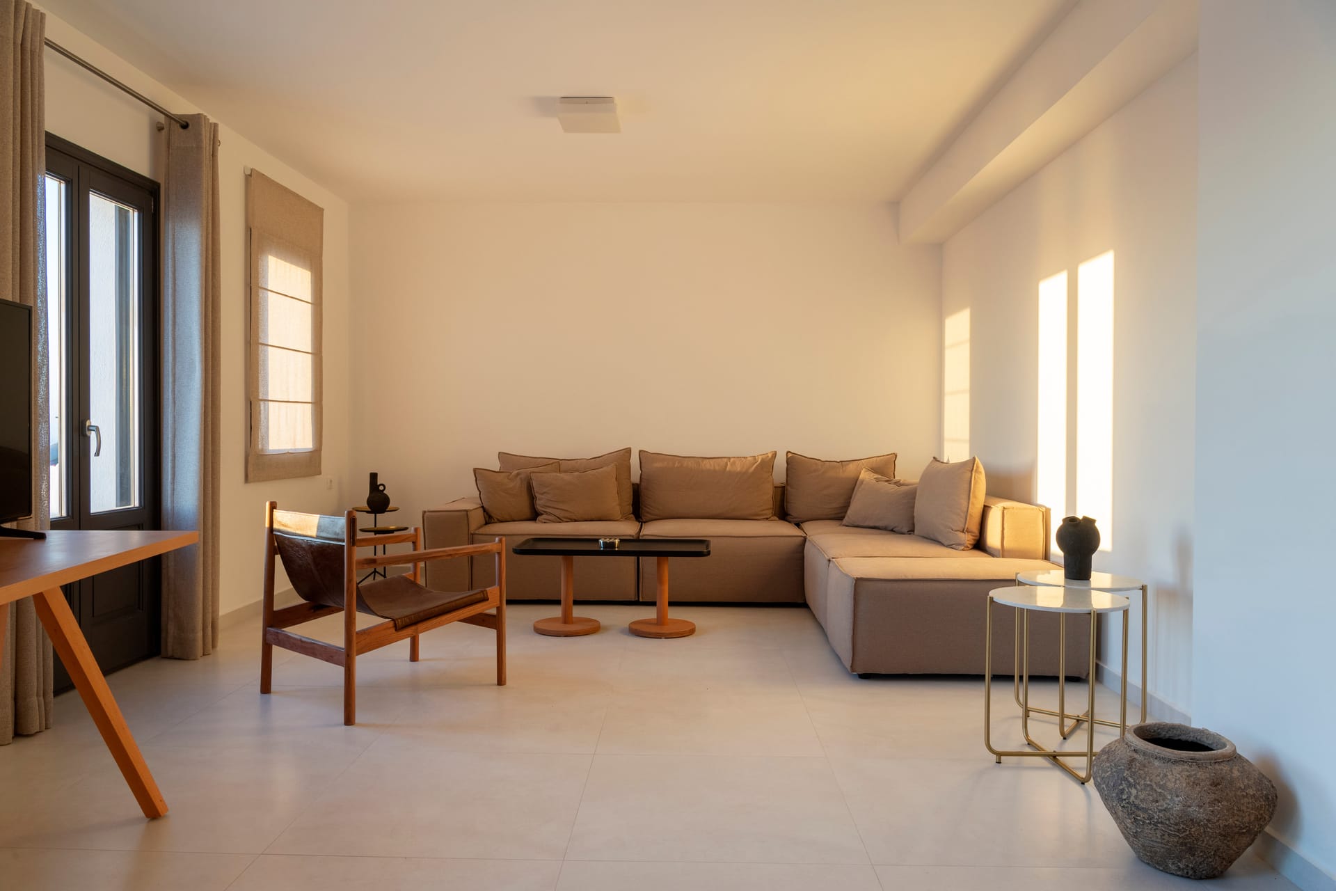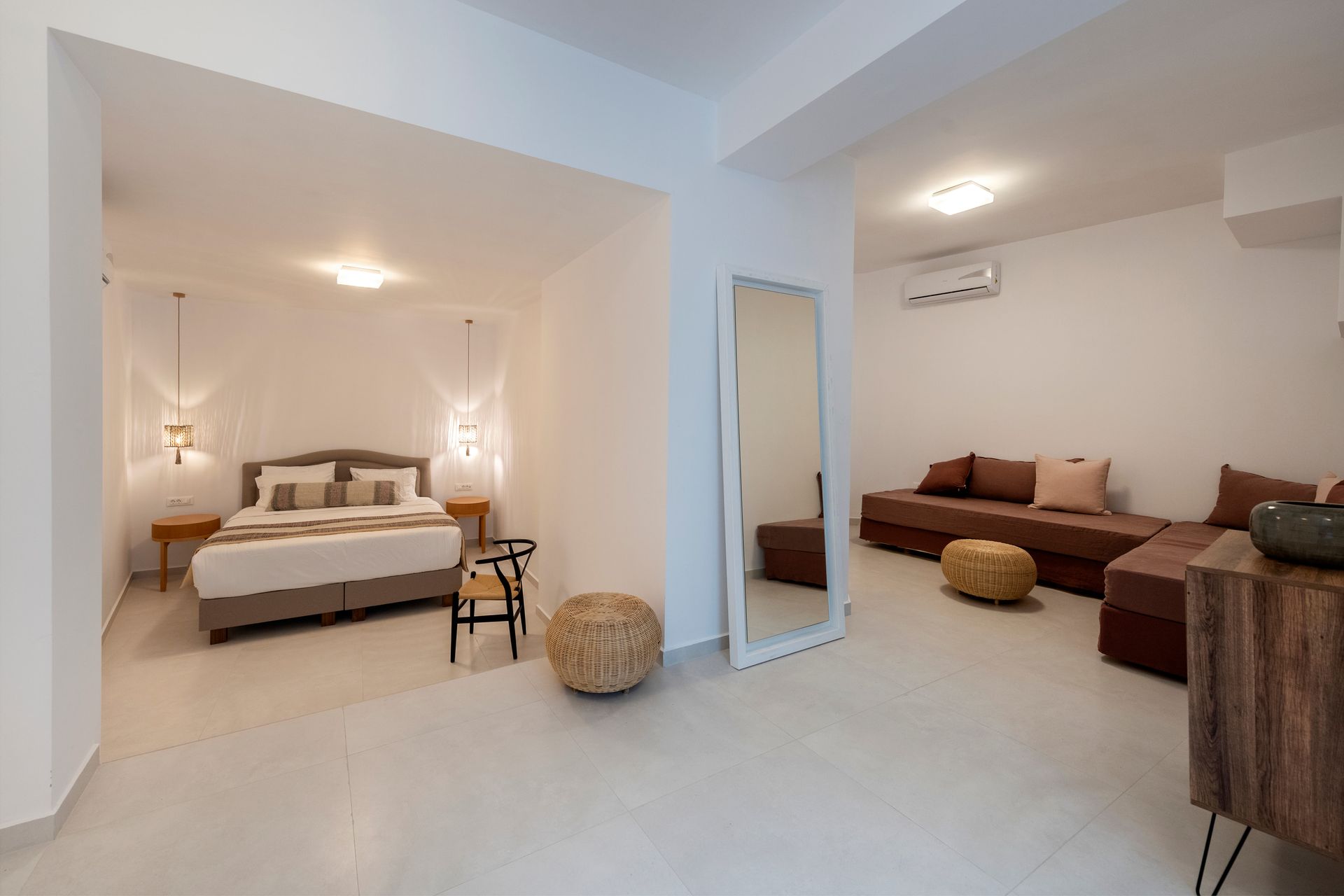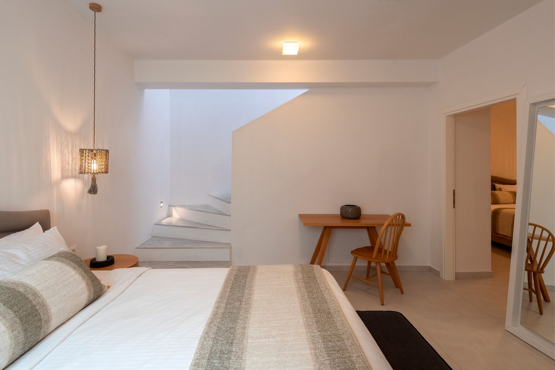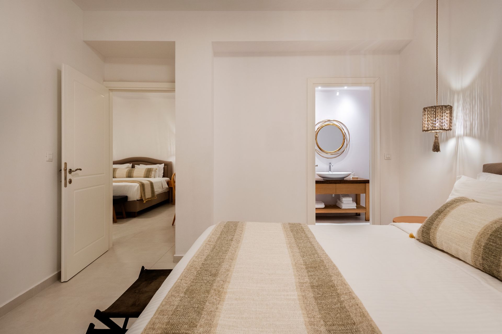 In a graciously appointed area of 360 square meters, the Residence offers 5 King Size bed and 1 sofa bed, 3 stylish living room and dining area, 4 bathrooms with shower and 3 WC, a private balcony for hours of serenity and calm and a private swimming pool for refreshing swims in view of the Aegean and the crimson painted sky.