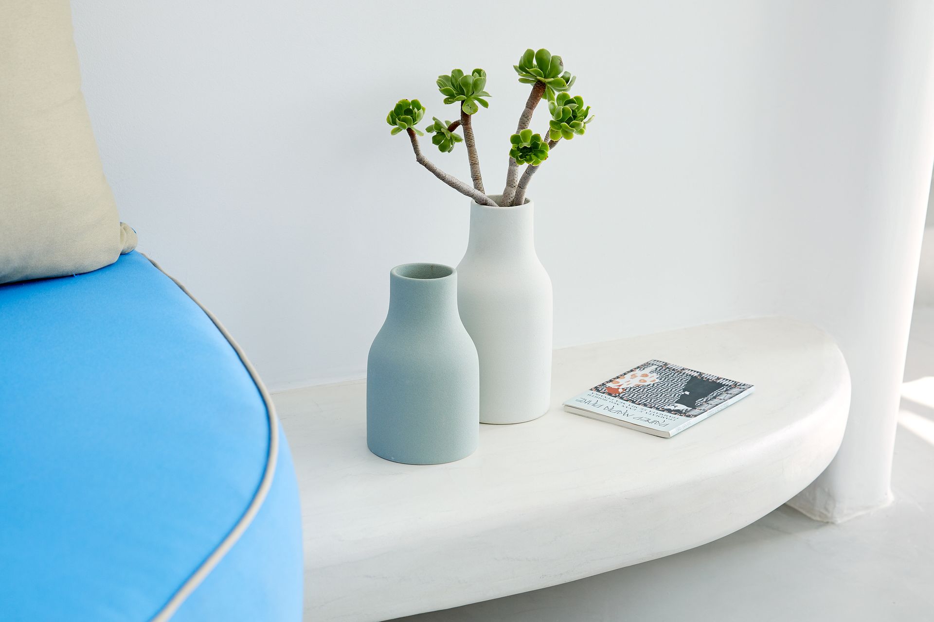 This Deluxe Suite is a new spacious room which features a second storey loft with a very large window, from which you can enjoy the breathtaking view of caldera and sea, even while lying on your bed.