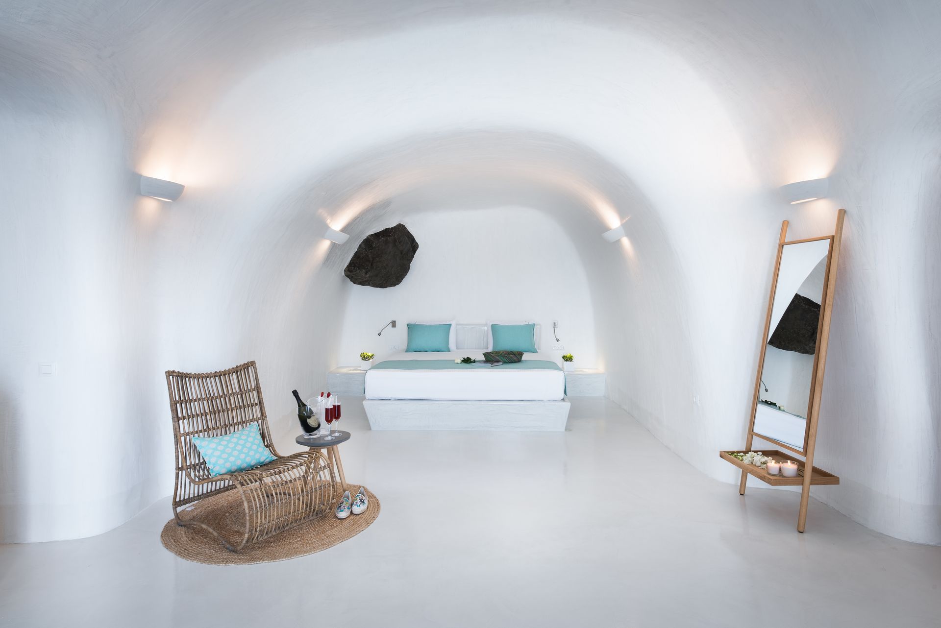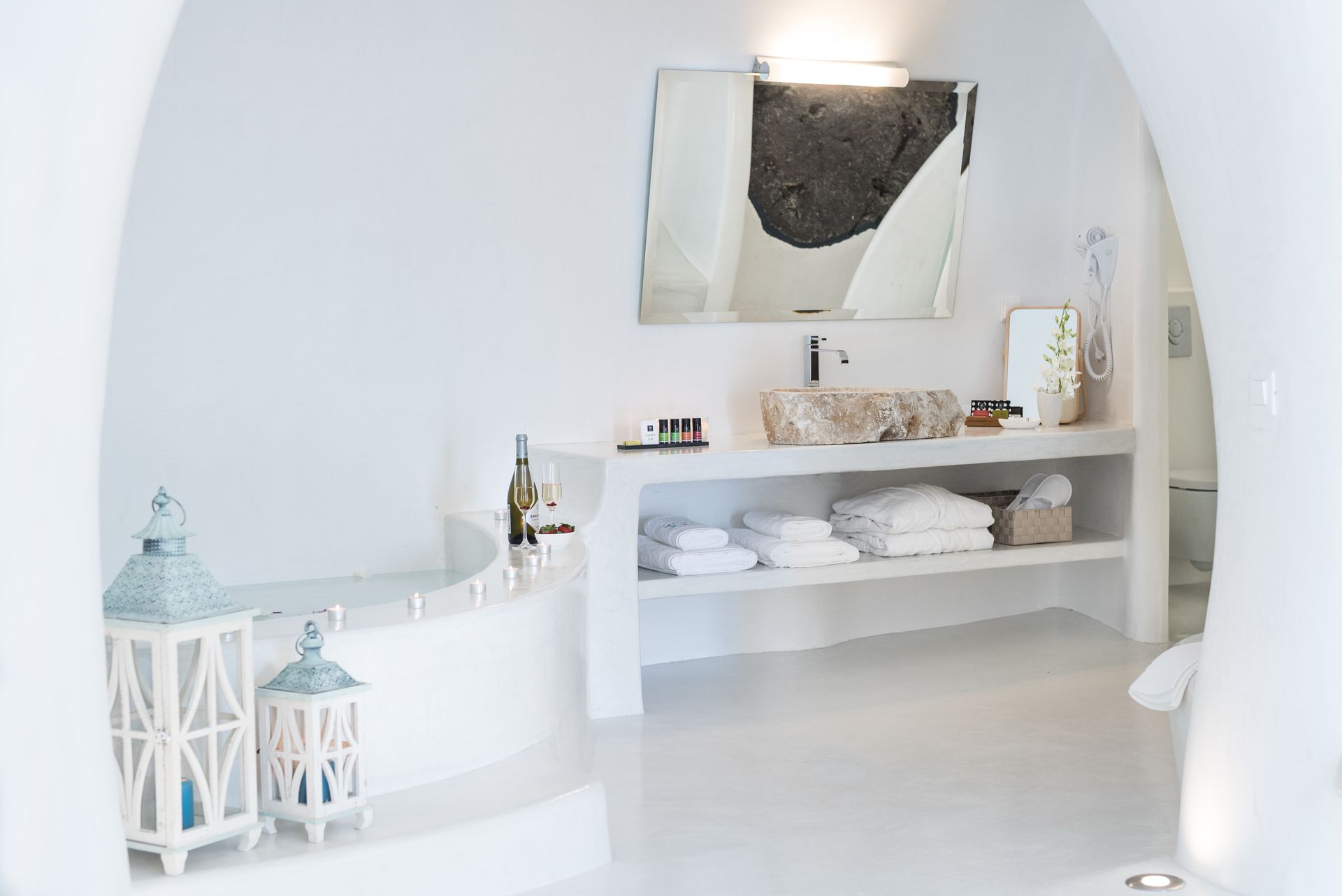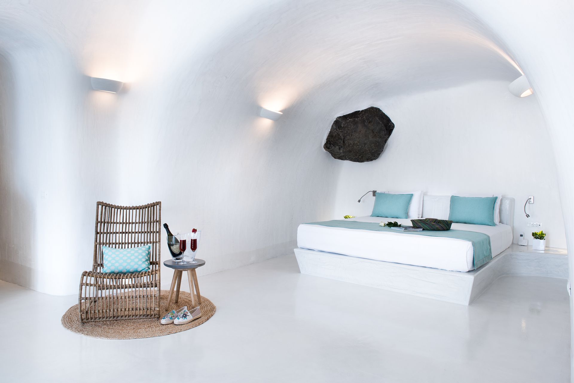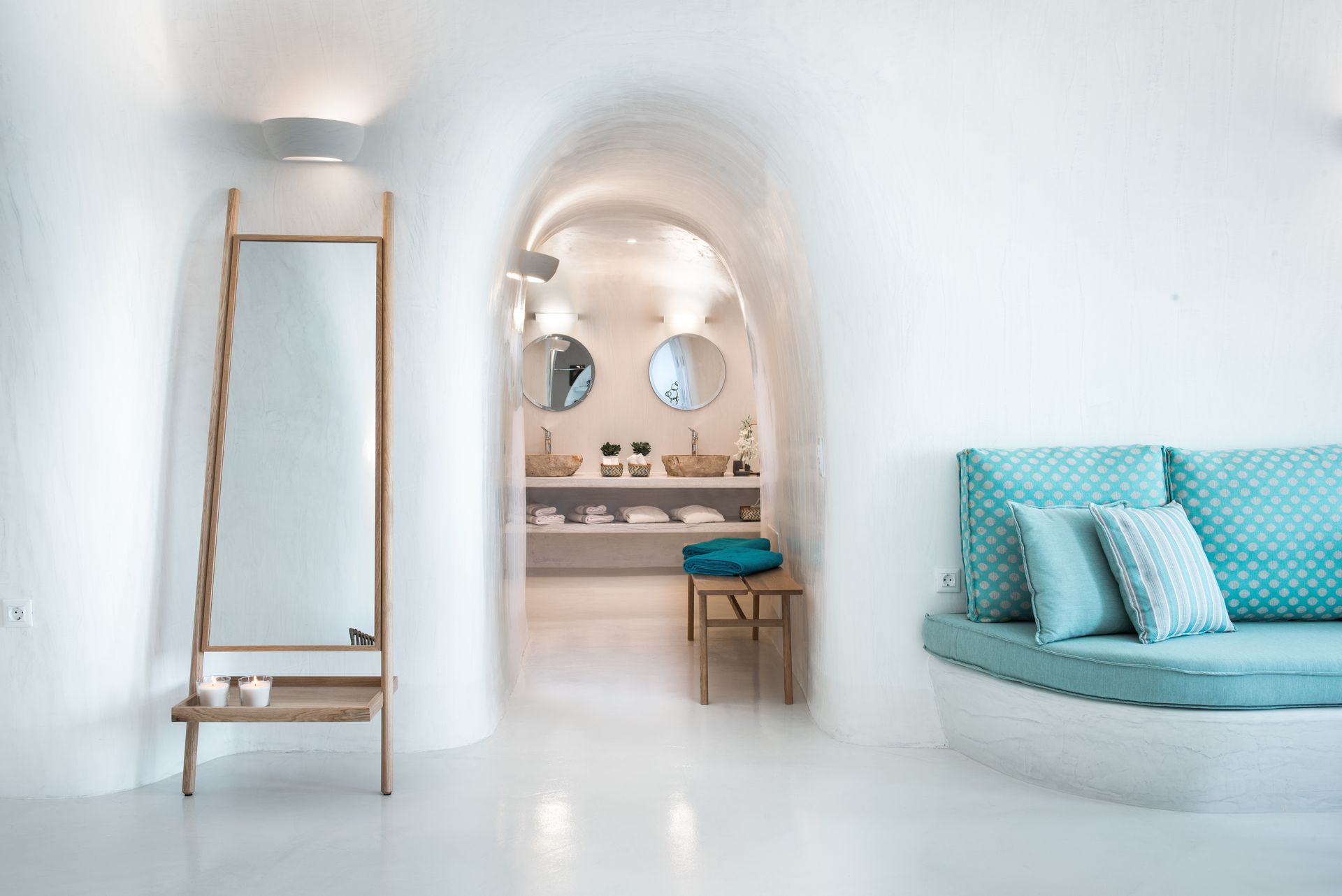 Our Deluxe Villa is a special escape of 50 square meters, with huge balconies and an outdoor area of extra 25 square meters. The outdoor heated plunge pool with jets, the comfy sun loungers and other furniture allow you to sunbathe and enjoy your cocktail, relishing the fabulous sunset views and the horizon. The pure sense of luxury in an inspiring ambience is what this villa is all about, with a plethora of special amenities .
