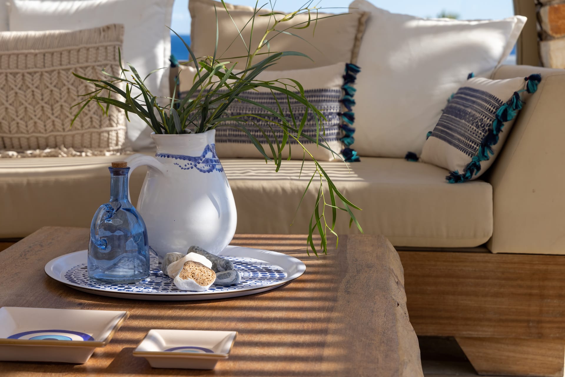 Villa Deja is a 4 bedroom stylish property with sea views and private pool just 100 meters from the beach. Named after the many tamarisk trees (Almyrikia) grown in the area Villa Deja exudes the Greek island feel with touches of traditional charm and modern luxury. Authentic decorations, natural stone and quality white furnishings adorn the white washed interiors creating an atmosphere of pure bliss and relaxation. Idyllically set in the quaint fishing village of Ambellas, 150 meters from the beach overlooking the cerulean waters of the sea this charming villa offers a tranquil retreat. Villa Deja accommodates up to 8 guests in total comfort with a private swimming pool. Each detail in the Villa has been carefully implemented to provide a truly remarkable living experience for our guests.