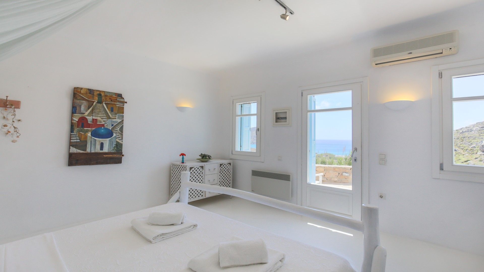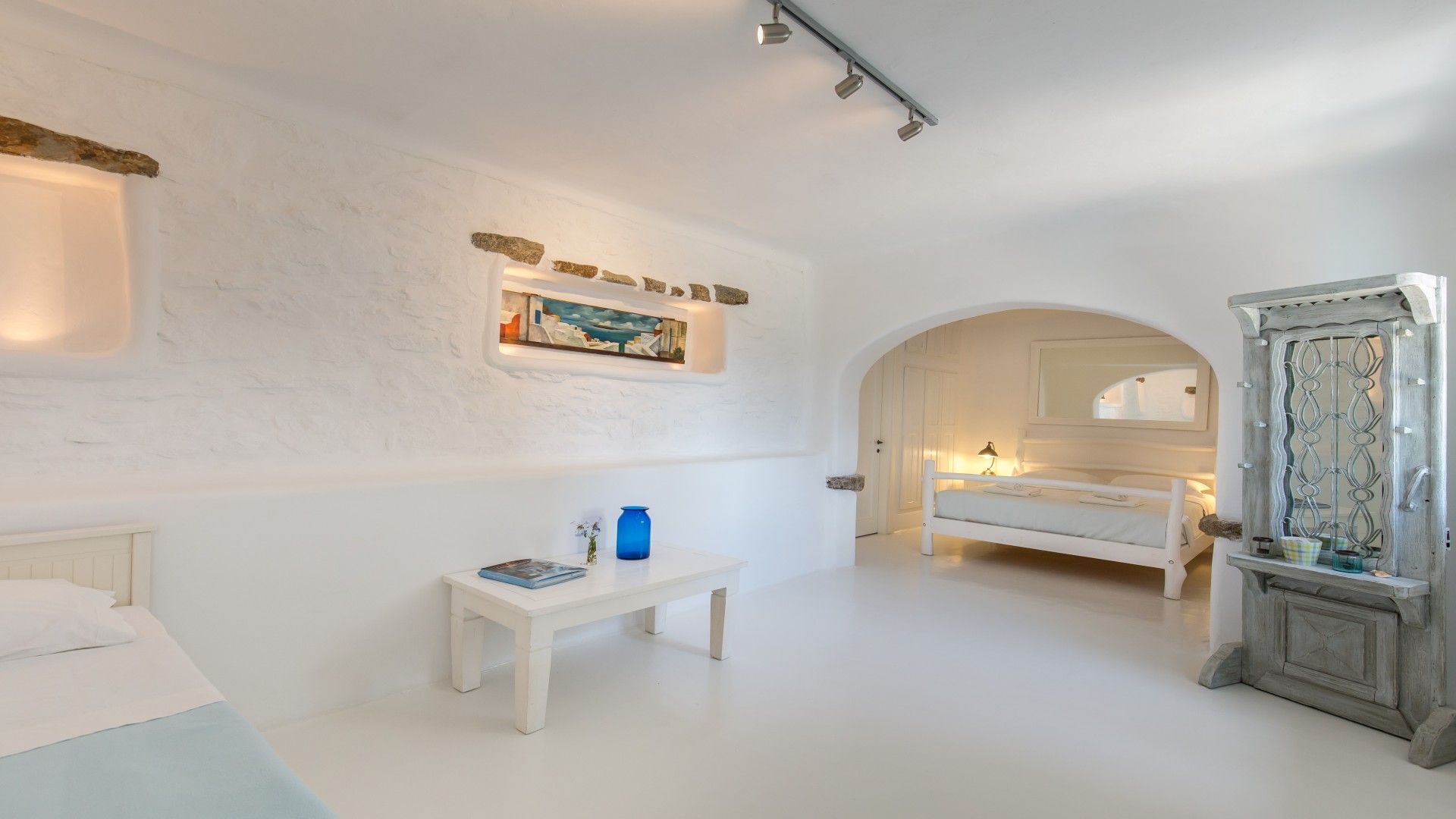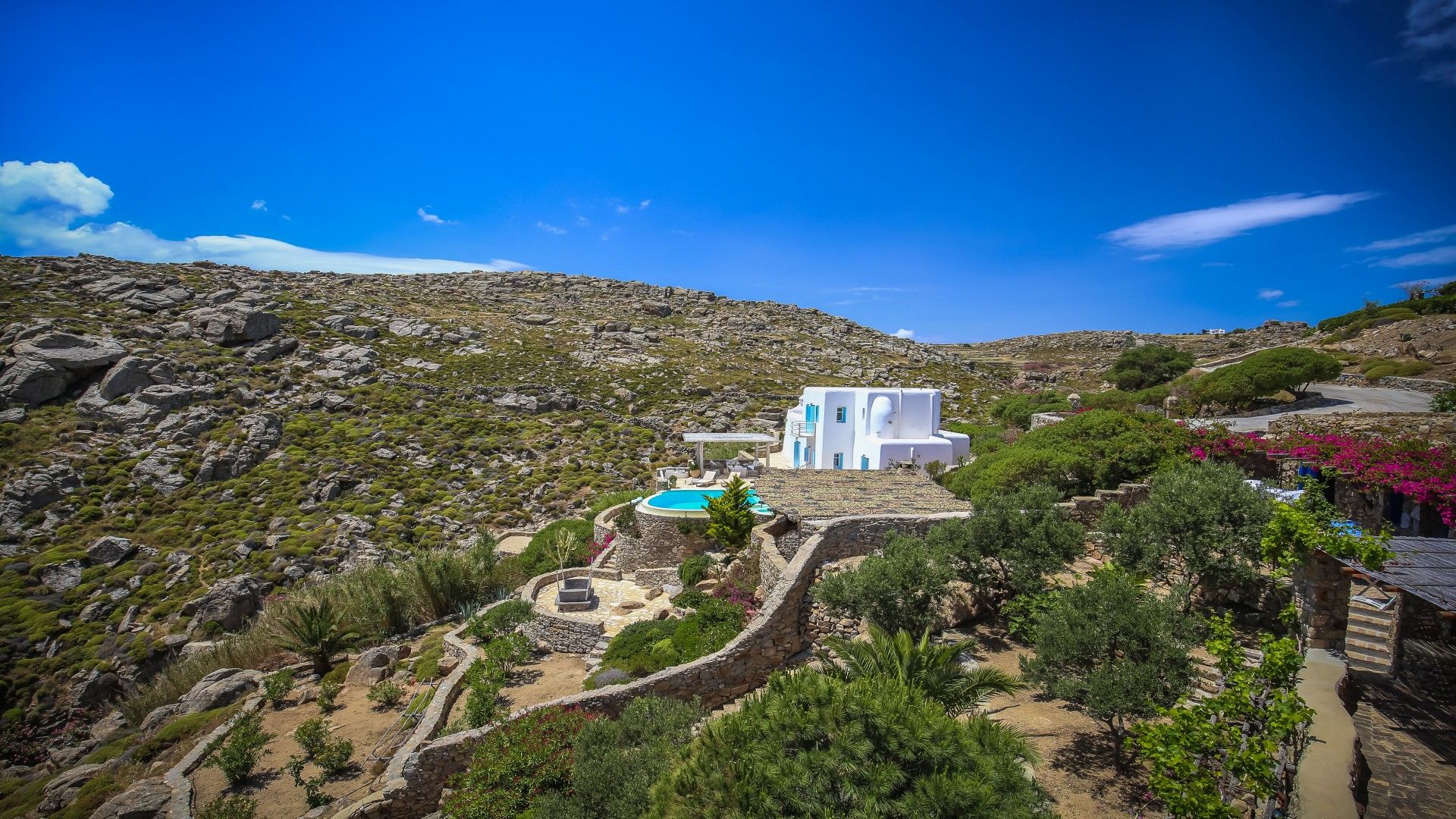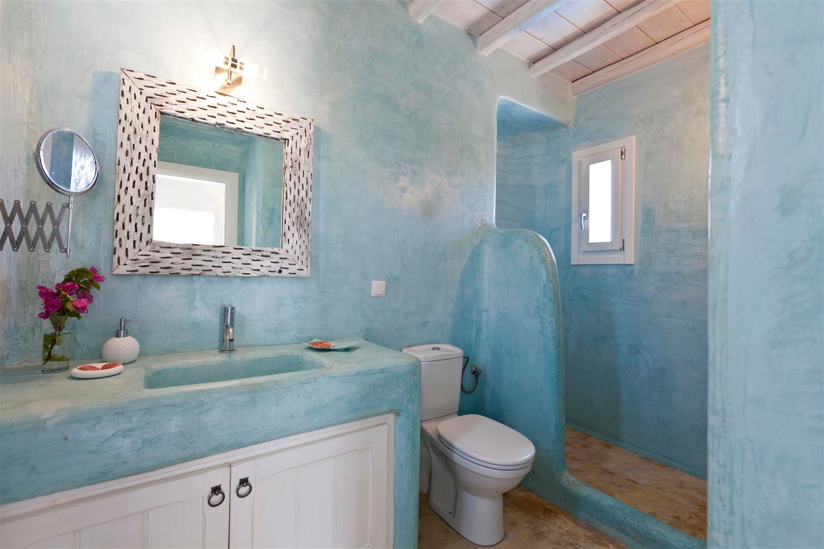 Agrari Beach, with its intimate charm and crystal clear water, is just a quick 10 min walk downhill. The villa's charming interior, schemed in light blue, white and ochre, could be described as “beach house style” combining traditional elements of Cycladic architecture with provincial selected details.