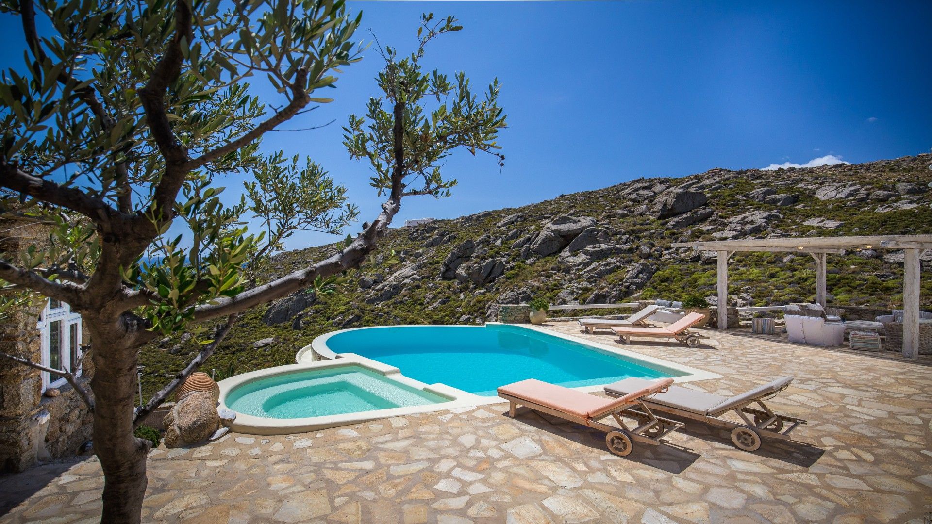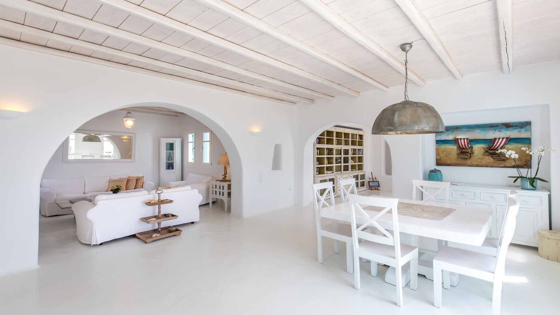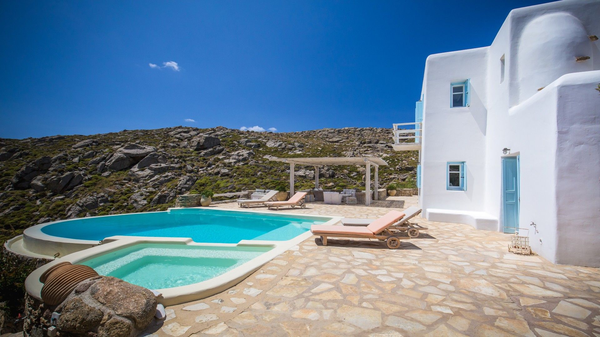 Agrari Beach, with its intimate charm and crystal clear water, is just a quick 10 min walk downhill. The villa's charming interior, schemed in light blue, white and ochre, could be described as “beach house style” combining traditional elements of Cycladic architecture with provincial selected details.
