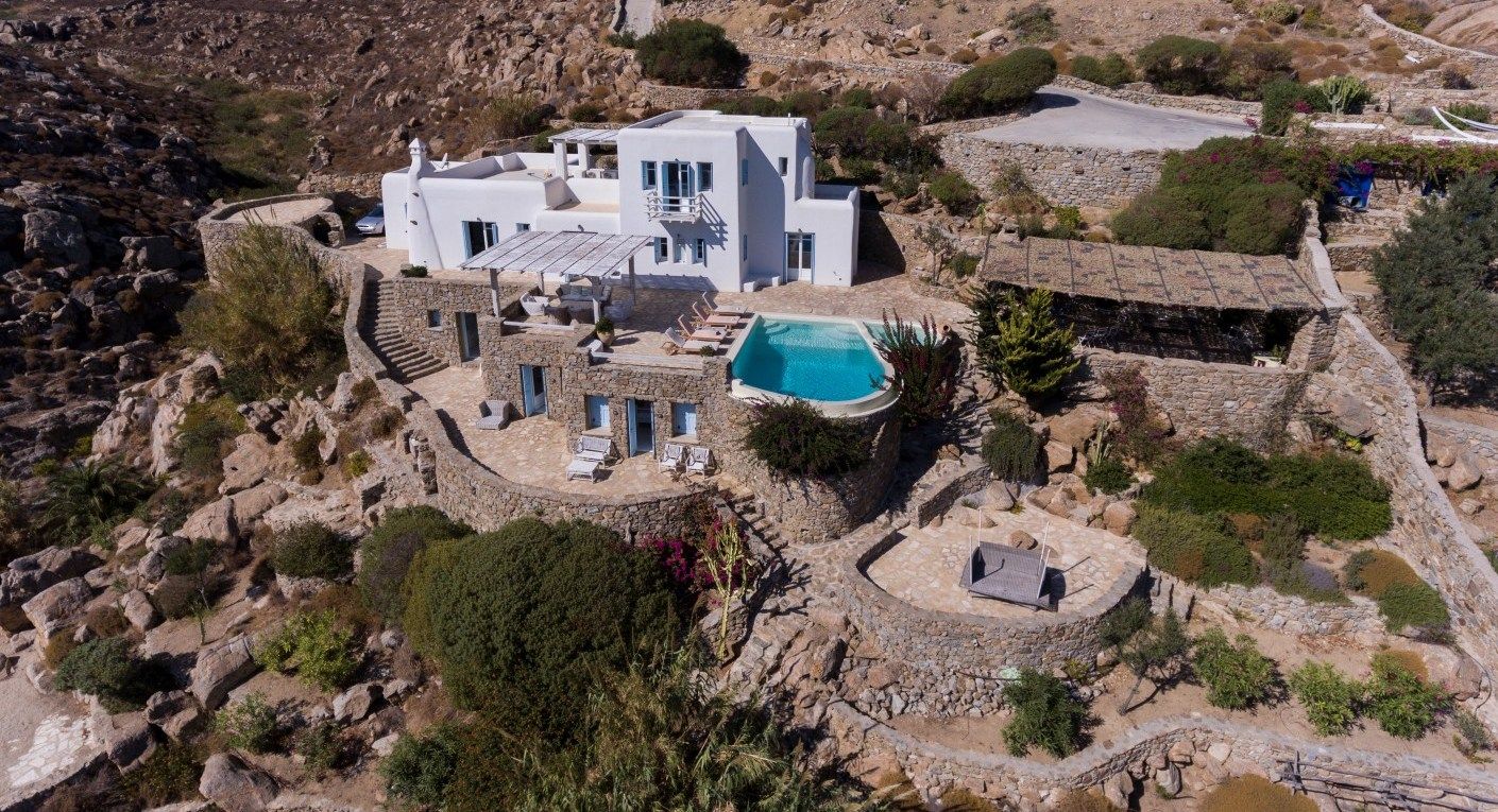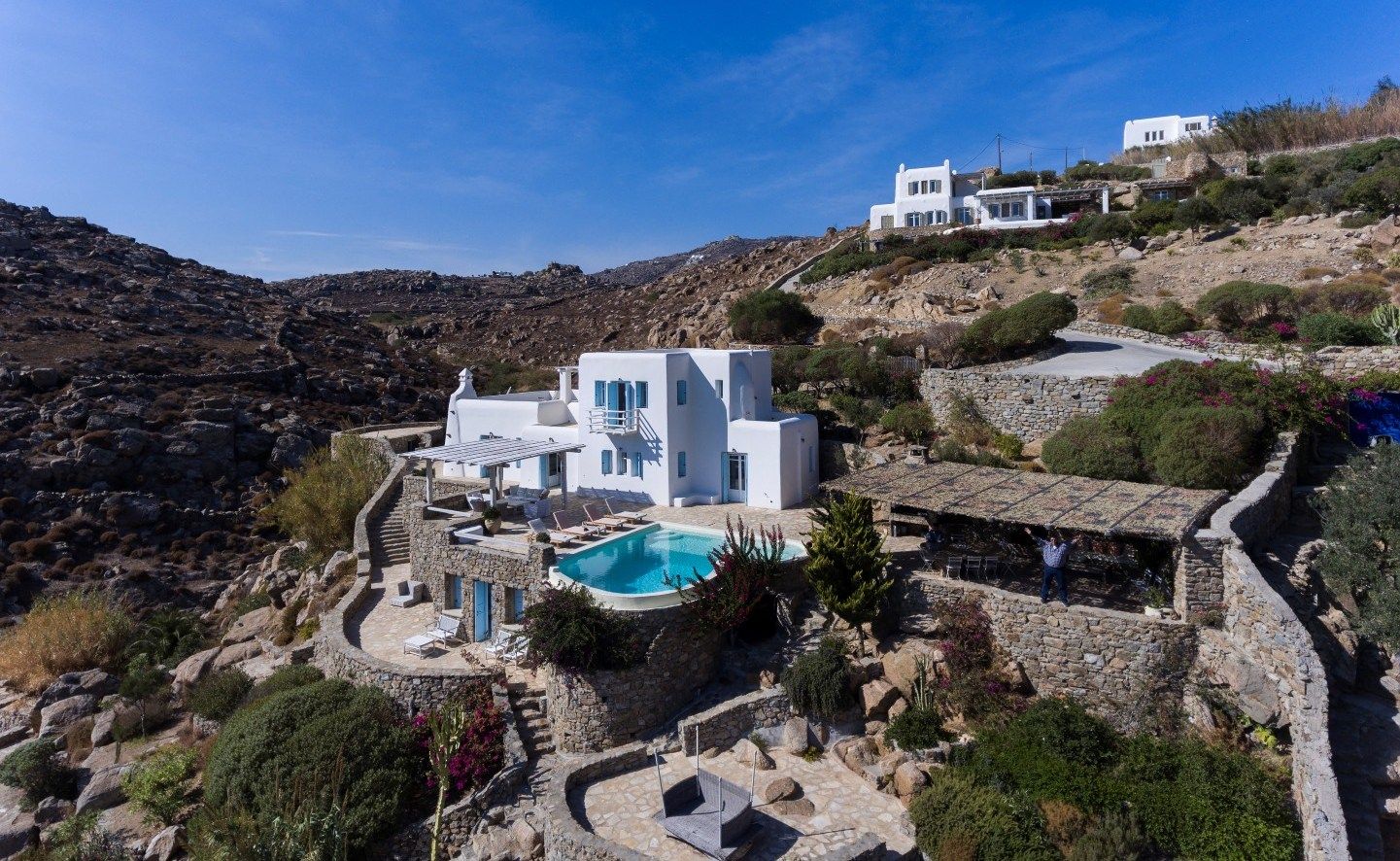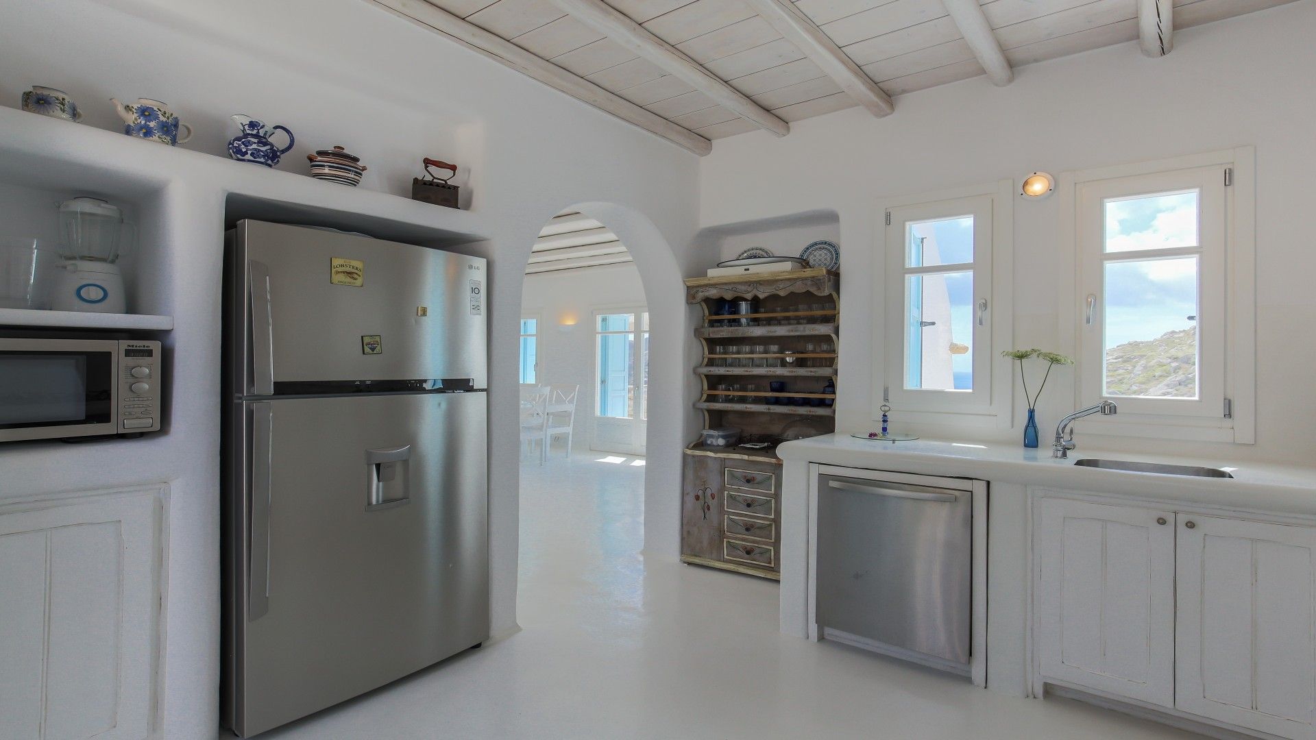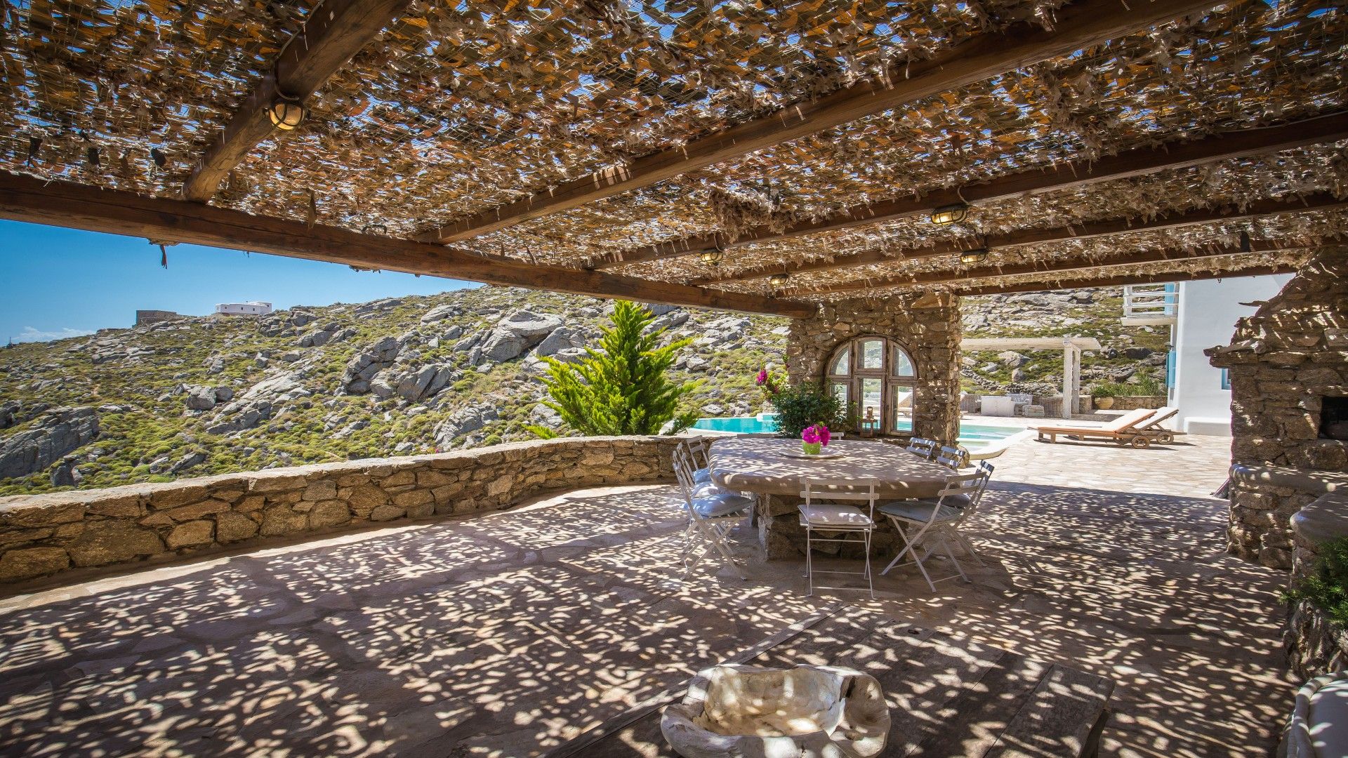 Agrari Beach, with its intimate charm and crystal clear water, is just a quick 10 min walk downhill. The villa's charming interior, schemed in light blue, white and ochre, could be described as “beach house style” combining traditional elements of Cycladic architecture with provincial selected details.