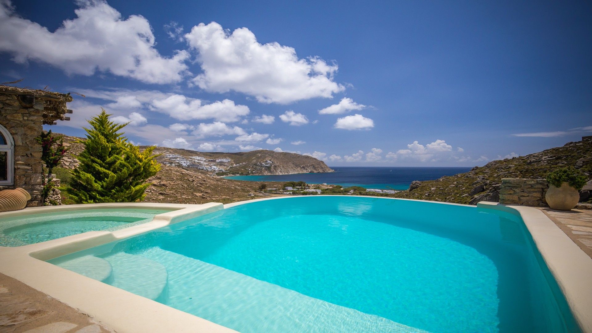 Ιnfinity Villa is an elegant and spacious villa, facing South in a privileged wind-sheltered location above the marvelous golden sand Agrari Beach with magnificent views of the Aegean Sea. Although located just 10 minutes by car from down town Mykonos, the property is offering tranquility, privacy and stunning scenery.