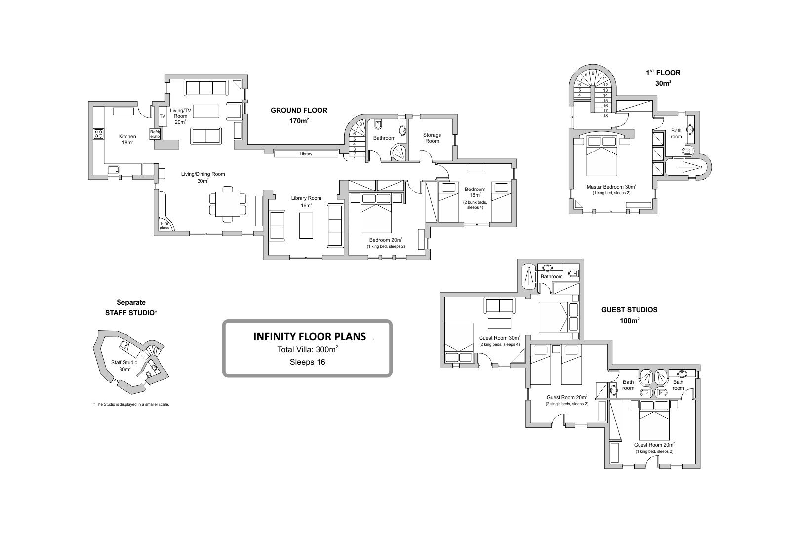 • Master bedroom: Double bed, A/C, en-suite bathroom (sleeps 2).